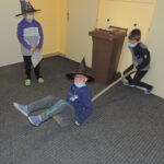 U nás ve škole si vychovatelky školní družiny v pátek 30. dubna připravily pro děti z první a druhé třídy tzv. Čarodějnou stezku, při které děti i vychovatelky v převlecích čarodějnic a čarodějů plnily různé úkoly. Děti rozdělené do skupinek procházely stezkou v doprovodu čarodějnice a pečlivě pročítaly zadání jednotlivých úkolů. Poctivě a s plným nasazením plnily všech 14 úkolů, které byly rozmístěné na různých místech budovy prvního stupně.