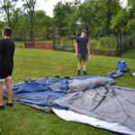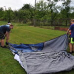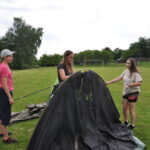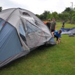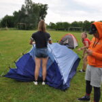V pondělí 21. 6. jsme se odvážně rozhodli v počasí „vypadá to, že bude pršet“ stanovat v Lhotě u Kelče. Sešli jsme se k večeru na určeném místě, někteří i jinde (Lhot je prostě v okolí spousta J ). Pro některé bylo celkem obtížné postavit stan, většina to ovšem zvládla bez větších problémů. Když naše zápasení se stany skončilo, tak nás čekalo milé překvapení v podobě návštěvy paní učitelky Poláchové a Vadelové. Poté následovala hra, jak moc poslepu známe abecedu a naše jména a po ní šifrovačka, jejímž výsledkem byla smutná věta: „ Naše poslední třídní akce“.