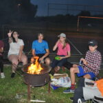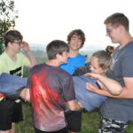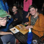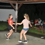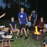 No a pak se zapálil oheň a začaly se opékat buřty a grilovat maso. Aby to byla větší sranda, počasí se rozhodlo nás potěšit deštěm. My se ovšem nezalekli a i přes nepříznivé podmínky jsme se dobře najedli. Zpívali jsme, poslouchali hudbu, tancovali, sportovali nebo jen tak klábosili. Prostě jsme si ten večer parádně užívali. O půlnoci jsme absolvovali velmi strašidelnou stezku odvahy, na které se bály i naše učitelky. Aby taky ne, když některá strašidla padala přímo ze stromu.