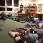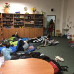 Po večerní hygieně se chlapci a děvčata zavrtali do spacáků, ale ještě nějakou dobu trvalo, než všichni usnuli. Večerní bouřka nám nedala jen tak spát. Ale všichni jsme to krásně zvládli a usnuli. Ráno jsme společně posnídali perník, který nám upekly paní kuchařky, uklidili jsme družinu i třídu a po zazvonění na hodinu se rozešli do tříd. Každý si odnášel pěkné zážitky ze společně stráveného času ze spaní ve školní družině.