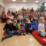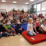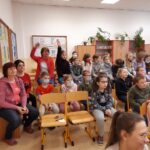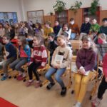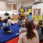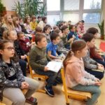 Středeční dopoledne (9.3.) bylo ve znamení besedy s ilustrátorem Adolfem Dudkem. Žáci 1. – 5. ročníků si vyslechli vtipné, zábavné a poutavé vyprávění o tom, jak vznikají obrázky do knih, naučili se, že pomocí geometrických tvarů zvládnou nakreslit téměř všechno. Pan Dudek povídání prokládal častými ukázkami kresby. Děti i paní učitelky se během besedy hodně  nasmály.