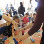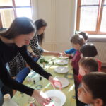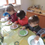 U druhého stanoviště si děti na talířek nalily mléko a do něj nakapaly cukrářské barvivo. Pomocí špejle pak vytvářely barevné obrázky.