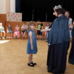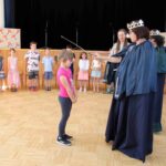 Zavítali k nám král Knihoslav a královna Knihoslava. V jejich království se totiž všechny děti, které umí číst, pasují na čtenáře. Žáci 1. třídy se tedy pečlivě připravovali, aby se i oni jimi mohli stát. Nejdříve ukázali, jak umí číst a poté museli složit nelehký slib. Být čtenářem totiž není jen tak. Takové oslovení může nosit jen ten, kdo se s úctou a láskou chová ke knihám, kdo dodržuje pravidla čtenářského řádu, ale i ten, kdo nikdy nepřestane číst a kdo se bude s chutí učit stále něčemu novému. Nemohlo to dopadnut lépe. Všichni žáci dokázali těžké podmínky splnit, a tak byli pasováni. Král s královnou jim pogratulovali a od paní učitelky dostali knihu Kouzelná třída.