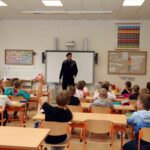 Por., Bc.Vladislav Malcharczyk žákům druhé třídy vysvětlil, jak poznají příslušníka Policie ČR, jaký je rozdíl mezi pořádkovým, dopravním policistou a kriminalistou, a ukázal jim jejich výstroj. Dále se soustředil na pravidla bezpečného chování, např. chování v silničním provozu a setkání s cizí osobou. Žáci si společně s ním připomněli linky tísňového volání a jak na ně správně zavolat.
