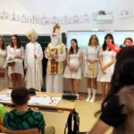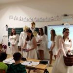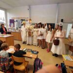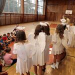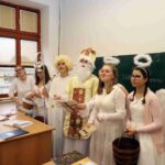 Dne 6.12. 2022 na celé škole znělo řinčení řetězů a dunění čertovských kopyt. Některé zlobivé dětí si chtěli čerti odnést s sebou do pekla, ale naštěstí zde byl Mikuláš a andělé. Zlobivcům pomohli a všechny děti obdarovali sladkostmi. Této mikulášské akce se ujali žáci obou 9. tříd.