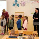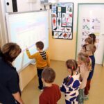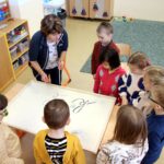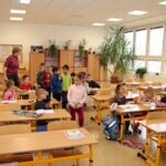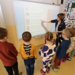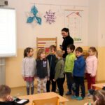 V pátek 3. března 2023 navštívili první třídy předškoláci. Prohlédli si obě učebny, posadili se společně s prvňáky do lavic. Prvňáčci jim předvedli, co všechno se od nástupu do školy naučili. Předškoláci si prohlédli jejich písanky a vyzkoušeli si psaní prstem v mouce. Společně pak pracovali na interaktivní tabuli, kde měli připravená cvičení ze čtení a matematiky.
