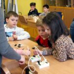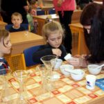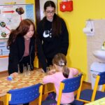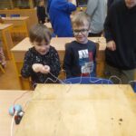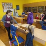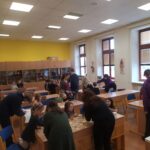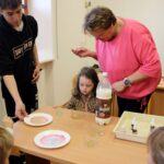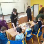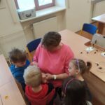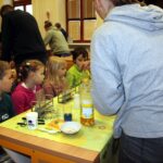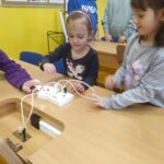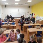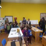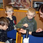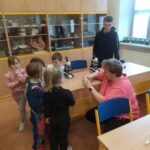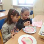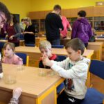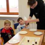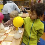 Ve čtvrtek 13. 4. a v pátek 14.4. 2023 proběhl v naší škole projektový den. Pozvali jsme děti z MŠ Kelč (ve čtvrtek to byli Ježečci a v pátek Berušky). Spolu s žáky 9. třídy, těmi, kteří nedělali přijímací zkoušky, jsme připravili různé pokusy, které si mohly děti vyzkoušet a přitom pro ně nebyly vůbec nebezpečné. Děti nafukovaly balónek pomocí oxidu uhličitého, který vznikl reakcí octu a sody v baňce, mohly si kreslit potravinářským barvivem do mléka a poté zjistit, jak se obrázek zachová, když do něj kápneme trochu vody s jarem. Dále si mohly sestavit elektrický obvod tak, aby po sepnutí spínače svítila 1, nebo 2 žárovky, vyzkoušet svou šikovnost tím, že projdou cestu drátkem, aniž by jim zazvonil zvoneček. Vyzkoušely si rozložit barvy fixů pomocí chromatografie a podívaly se přes mikroskop.