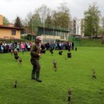 Žáci mohli zblízka vidět, jak největší naše sova – výr velký – chytá maketu veverky, jak raroh velký dokáže ulovit velkého zajíce, sokol stěhovavý chytne za letu maketu bažanta aj. Nad hlavami žáků přelétávali puštíci bělaví, káně Harrisovo dosedlo na ruku odvážného žáka a nad hřištěm se proletěl i orel bělohlavý.