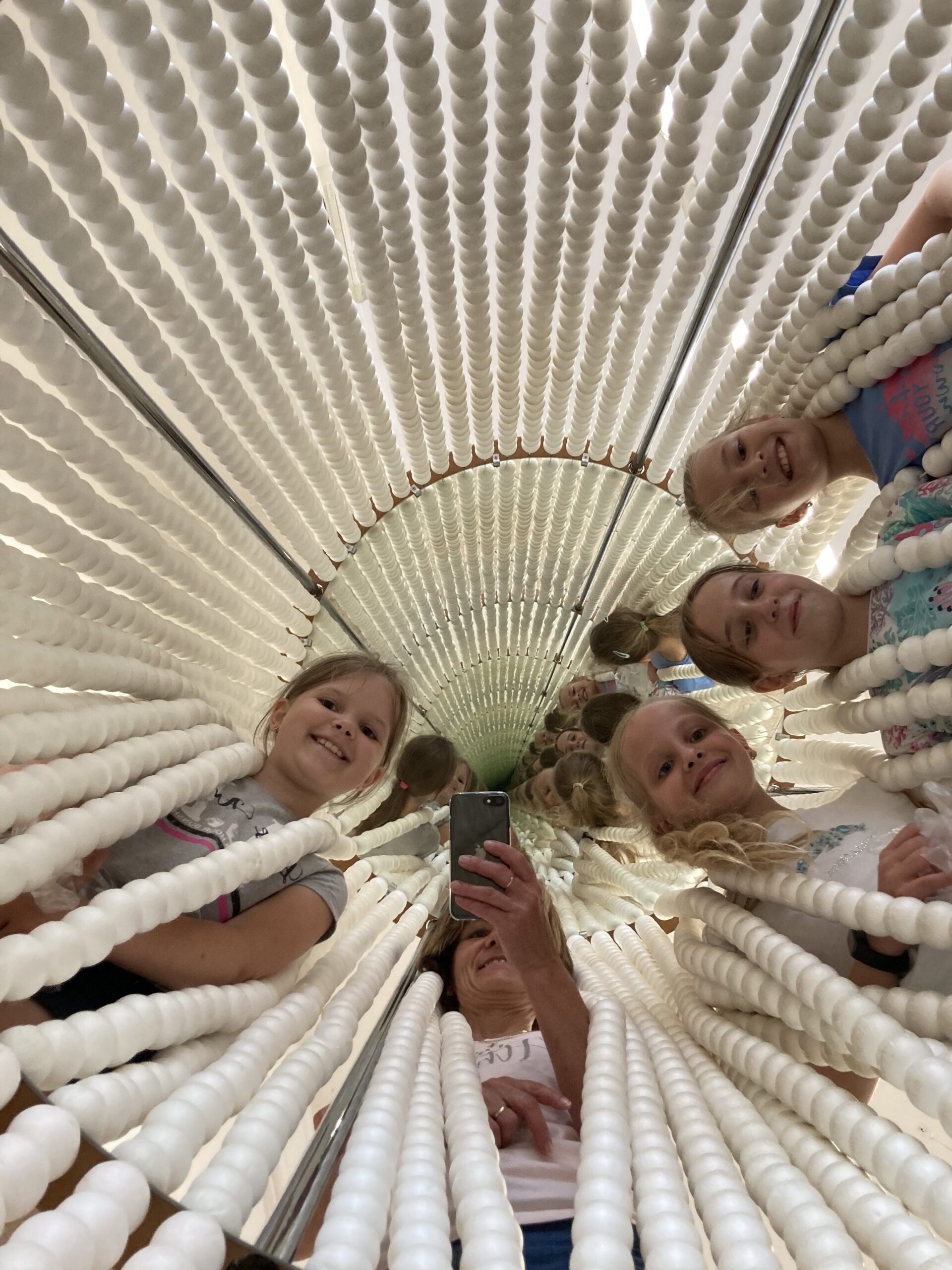 na zámeckou věž, odkud byl krásný výhled na celou Kroměříž. Potom nás čekala nejzábavnější část výletu – zrcadlové bludiště. Poté jsme absolvovali mši svatou v kapli arcibiskupského gymnázia a dali jsme si výborný oběd v restauraci. Po obědě jsme navštívili kostel sv. Mořice a zámeckou zahradu, kde byla i mini ZOO, zmrzlina a odpočinek.
