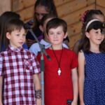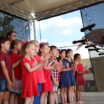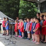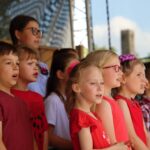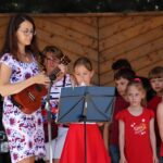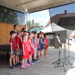 v neděli 25.6.2023, děti zazpívaly 7 písní převážně české tvorby. Kromě tradičních oblíbených písniček od pánů Svěráka a Uhlíře zazněly také písně Berany duc (J. Vodňanský), Konvalinka (Hradišťan) nebo také Ovocný salát. Zazpívali jsme také jednu španělskou píseň a své vystoupení doprovodili na různé perkusivní nástroje. Svou hrou na flétnu nás doprovodila také Anička Kundrátková.
