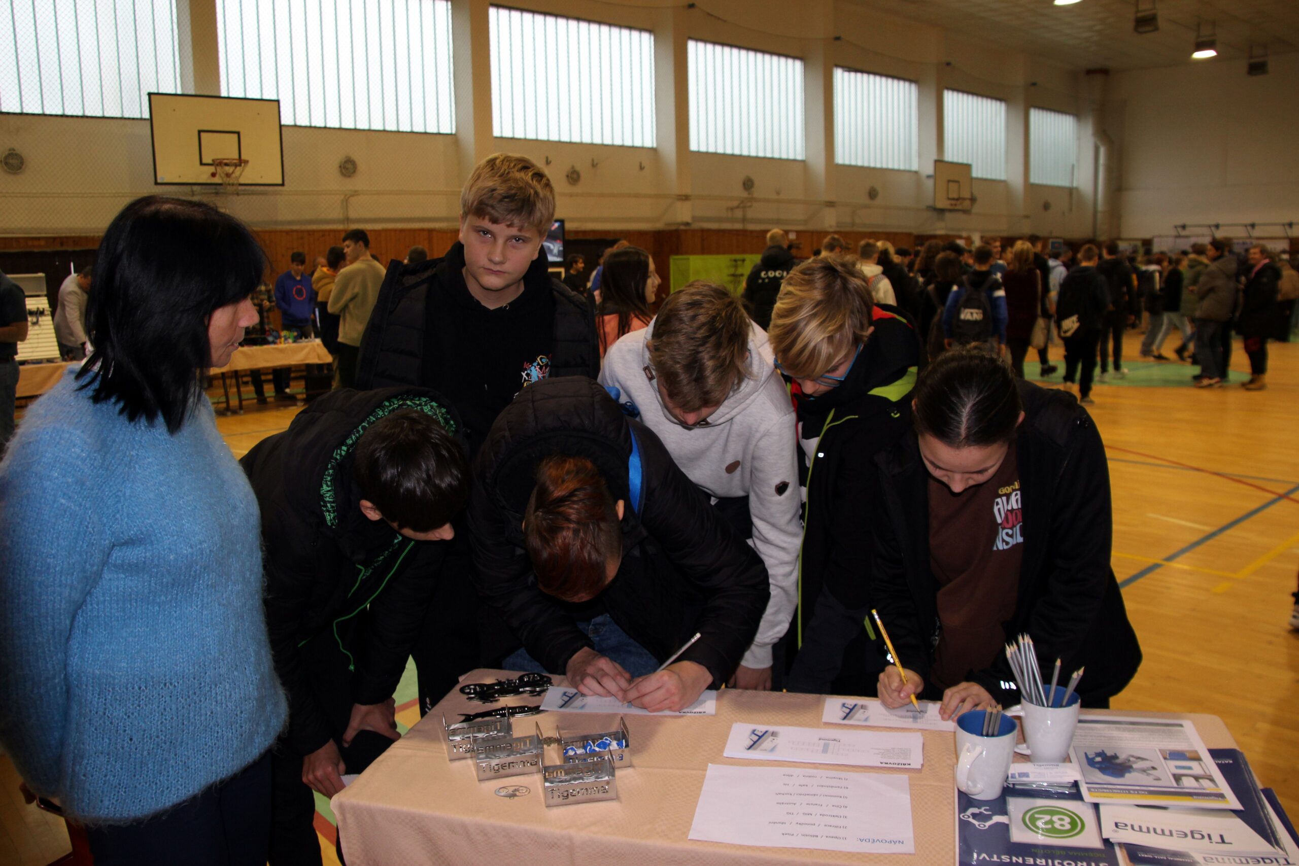 Ve sportovní hale se žáci naší 8. třídy seznámili se všemi technickými obory školy, navštívili jednotlivé stánky, ve kterých si mohli vyzkoušet nějaký řemeslný úkol nebo technickou zručnost.