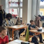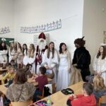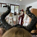 V úterý 5. prosince 2023 se ve škole objevil Mikuláš a jeho družina (deváťáci v perfektních a nápaditých převlecích), aby se ujistili o tom, že ve škole máme hodné děti.