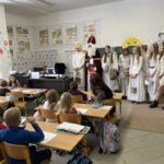 Ve všech třídách Mikuláš chválil i upozorňoval na to, co se dá zlepšit. Andílci připomněli některé adventní tradice, obdarovali děti drobnou sladkostí a ty jim na oplátku zazpívaly, zarecitovaly básničku a některé i zatančily.