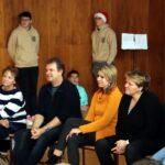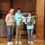 Na úvod zazněla známá vánoční písnička, a protože např. starší žáci měli k dispozici texty všech písniček, které měli účinkující připravené, mohli se se svým zpěvem přidat taky. A opravdu zpívali, takže celou přístavbou se nesl docela silný zpěv. Koledy dokonce doprovodili tři hráči na dechové nástroje. Šlo jim to moc hezky.