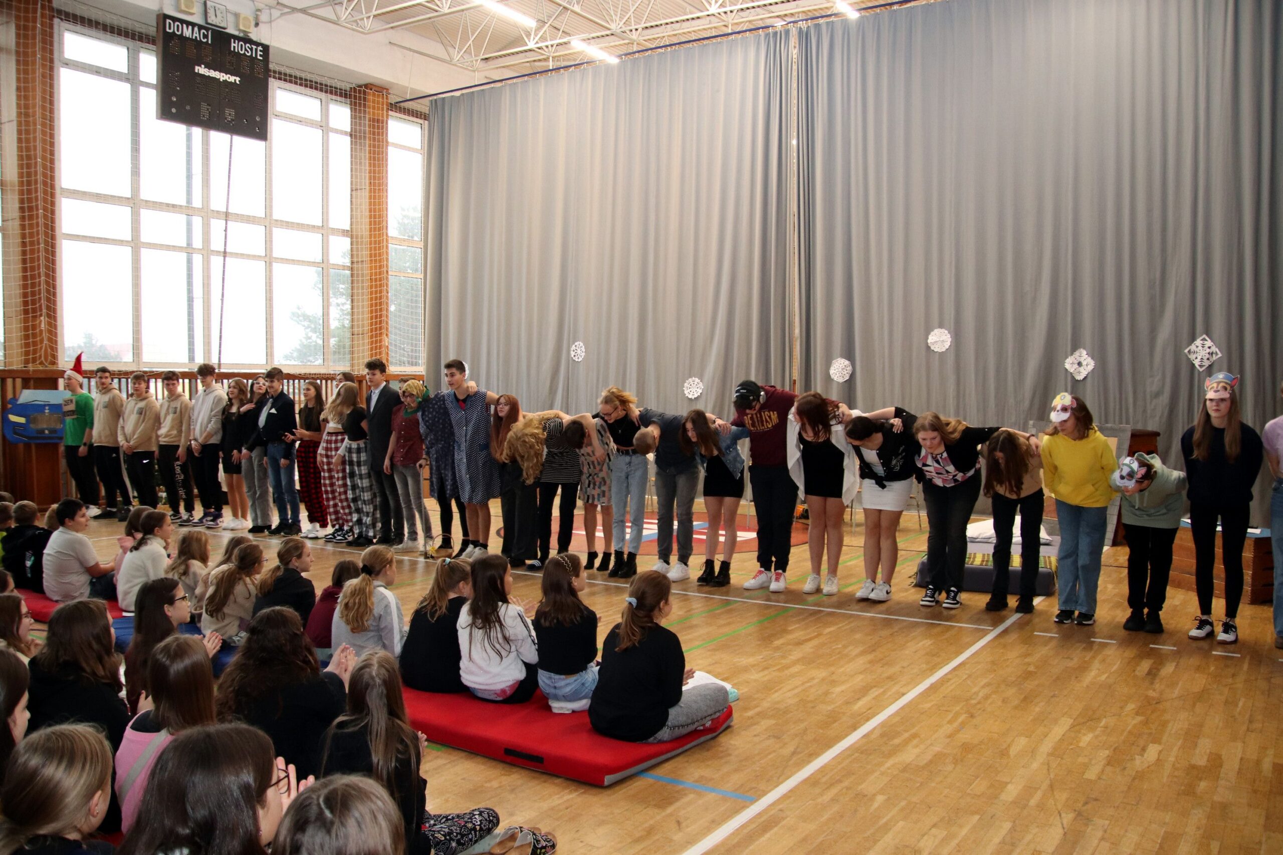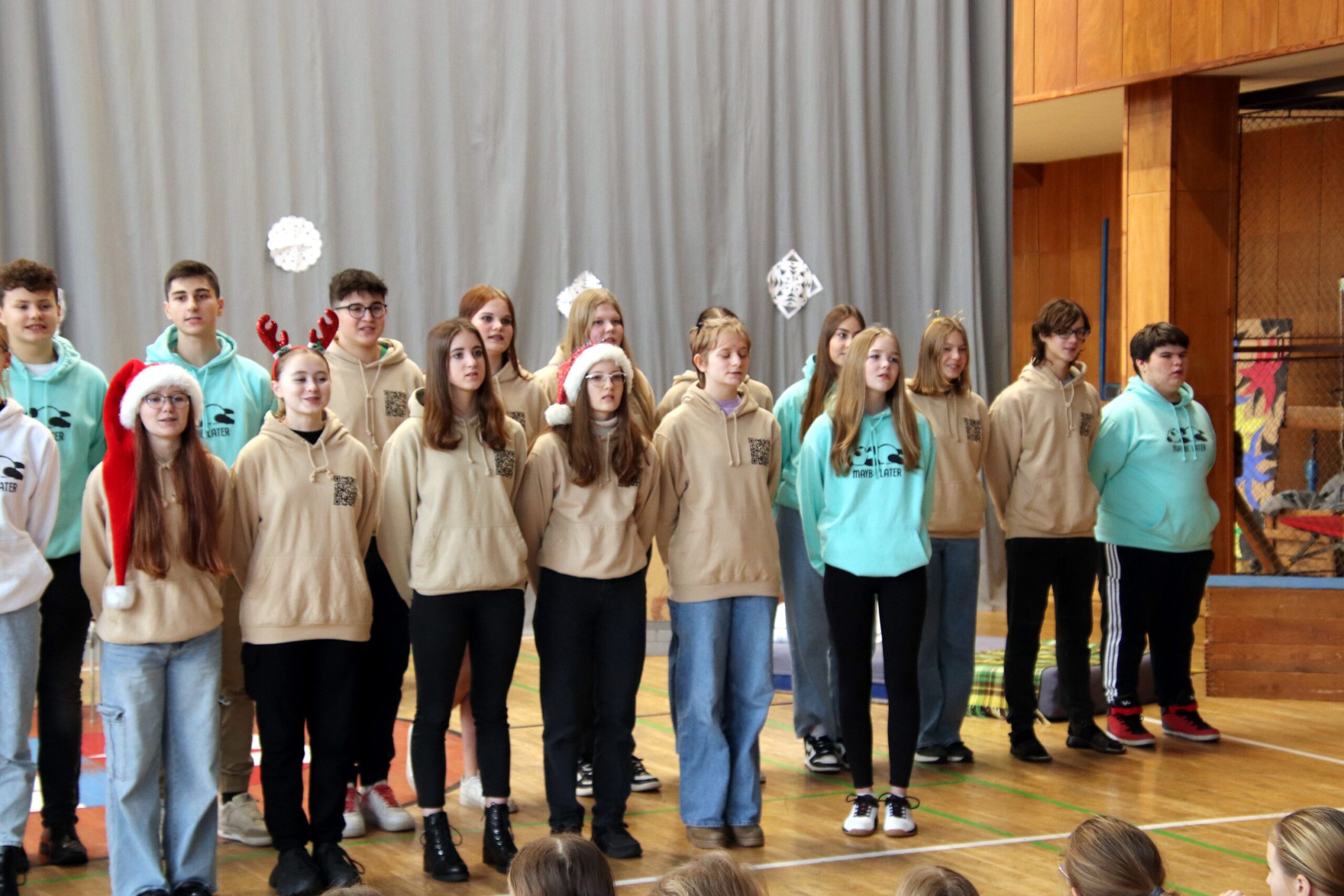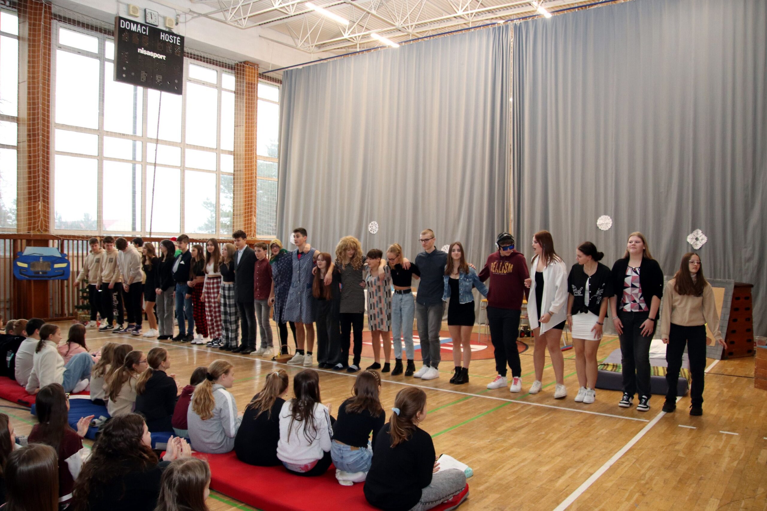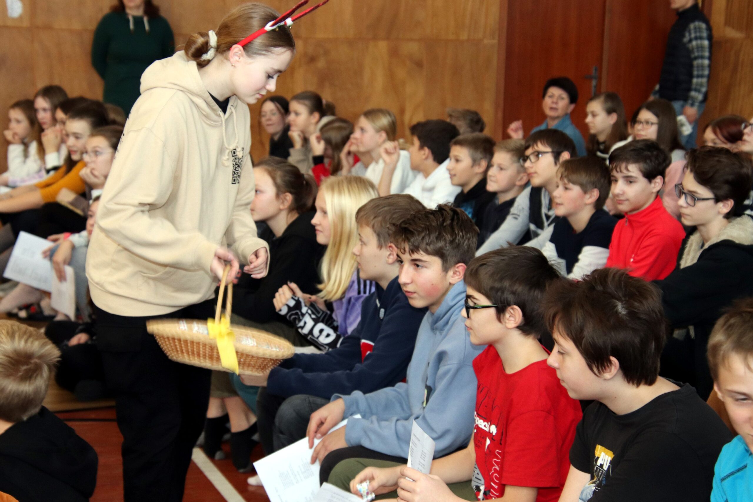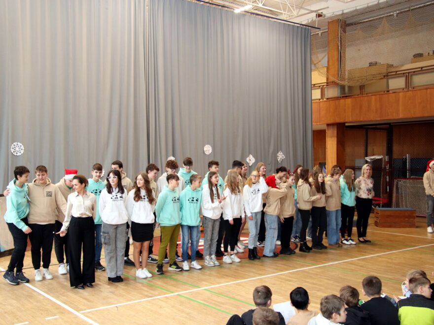 O hezké dopoledne se nám ve středu 20. prosince 2023 postarali žáci 9. tříd. Připravili Zvonkování, tradiční předvánoční program. Spolužákům a učitelům předvedli pestrý a zábavný program. Programem provázely dvě moderátorky, které nezapomněly na vánoční tradice a na zajímavosti o slavení Vánoc ve světě.