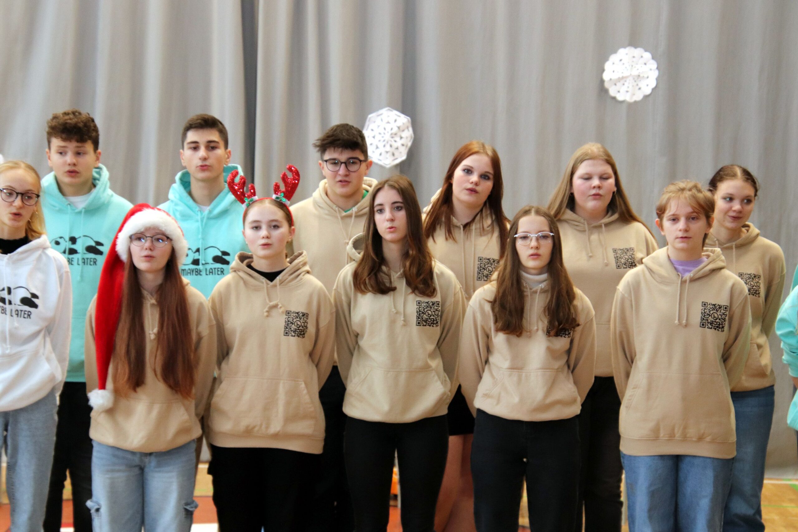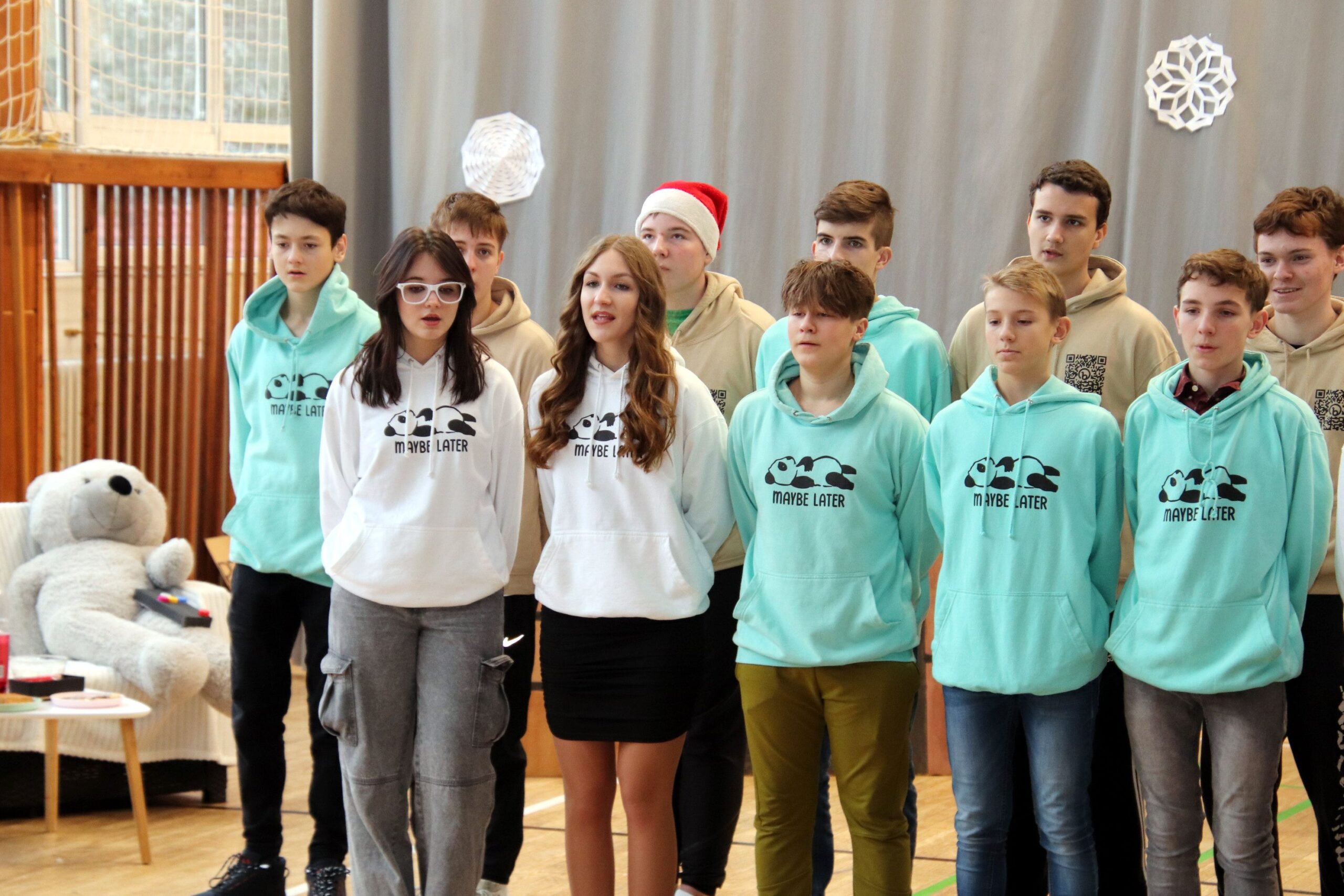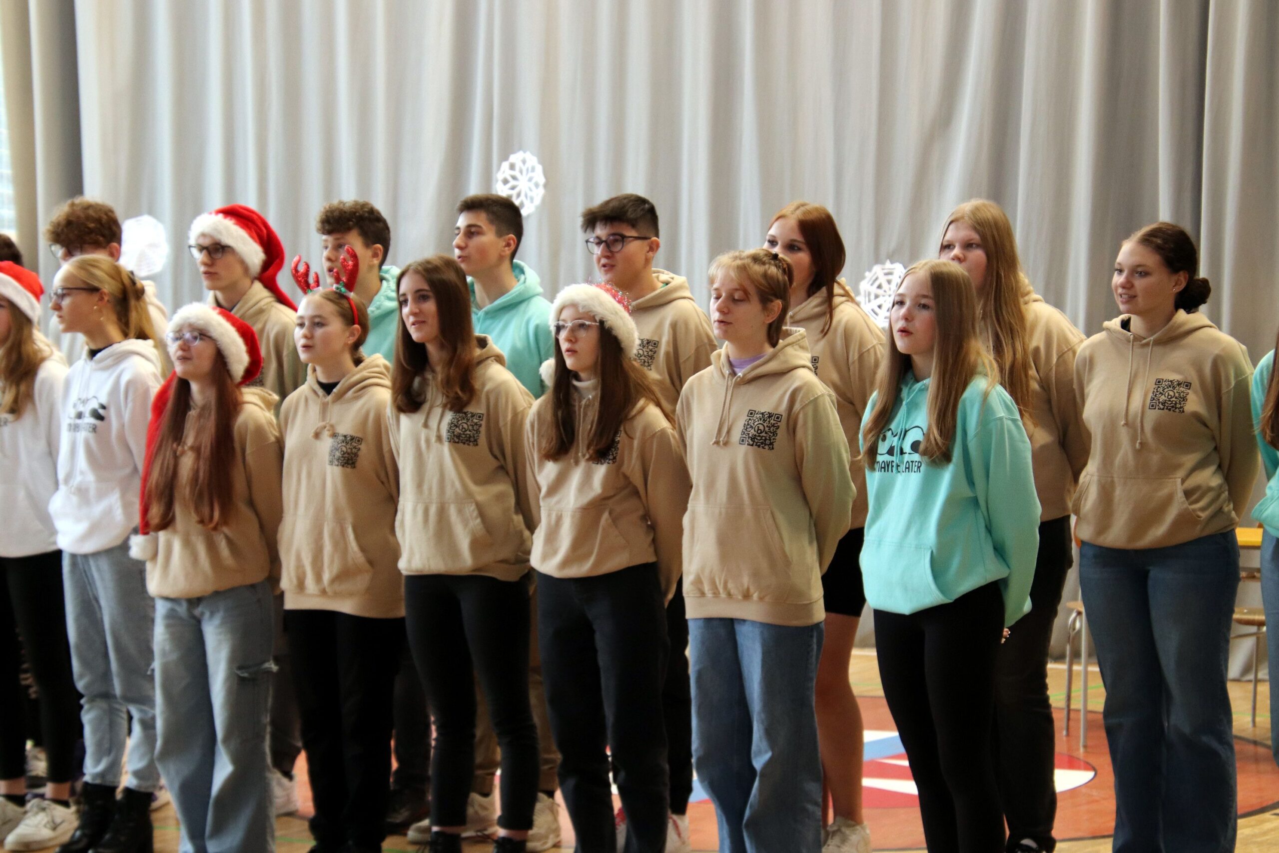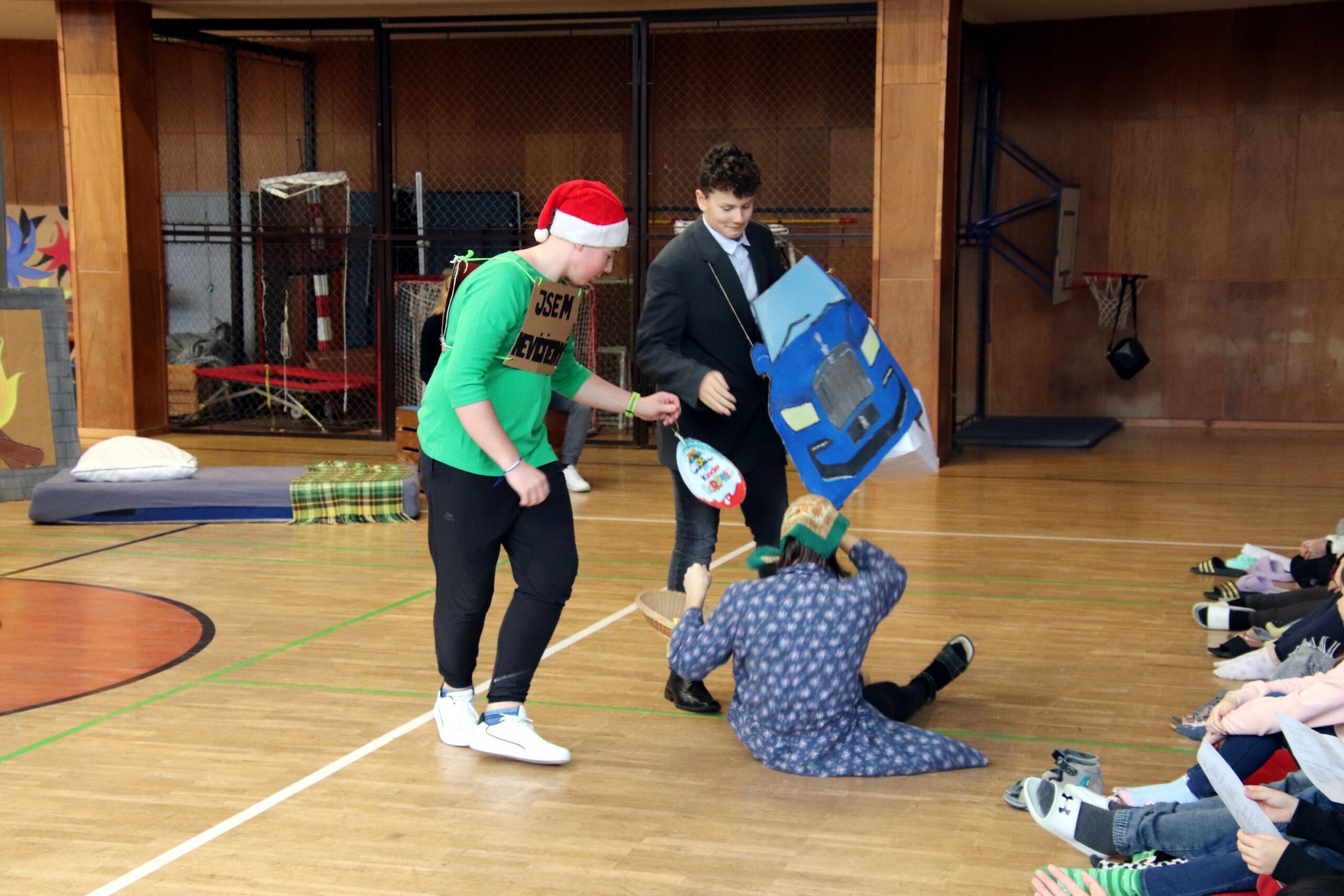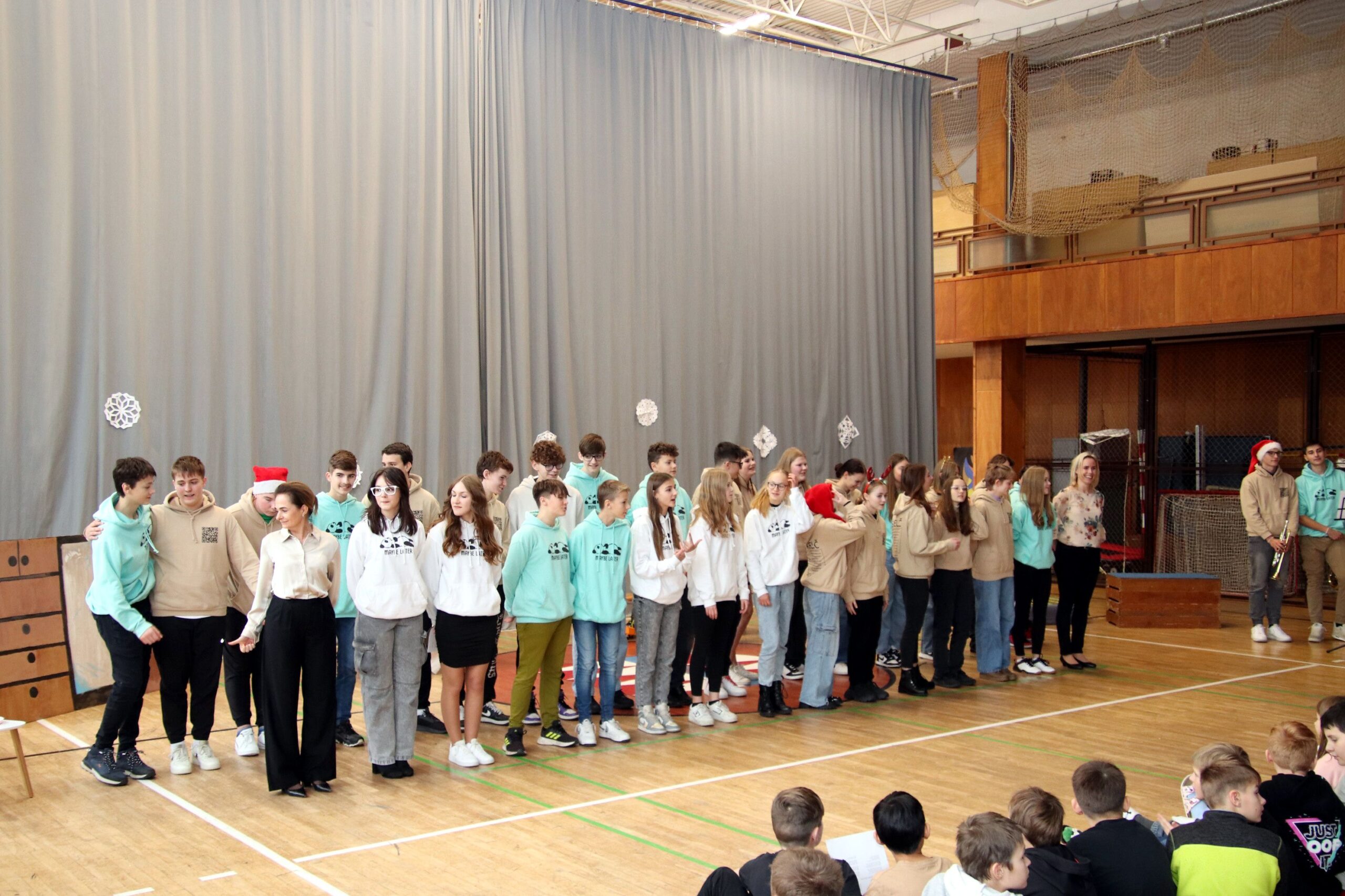 O hezké dopoledne se nám ve středu 20. prosince 2023 postarali žáci 9. tříd. Připravili Zvonkování, tradiční předvánoční program. Spolužákům a učitelům předvedli pestrý a zábavný program. Programem provázely dvě moderátorky, které nezapomněly na vánoční tradice a na zajímavosti o slavení Vánoc ve světě.
