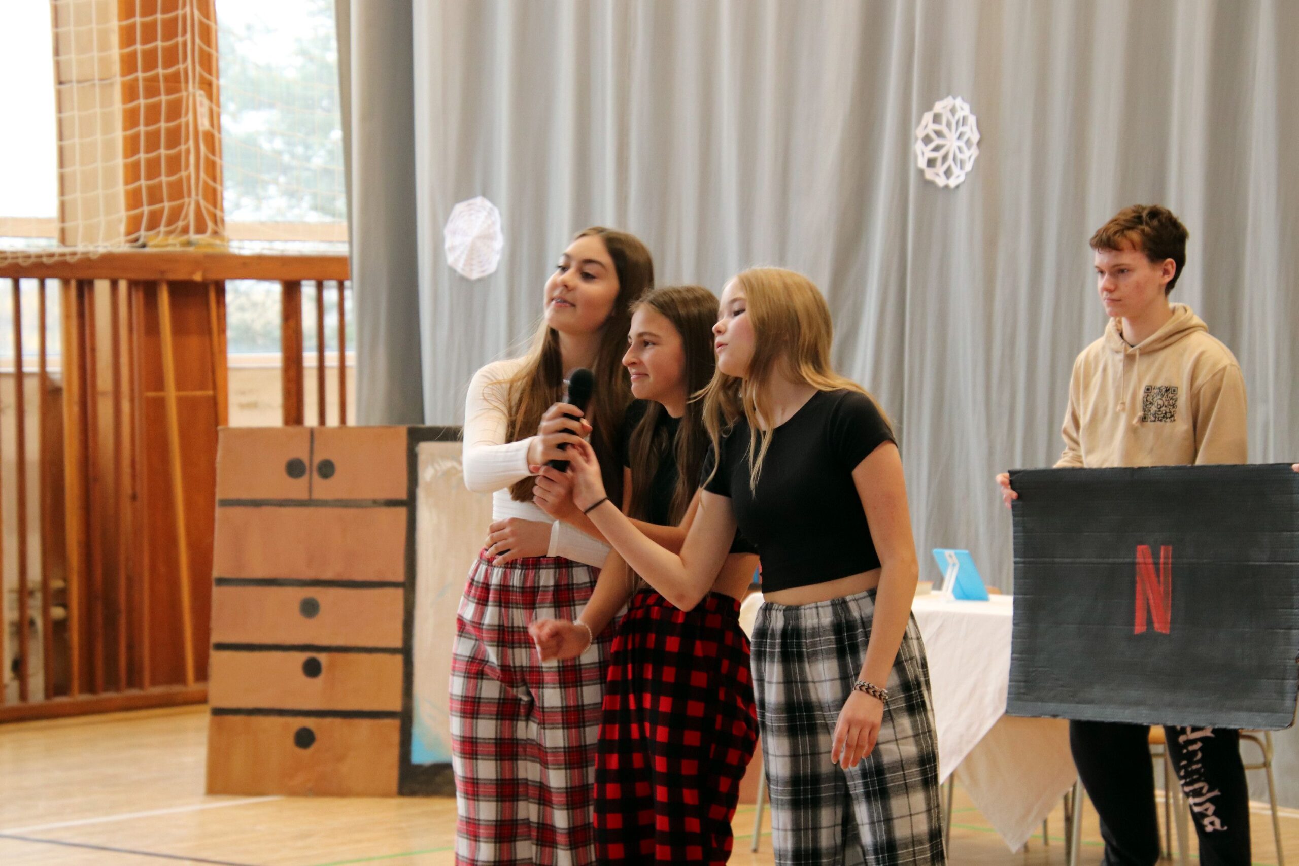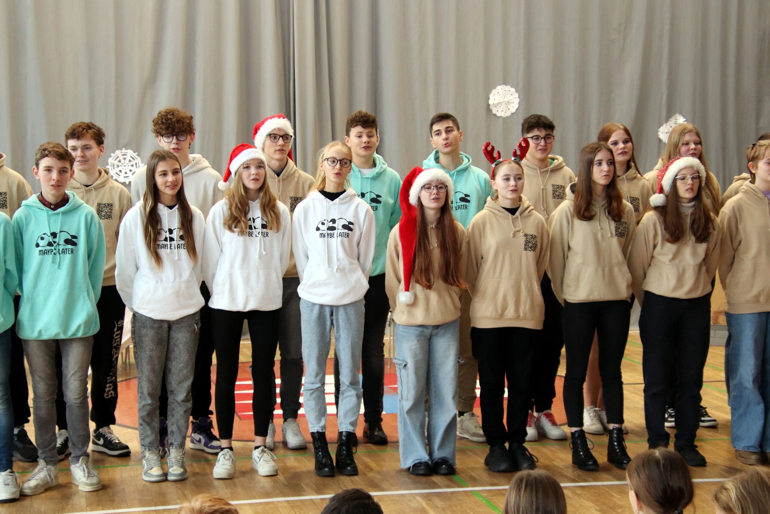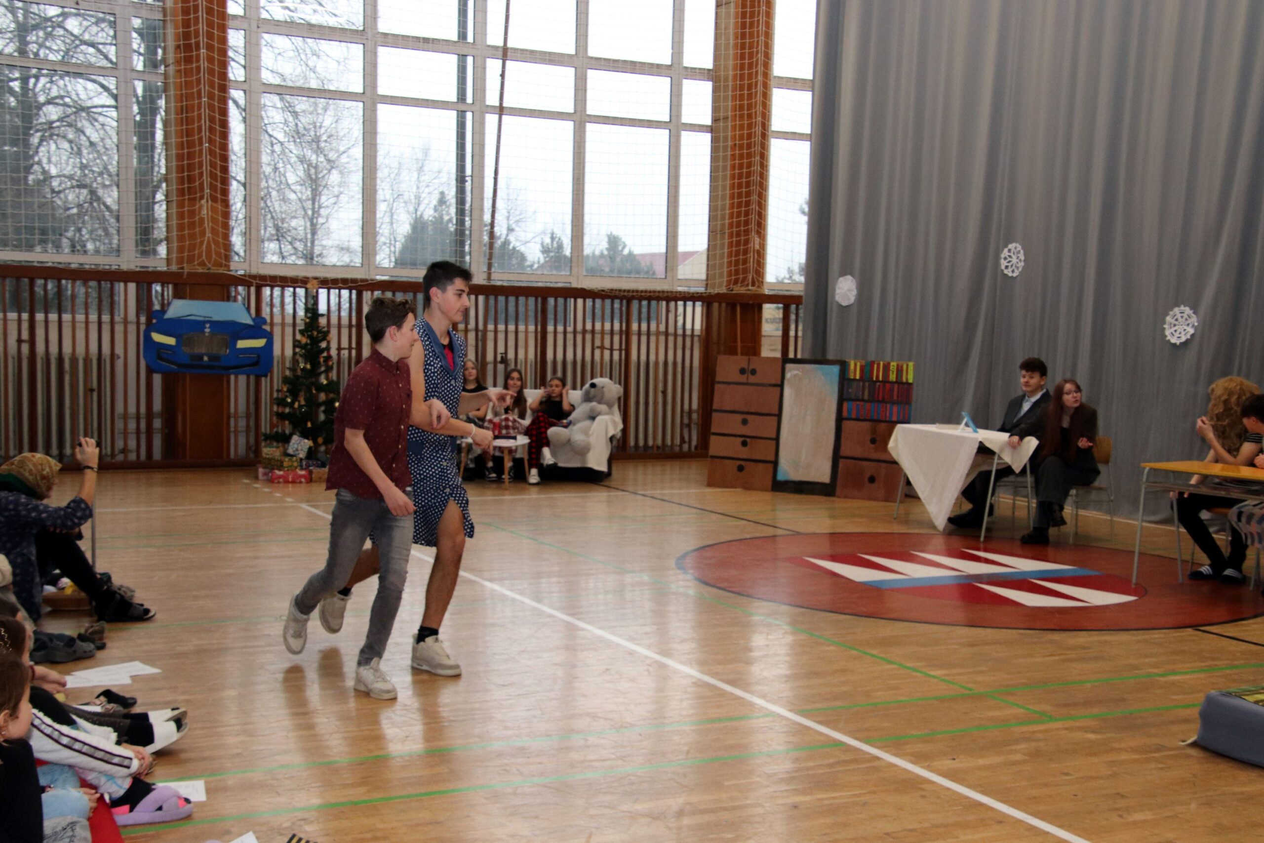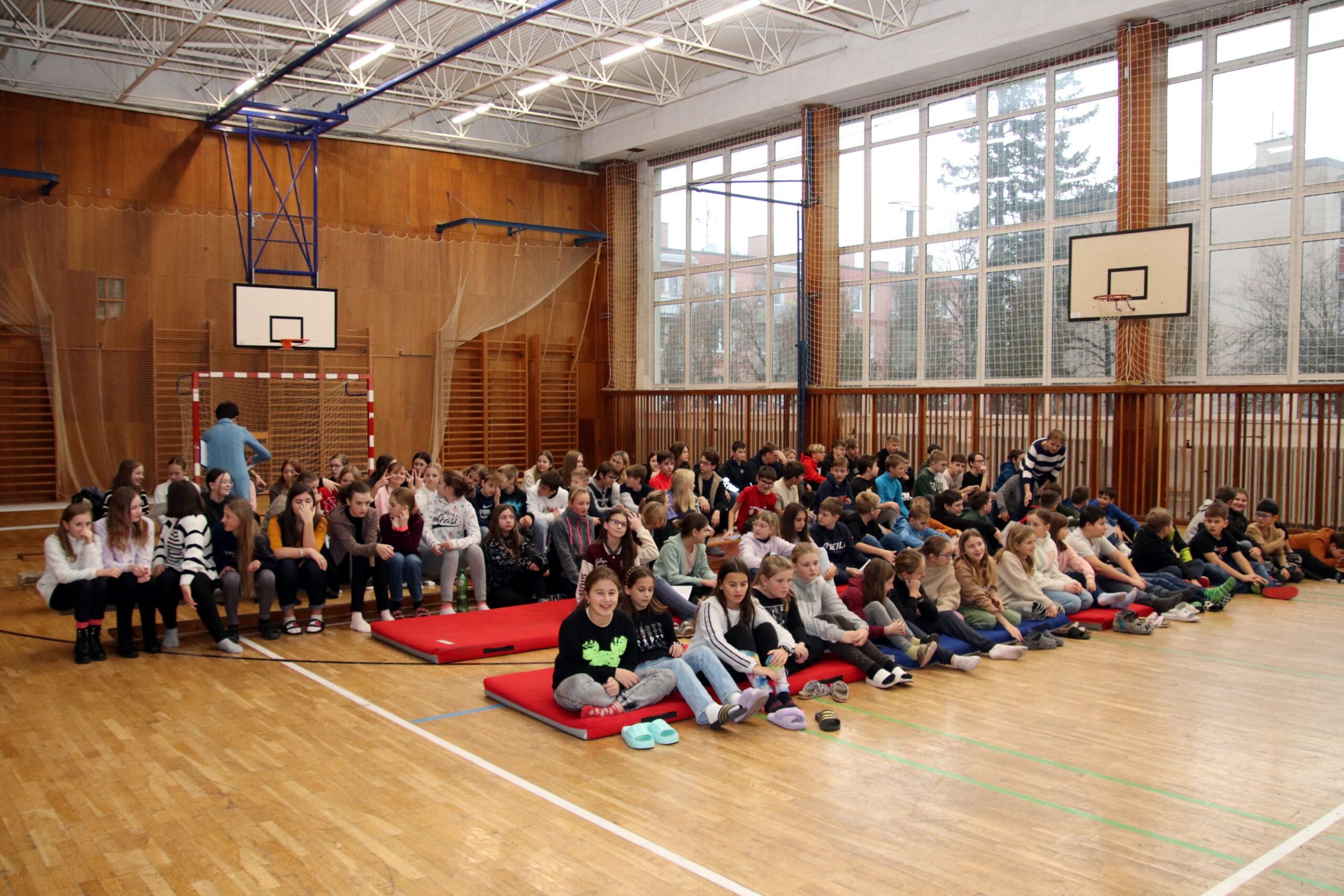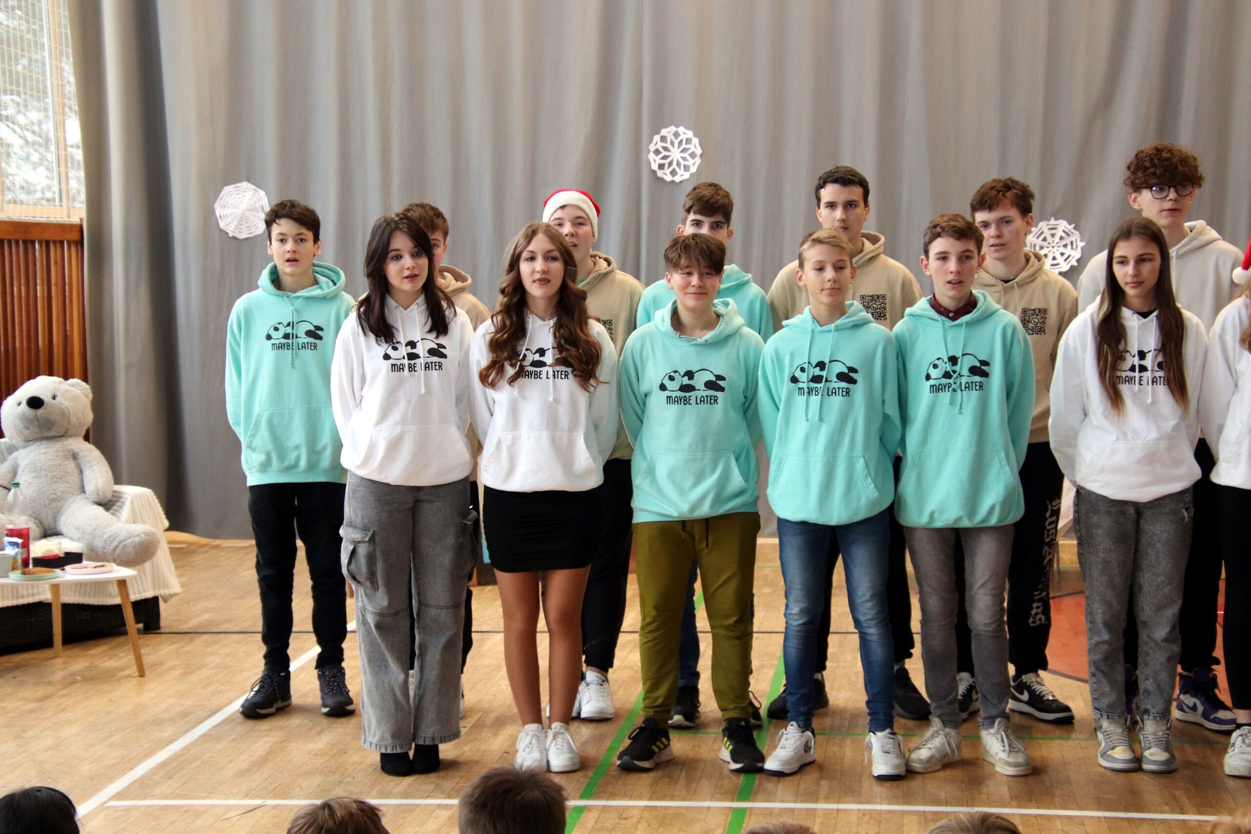 O hezké dopoledne se nám ve středu 20. prosince 2023 postarali žáci 9. tříd. Připravili Zvonkování, tradiční předvánoční program. Spolužákům a učitelům předvedli pestrý a zábavný program. Programem provázely dvě moderátorky, které nezapomněly na vánoční tradice a na zajímavosti o slavení Vánoc ve světě.