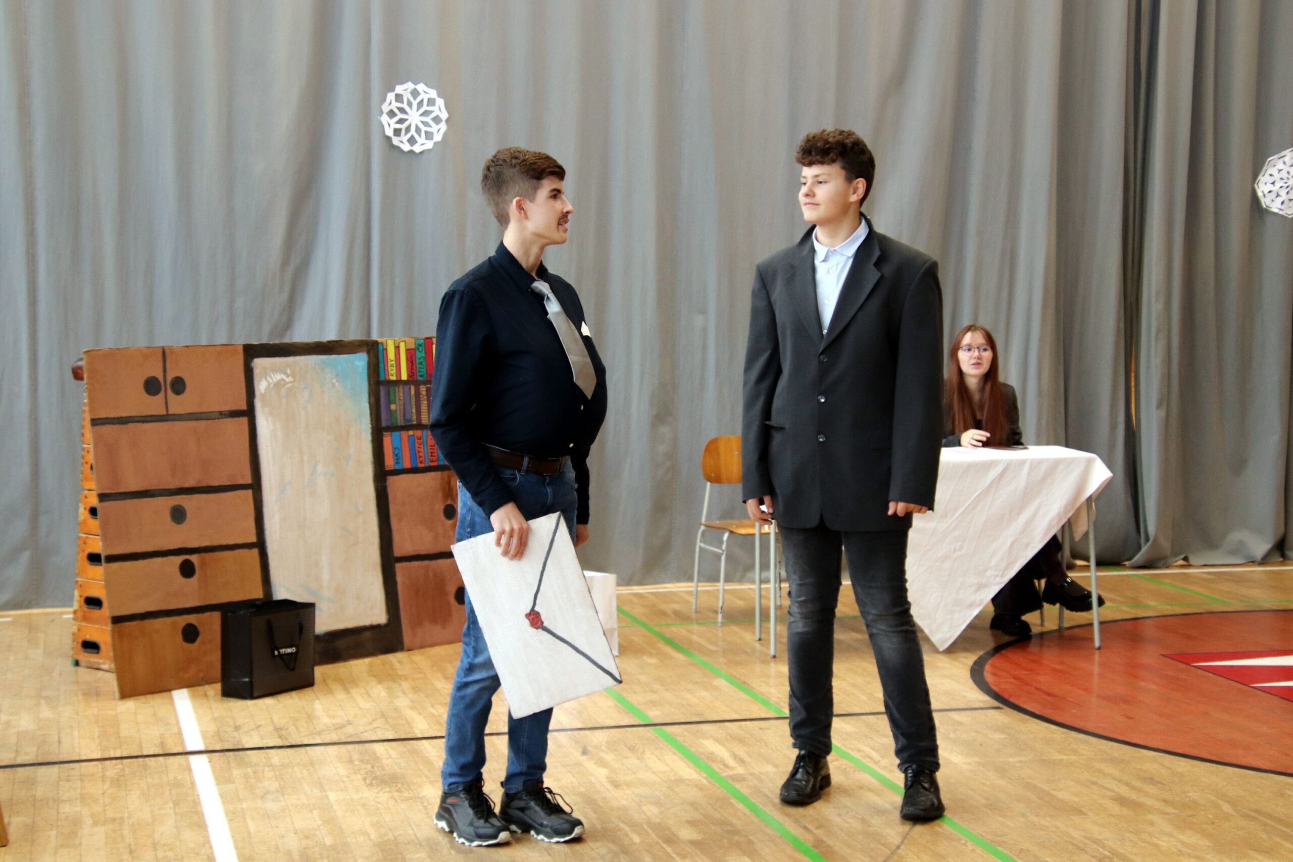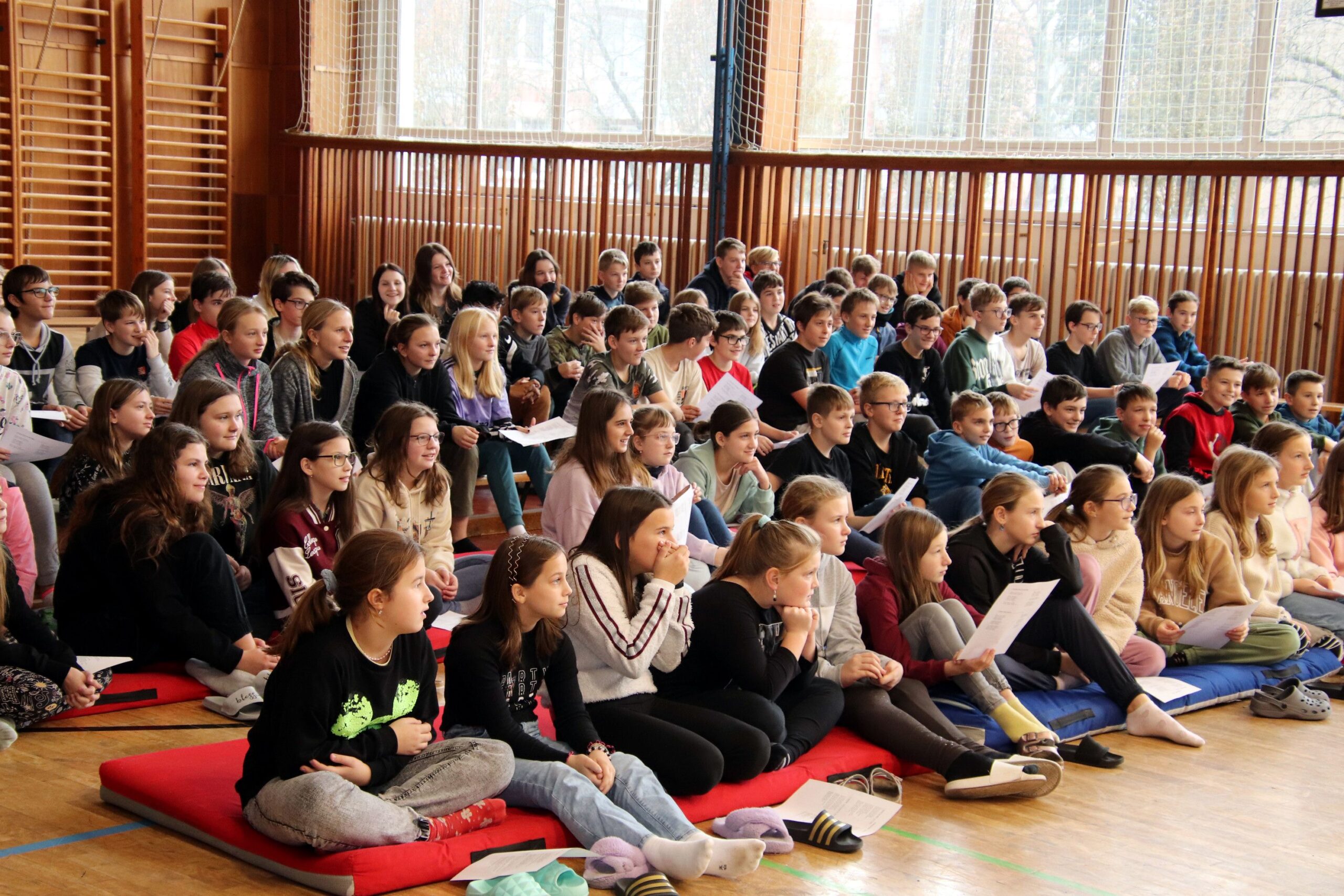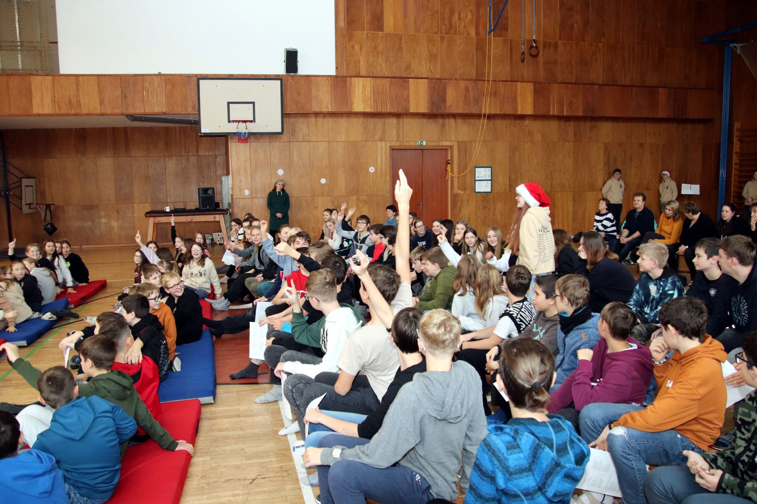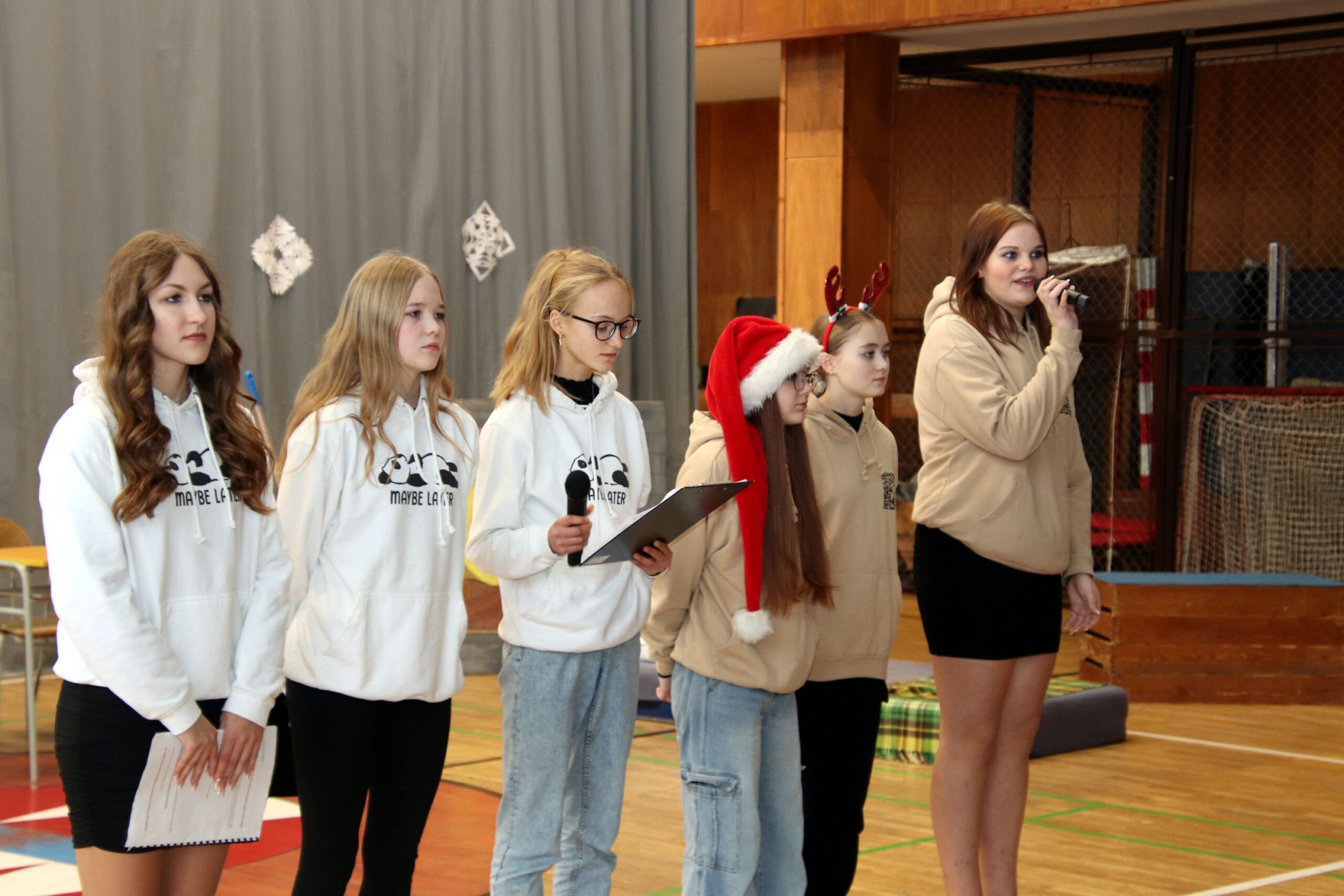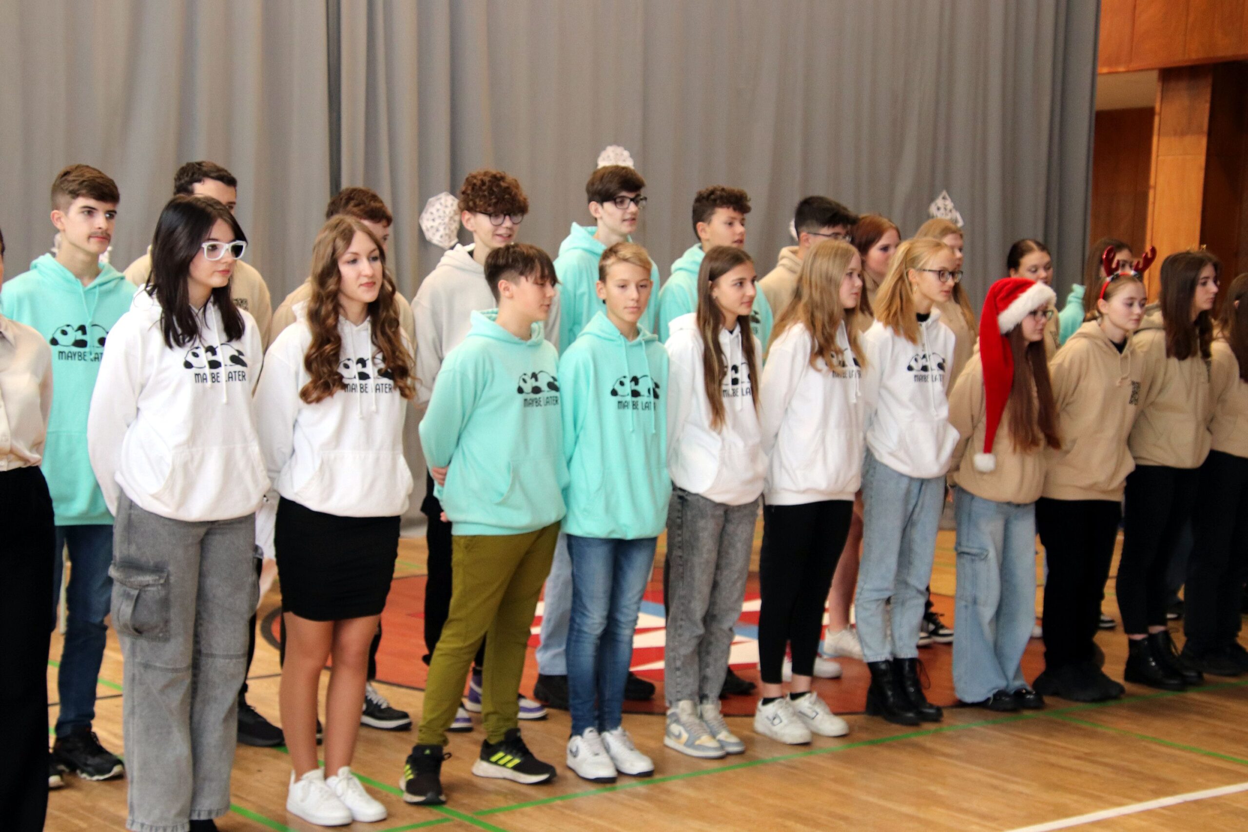 O hezké dopoledne se nám ve středu 20. prosince 2023 postarali žáci 9. tříd. Připravili Zvonkování, tradiční předvánoční program. Spolužákům a učitelům předvedli pestrý a zábavný program. Programem provázely dvě moderátorky, které nezapomněly na vánoční tradice a na zajímavosti o slavení Vánoc ve světě.