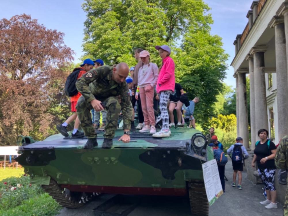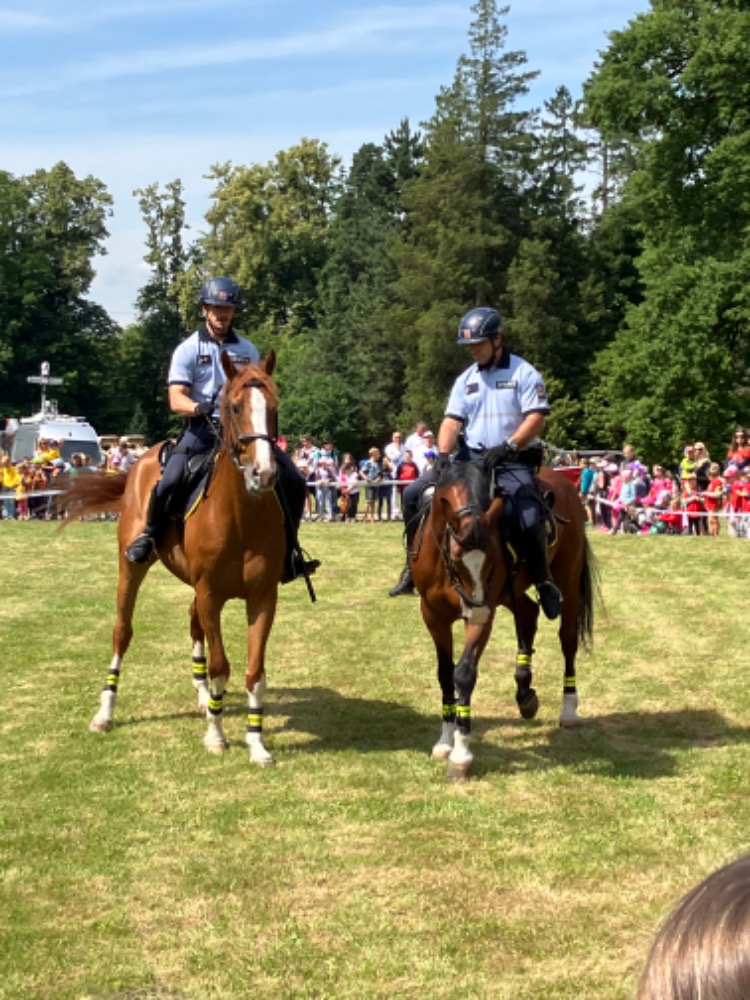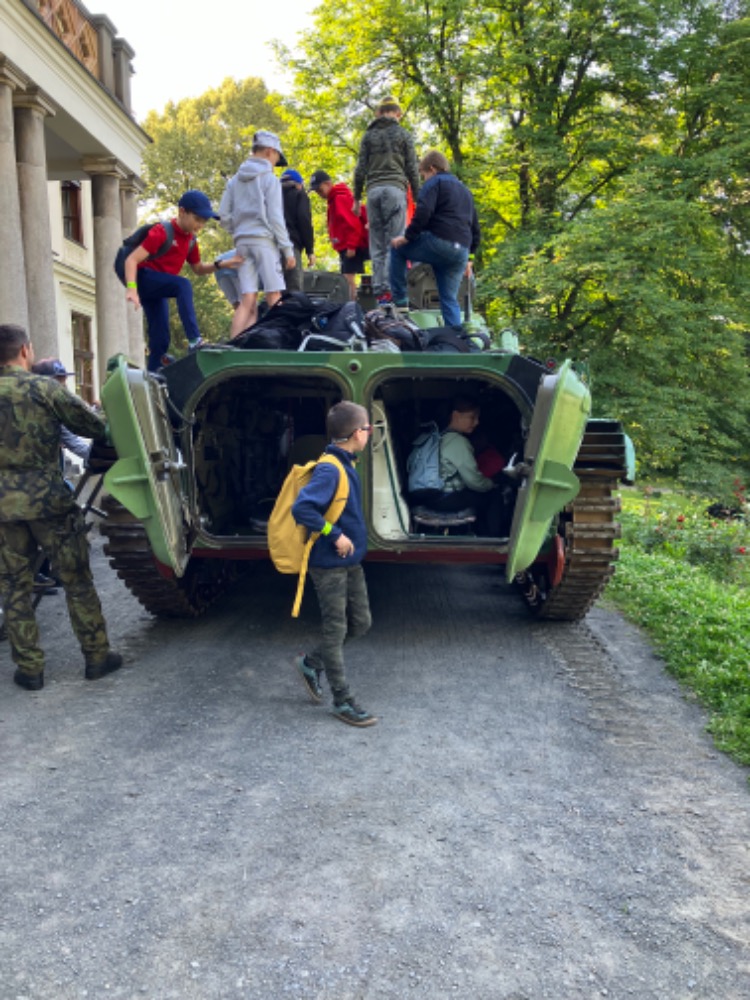 Dne 14.6. 2024 se první a čtvrté třídy zúčastnily Dne s integrovaným záchranným systémem a Armádou ČR. Zhlédli jsme ukázky policejní, hasičské a záchranářské techniky, výstroje i výzbroje. Děti mohly prozkoumat tank, vyzkoušet si pumpovat historickou koňskou stříkačkou. Nejzajímavější však byly dynamické ukázky výcviku služebního psa, zadržení nebezpečného pachatele, vyproštění osoby z havarovaného vozu a ukázka zásahu se služebními koňmi.