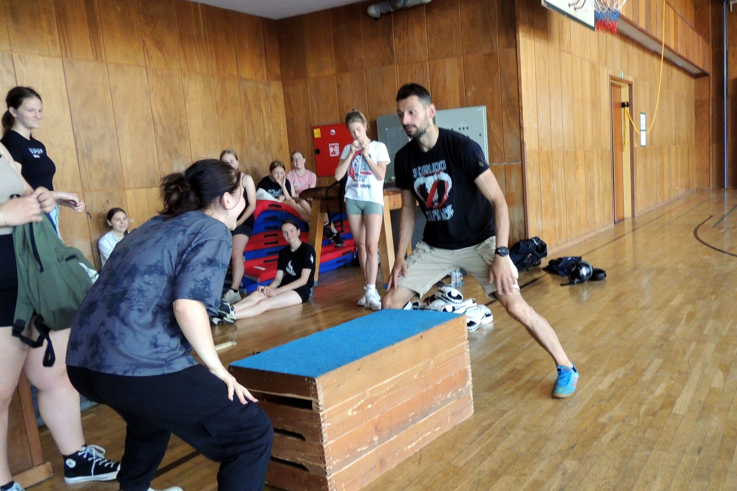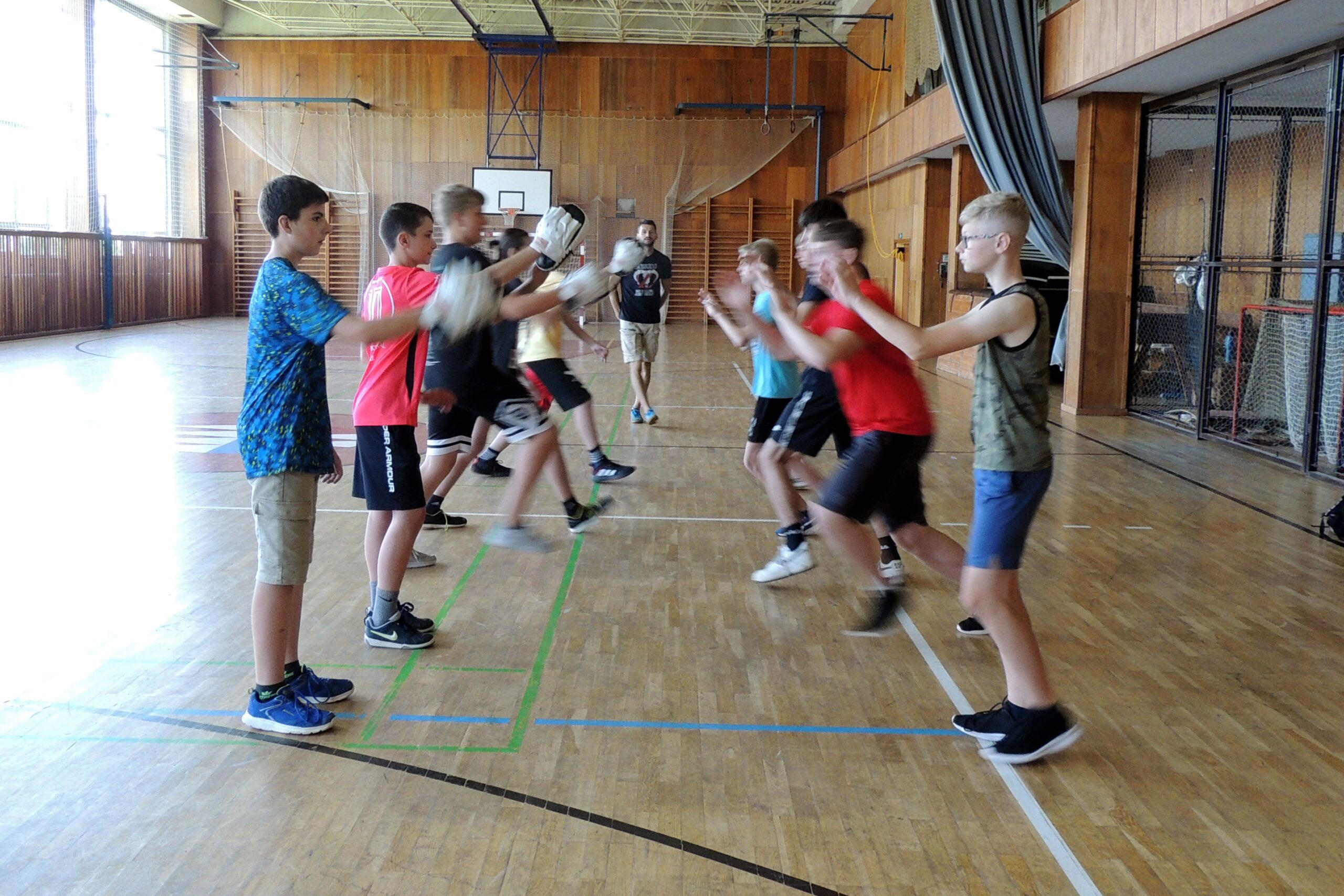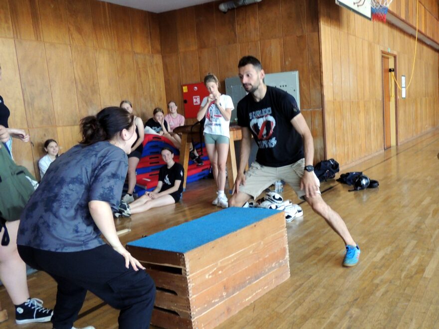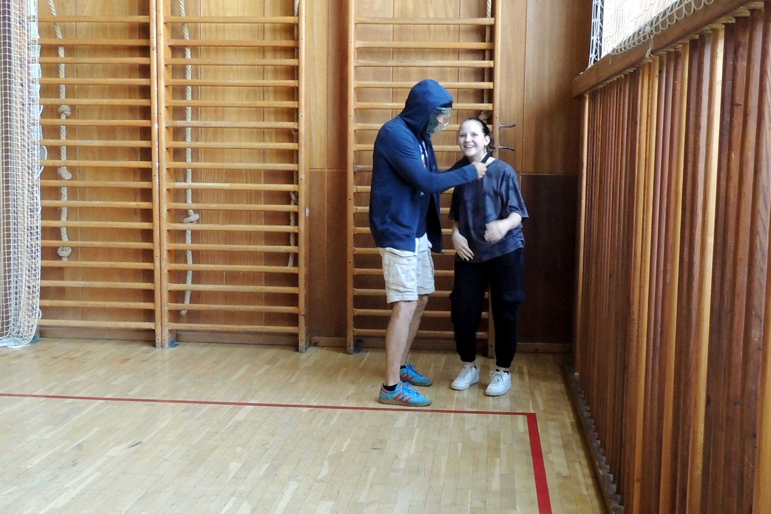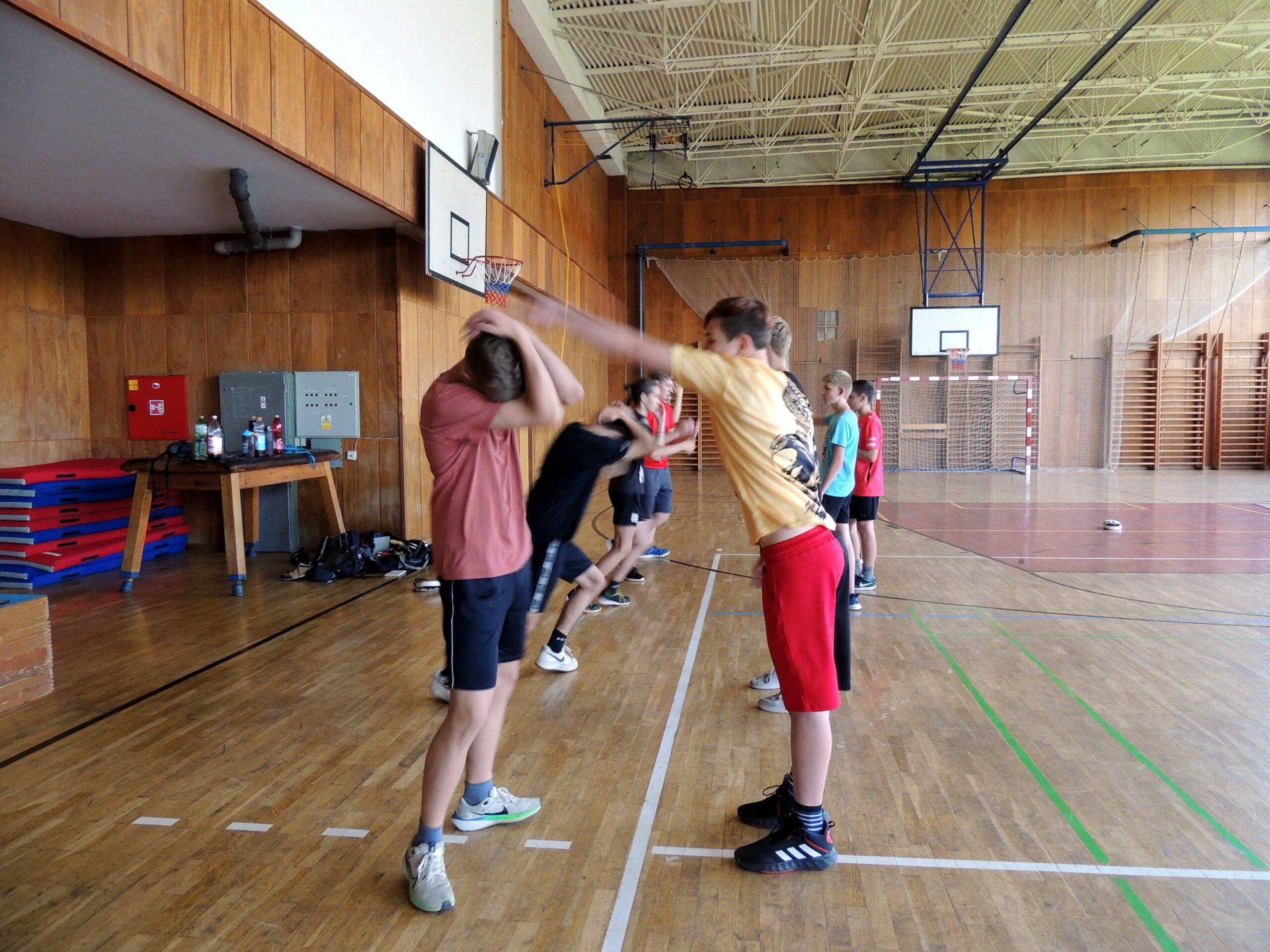 Ve středu 19. 6. 2024 absolvovali osmáci kurz sebeobrany. Lektor Michal Řezníček z firmy Sorudo, která pořádá kurzy pro školy a veřejnost, učil naše žáky, jak předcházet konfliktům a nebezpečí, jak se bránit před útočníkem, jak si chránit různé části těla, popř. jak utéct.