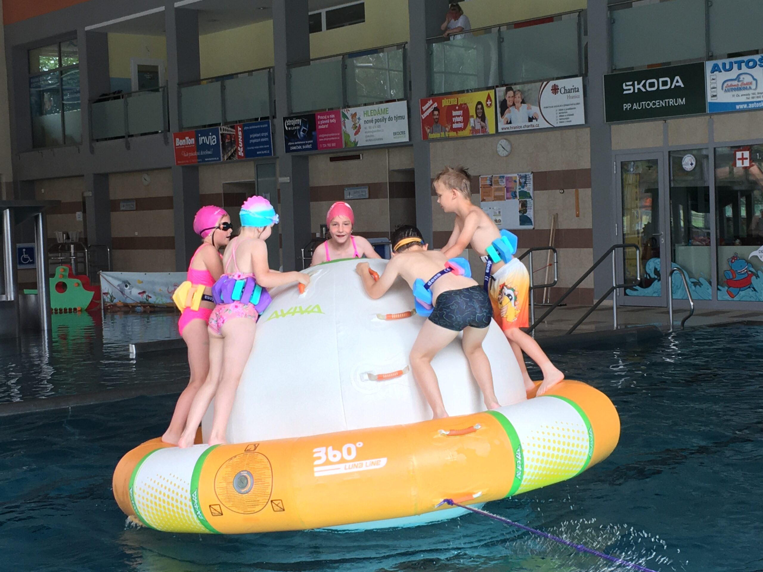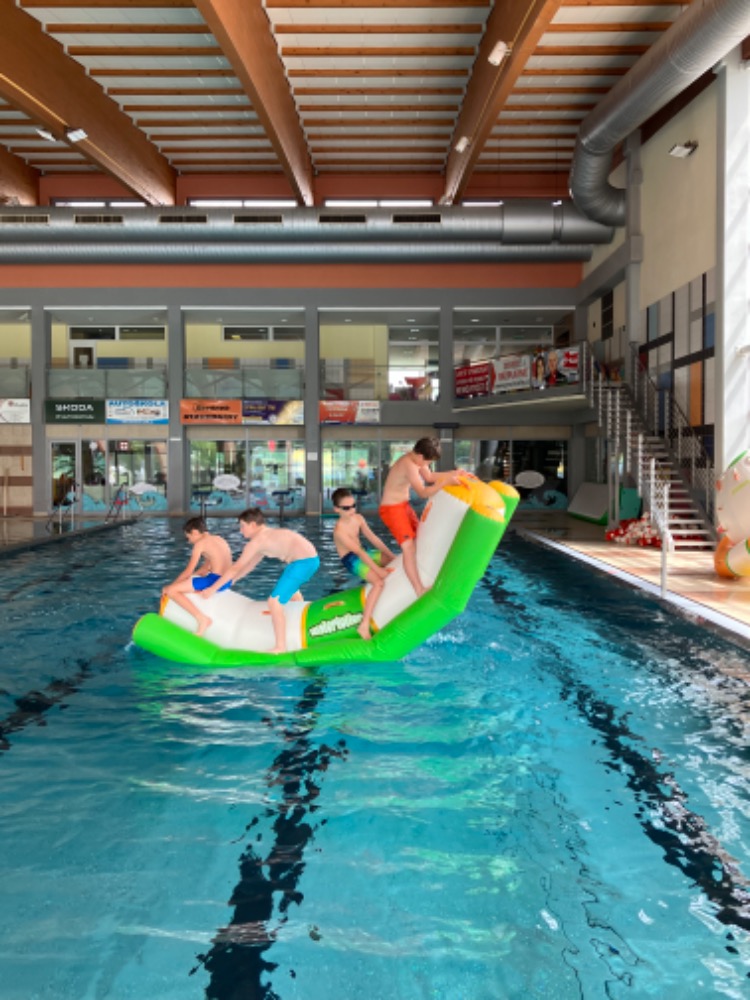 Od poloviny května jezdili žáci 1. a 4. ročníku na bazén do Hranic na kurz plavání.