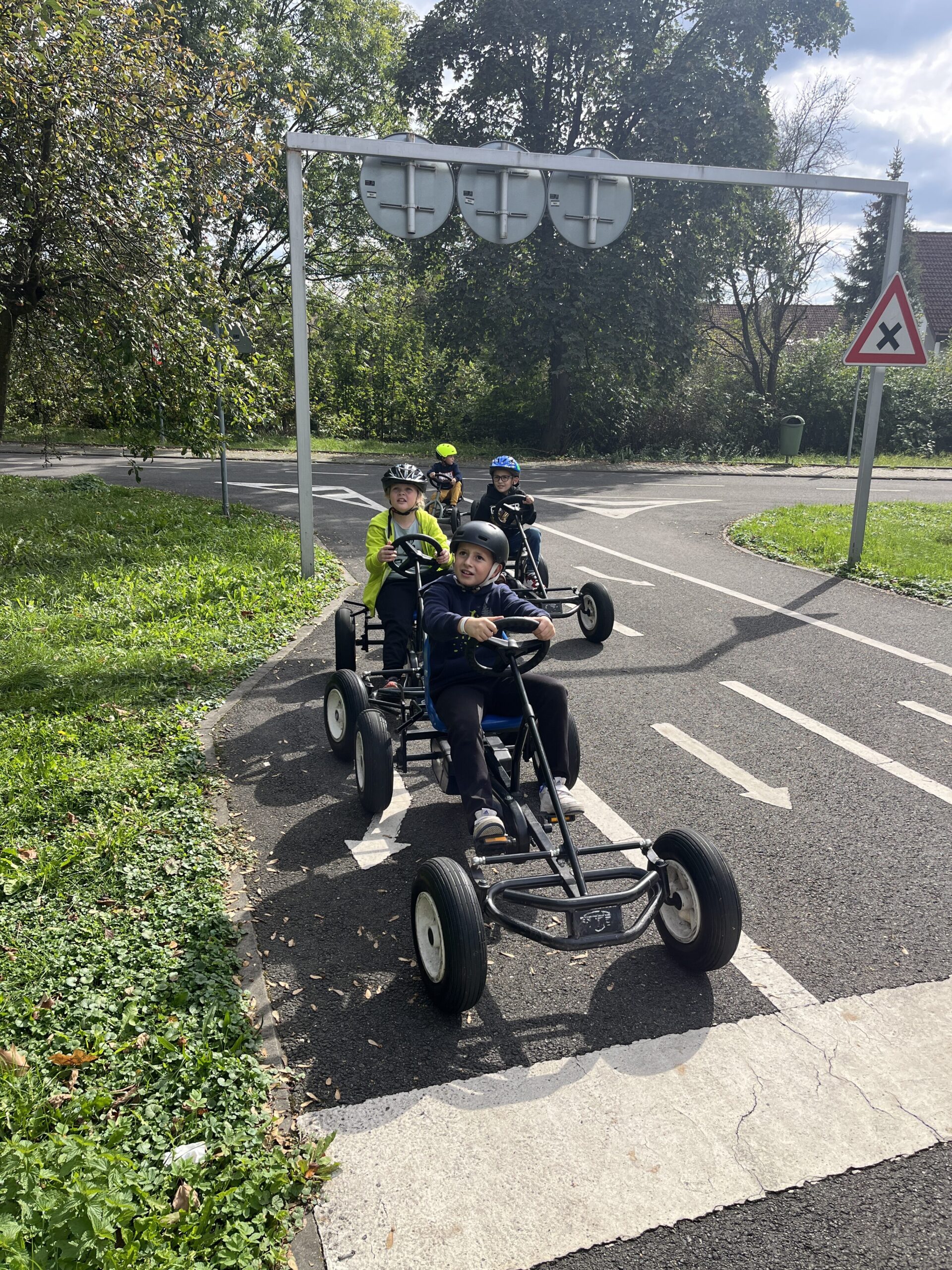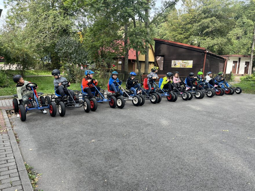 Děti ze školní družiny strávily poslední zářijové odpoledne na dopravním hřišti ve Valašském Meziříčí. Tentokrát nám počasí přálo, a tak si děti mohly vyzkoušet jízdu na kárách a koloběžkách. Kluci i holky museli sledovat značky, semafory, chodce na přechodech, skoro jak v reálném provozu. Odpoledne si moc užili. Na dopravní hřiště se budeme rádi vracet.