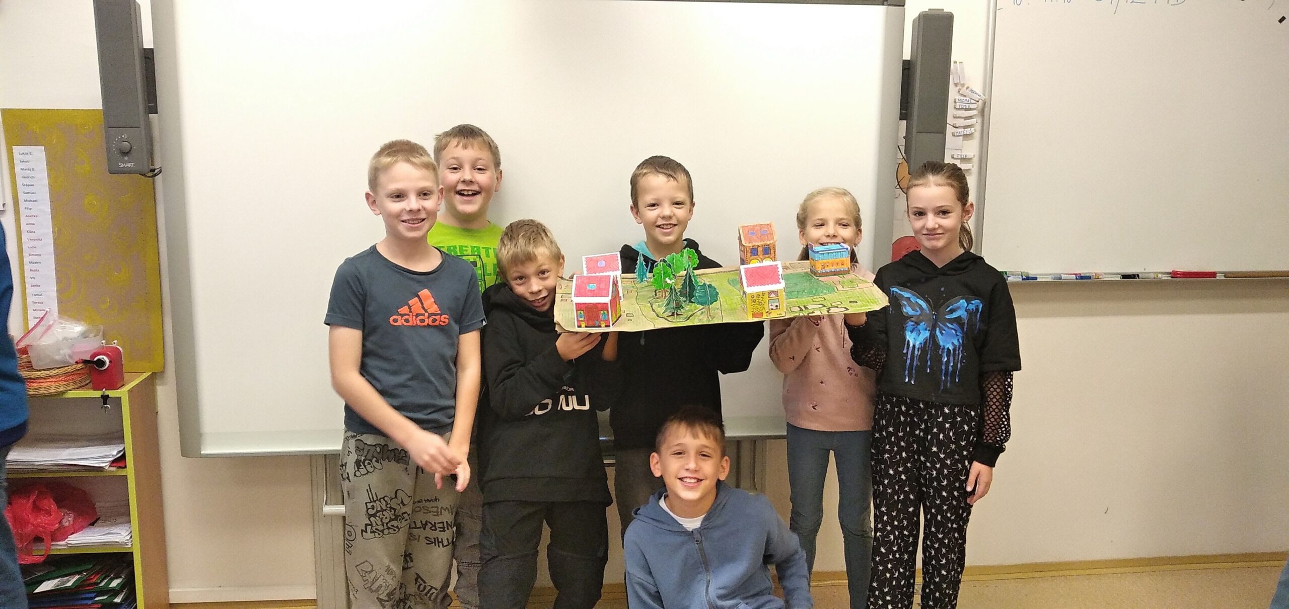 V průběhu měsíců září a října 2024 probíhal ve 4. třídě projekt Můj domov – Kelečsko. Projekt jsme realizovali napříč předměty – českým jazykem, vlastivědou, přírodovědou, výtvarnou výchovou a hudební výchovou. Děti se zaposlouchaly do povídky v kelečském nářečí, napsaly dopis panu starostovi, zkoumaly ekosystémy parku a rybníka Chmelník, orientovaly se po Kelči pomocí mapy, prohlédly si památky a historické budovy, seznámily se s významnými osobnostmi, zazpívaly si lidovou píseň z kelečského panství a ztvárnily a vymodelovaly část města podle mapy. Celý projekt jsme zakončili na městském úřadě. Tam pan starosta odpovídal na otázky připravené dětmi. Dětem se projektové učení líbilo a byly překvapené, jak bohatou historii a kolik významných rodáků má Kelč.