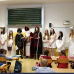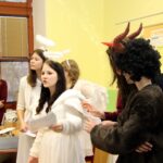 V pátek 6. prosince 2024 nás ve škole navštívil Mikuláš se svou velkou družinou. Celá akce začala příchodem andělů, kteří za zvuku vánočních písně vtancovali do jednotlivých tříd. Tam se k tanci přidaly někdy i další děti. Atmosféra však brzy nabrala dramatický obrat. Melodie romantické vánoční písně se náhle změnila v děsivou skladbu z pohádky S čerty nejsou žerty, a do tříd vtrhli hluční čerti (ti s nadšením hledali „hříšníky“ – děti, které např. nejí polévky, dělají nepořádek ve škole, opisují úkoly nebo schovávají pod lavicí použité kapesníky).