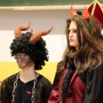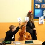 Burácení čertů naštěstí brzy uklidnil Mikuláš, který všechny přivítal a oznámil, že letos mají pro děti připravený speciální Čertovský kvíz. Děti dostaly kartičky s písmeny A a B a odpovídaly na záludné, ale zábavné otázky. Zkusíte si některé?