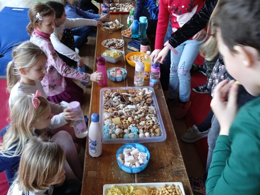 Rodiče dětí nám pomohli s občerstvením, takže každý, kdo se zúčastnil párty, přispěl do našeho třídního baru nějakou sladkostí nebo jinými slanými pochutinami. Děti měly velký výběr jak z cukroví, z různých druhů brambůrek, tyčinek, křupek atd.,. Každý si zkrátka v občerstvení našel to své oblíbené.