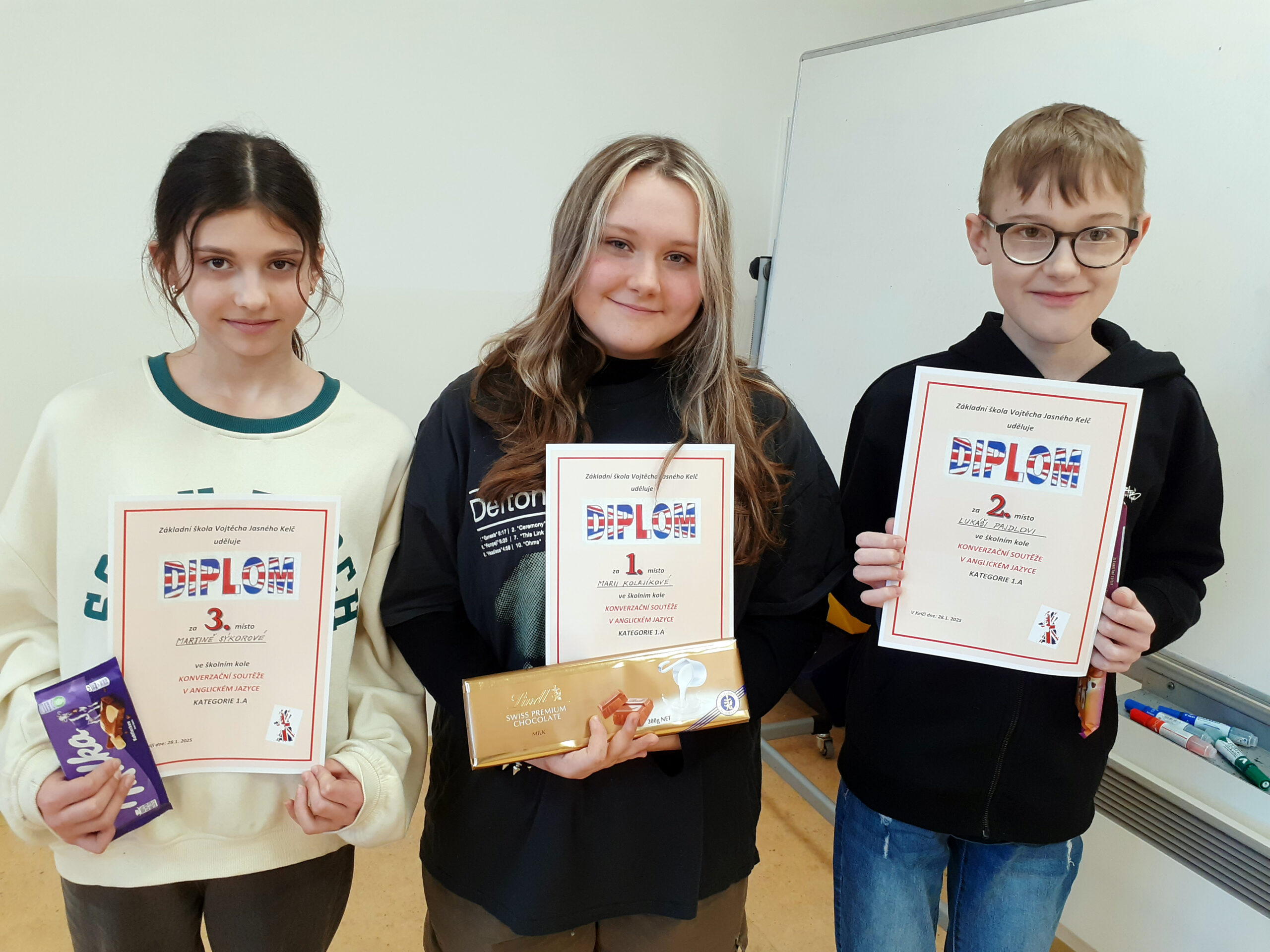 V letošním školním roce se zúčastnilo 17 žáků naší školy. Chtěli bychom ocenit vysokou úroveň angličtiny všech soutěžících. O umístění na prvních místech rozhodovaly jednotlivé body. Vítězové z obou kategorií postupují do okresního kola.