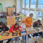Výtvarná výchova se nesla ve znamení vitráží. Ukazovali jsme si příklady vitrážového umění a nakonec jsme se sami pustili do tvoření. Pomocí barevných průhledných papírů děti vytvořily krásnou velikonoční výzdobu, která nám rozzářila třídu.