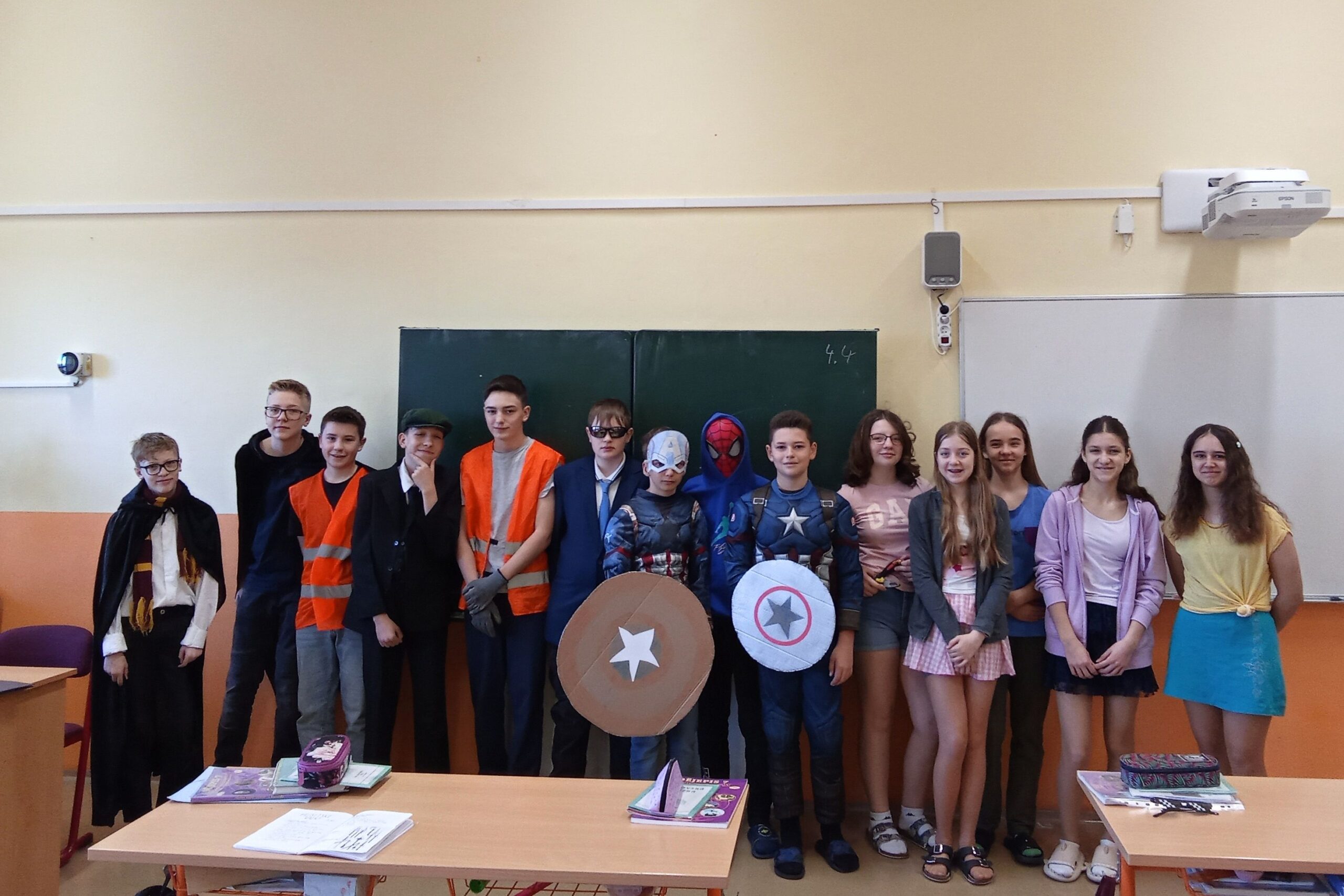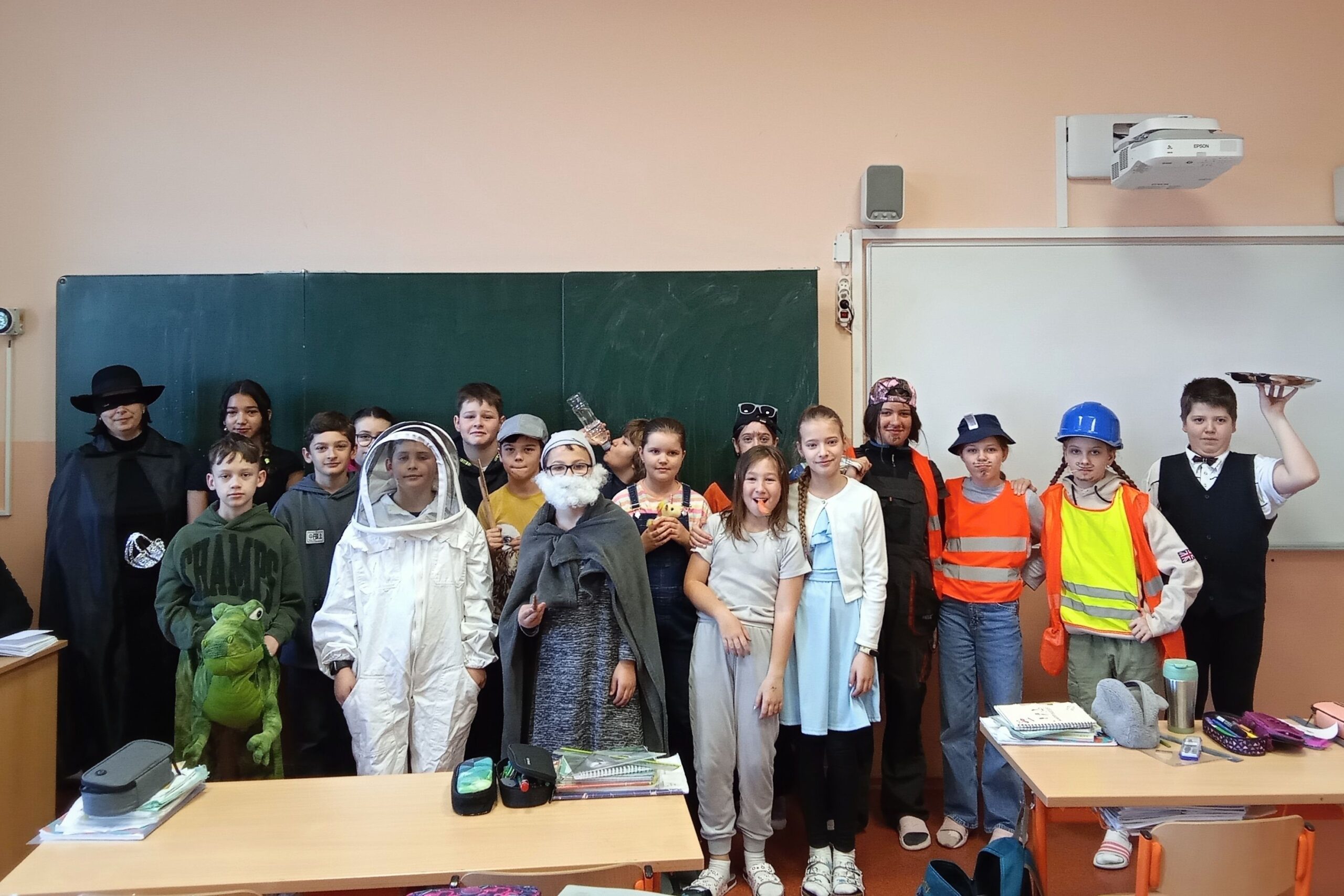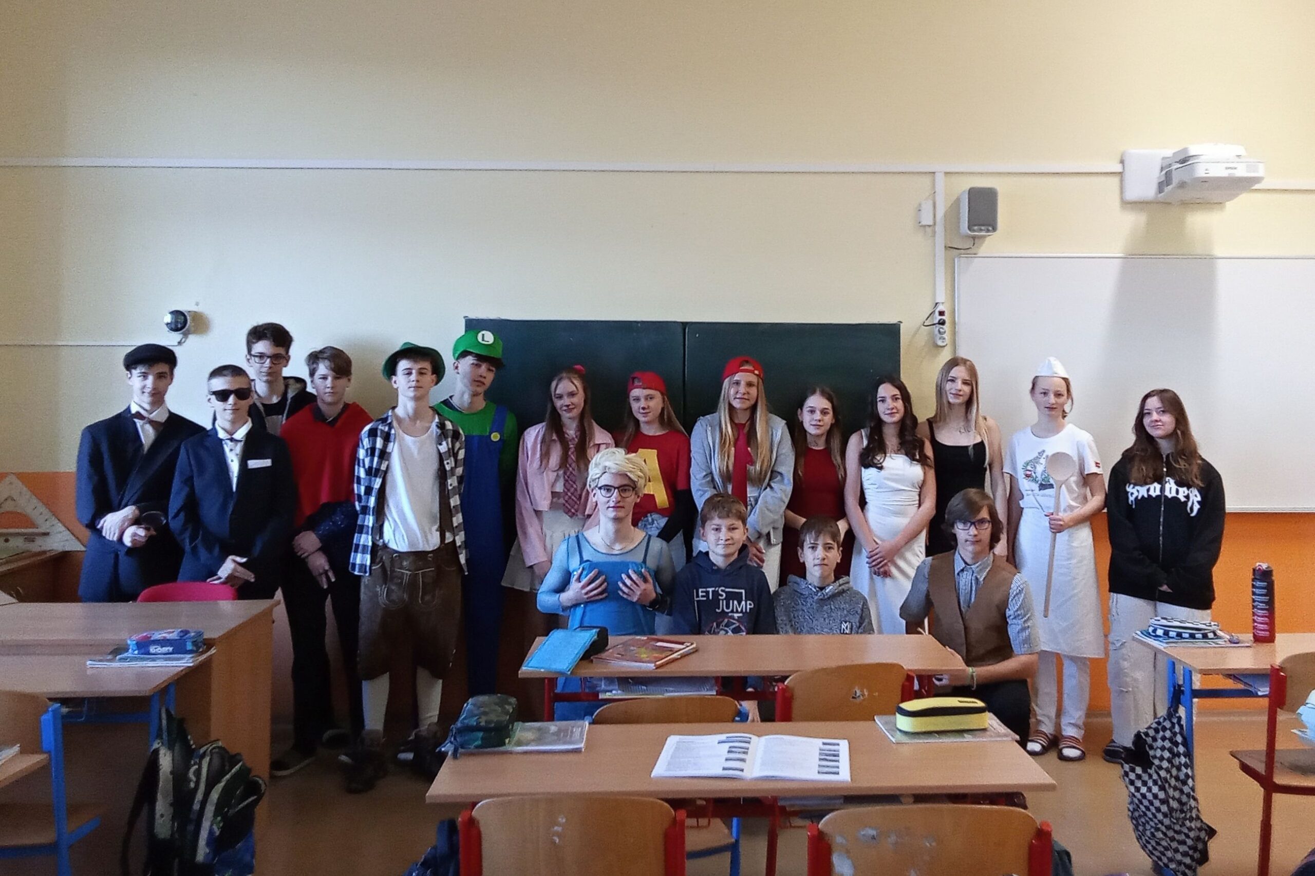 A v úterý byly oceněny 1. B a 8. A jednak za míru zapojení do akce a taky za dobrý nápad při volbě převleků.