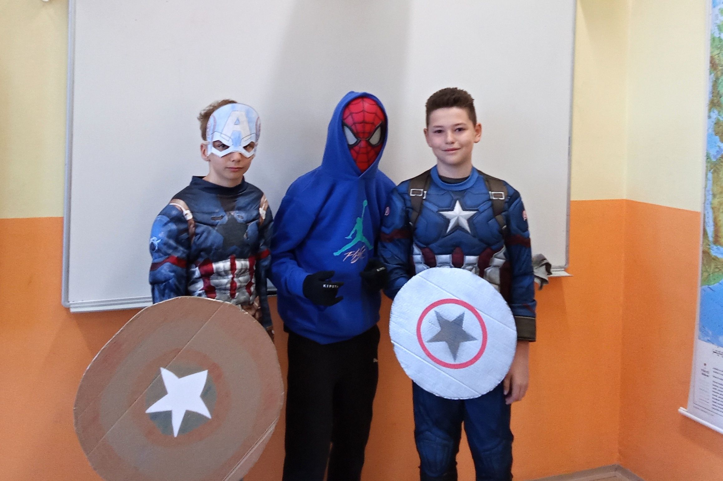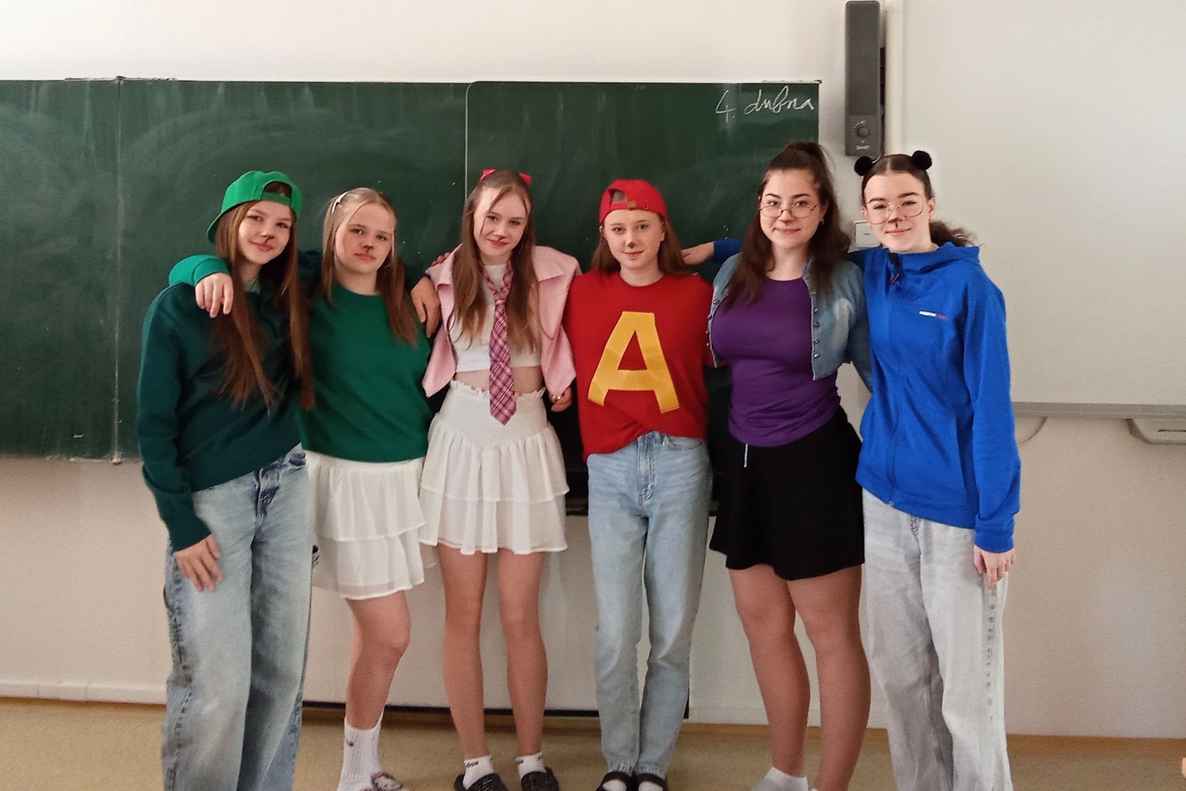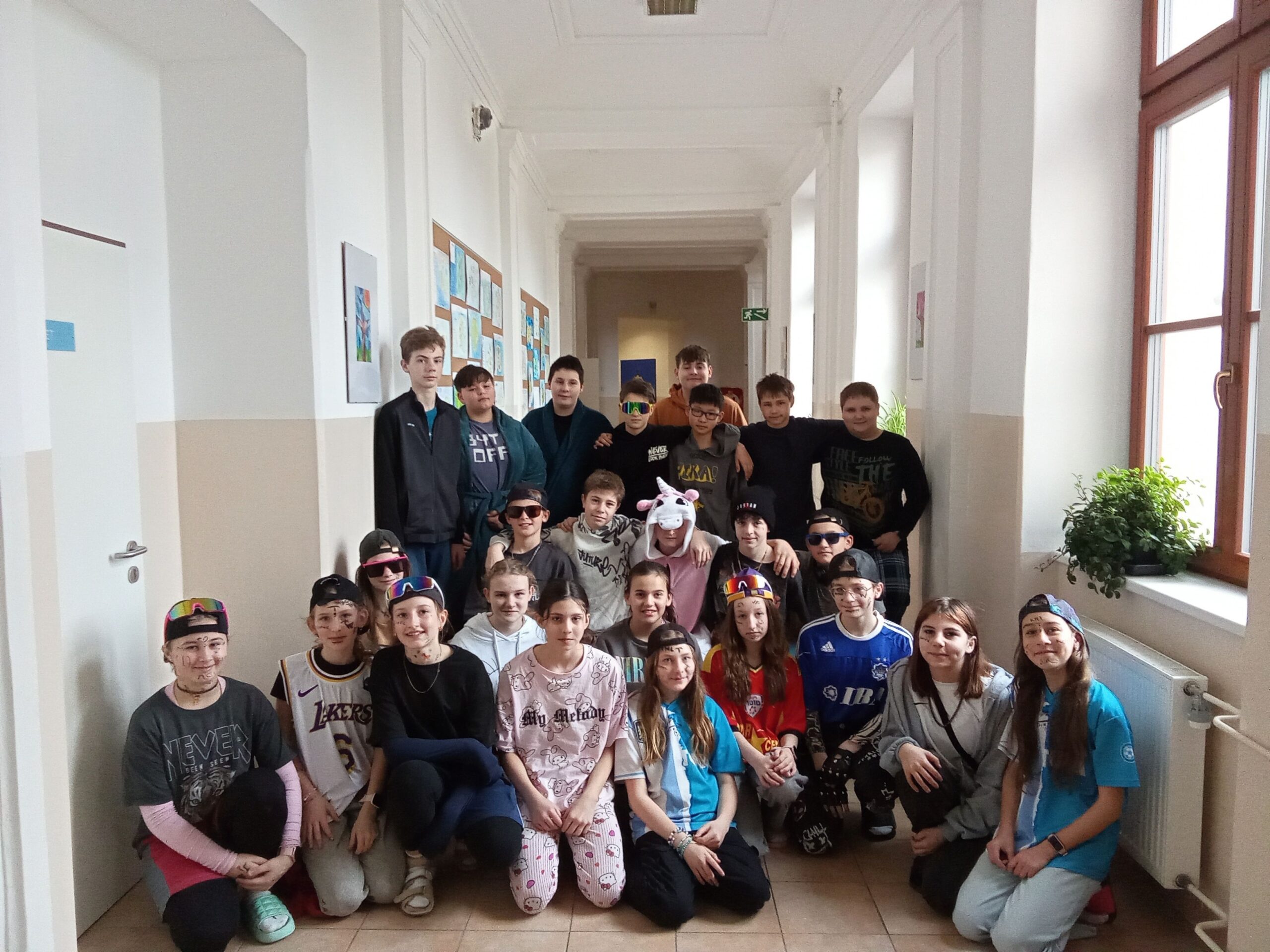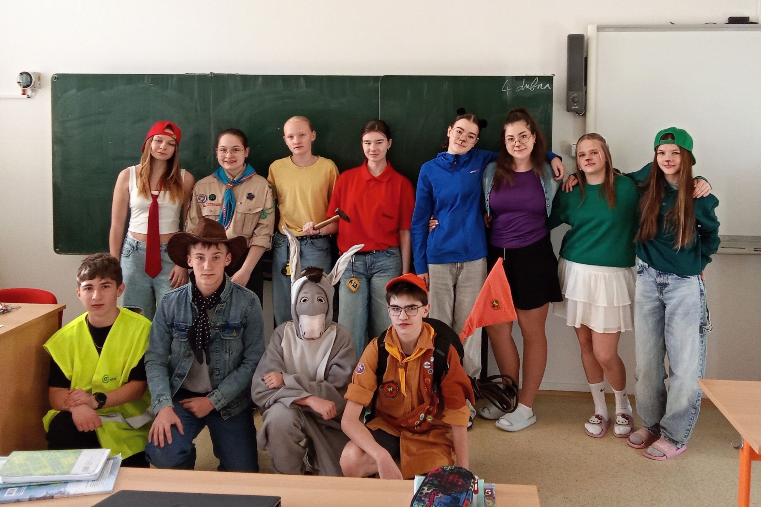 A v úterý byly oceněny 1. B a 8. A jednak za míru zapojení do akce a taky za dobrý nápad při volbě převleků.