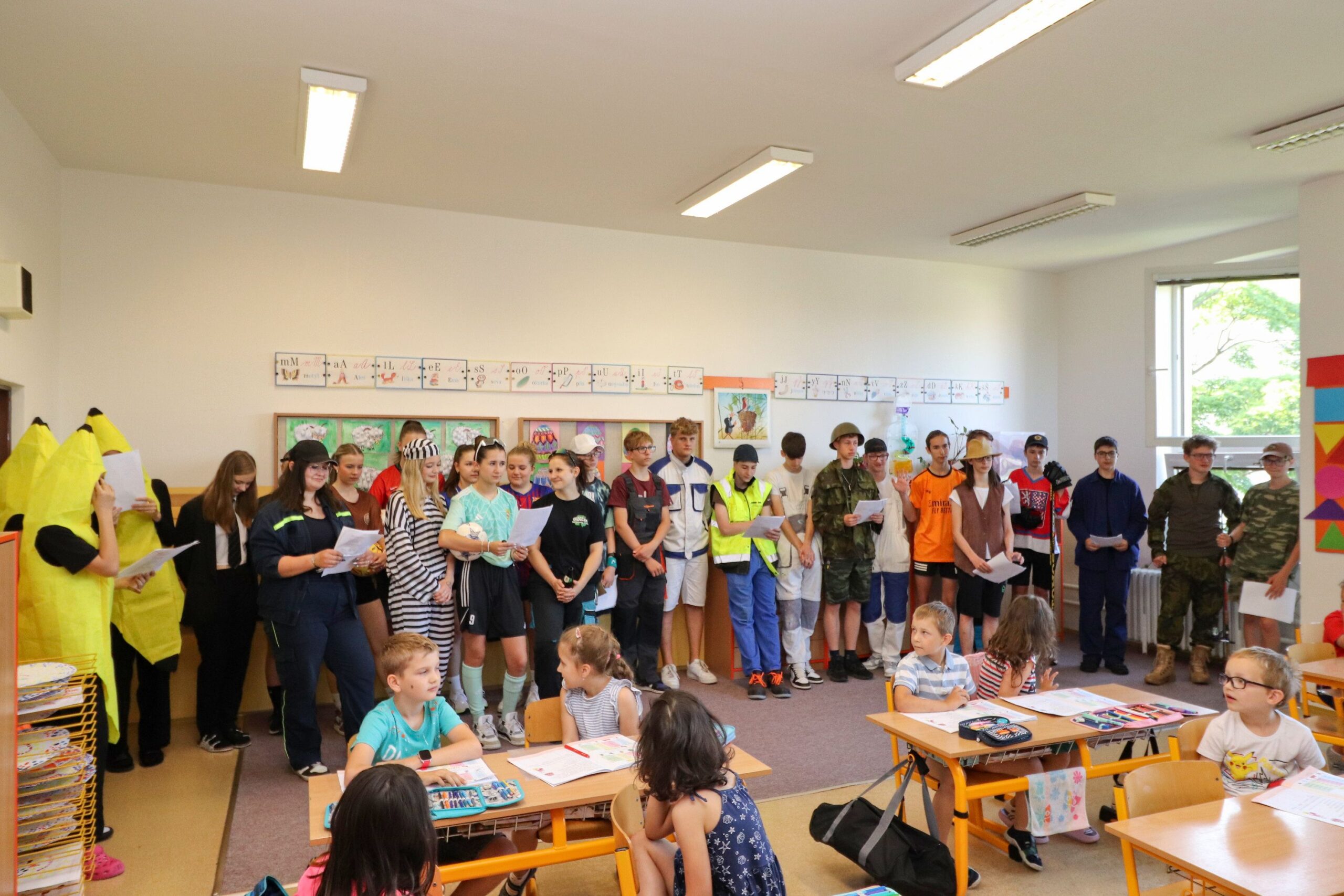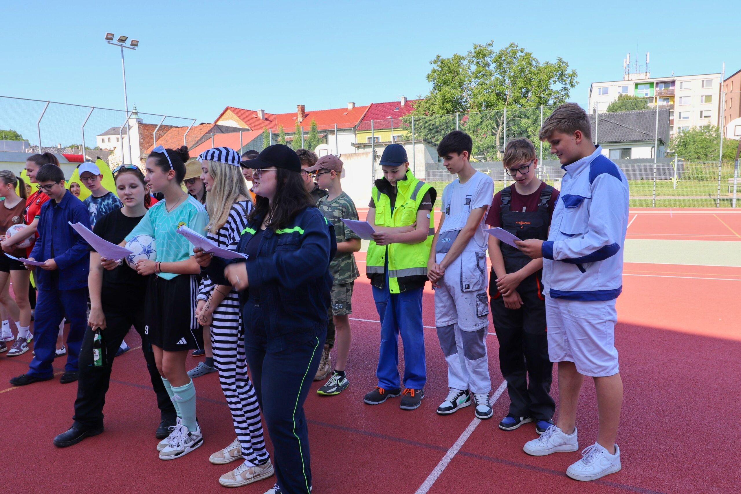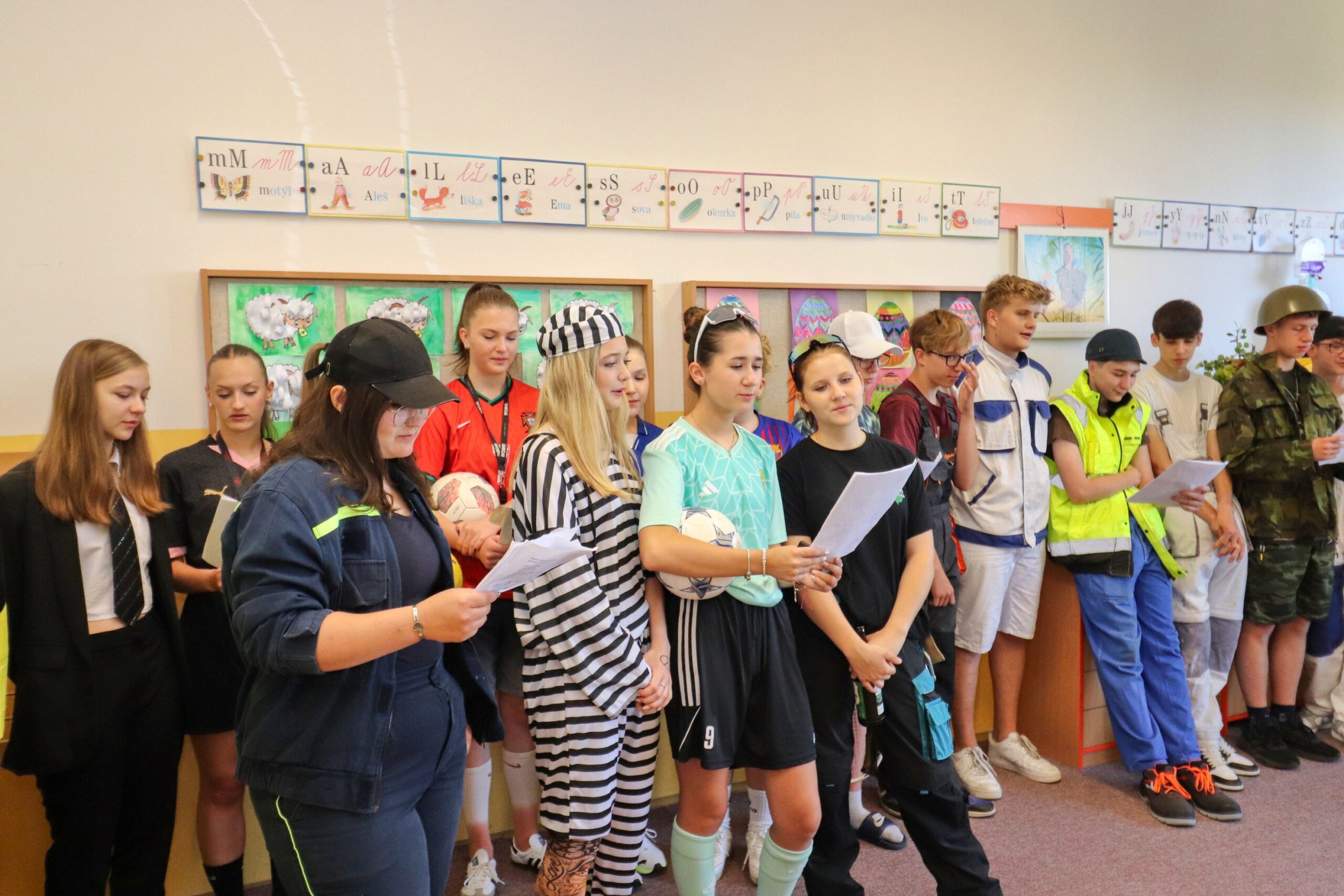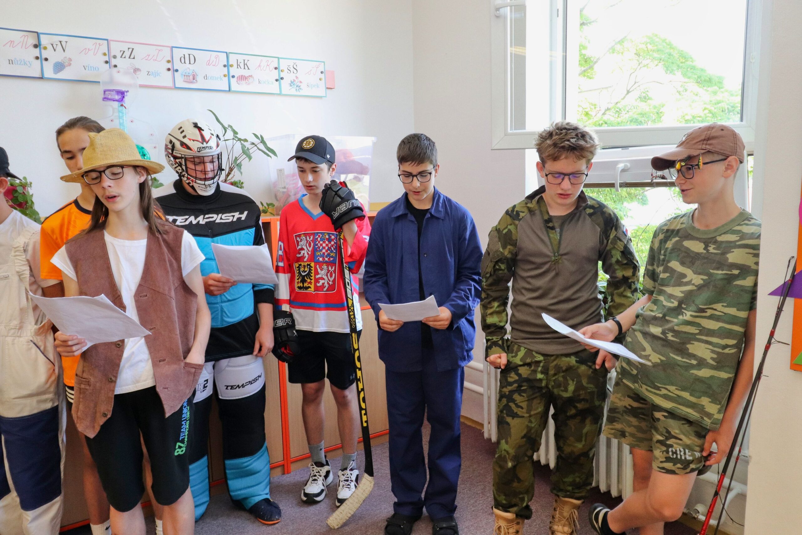 24. 6. 2025 Pavel Čučka Poslední zvonění Deváťáci se poctivě připravovali, „zpěv páteční“ s texty o učitelích pak předvedli opravdu v každé třídě, navštívili i Městský úřad v Kelči.