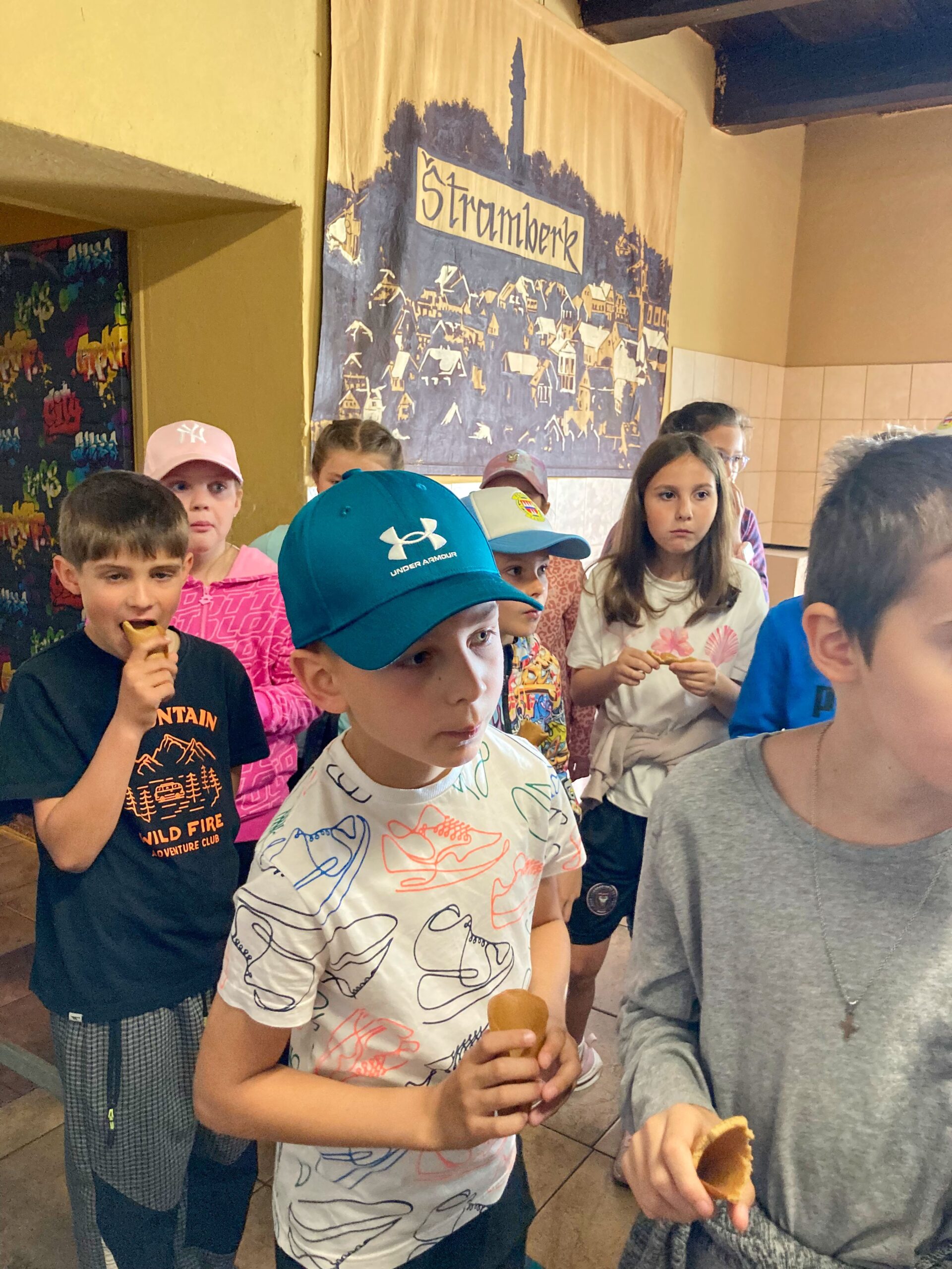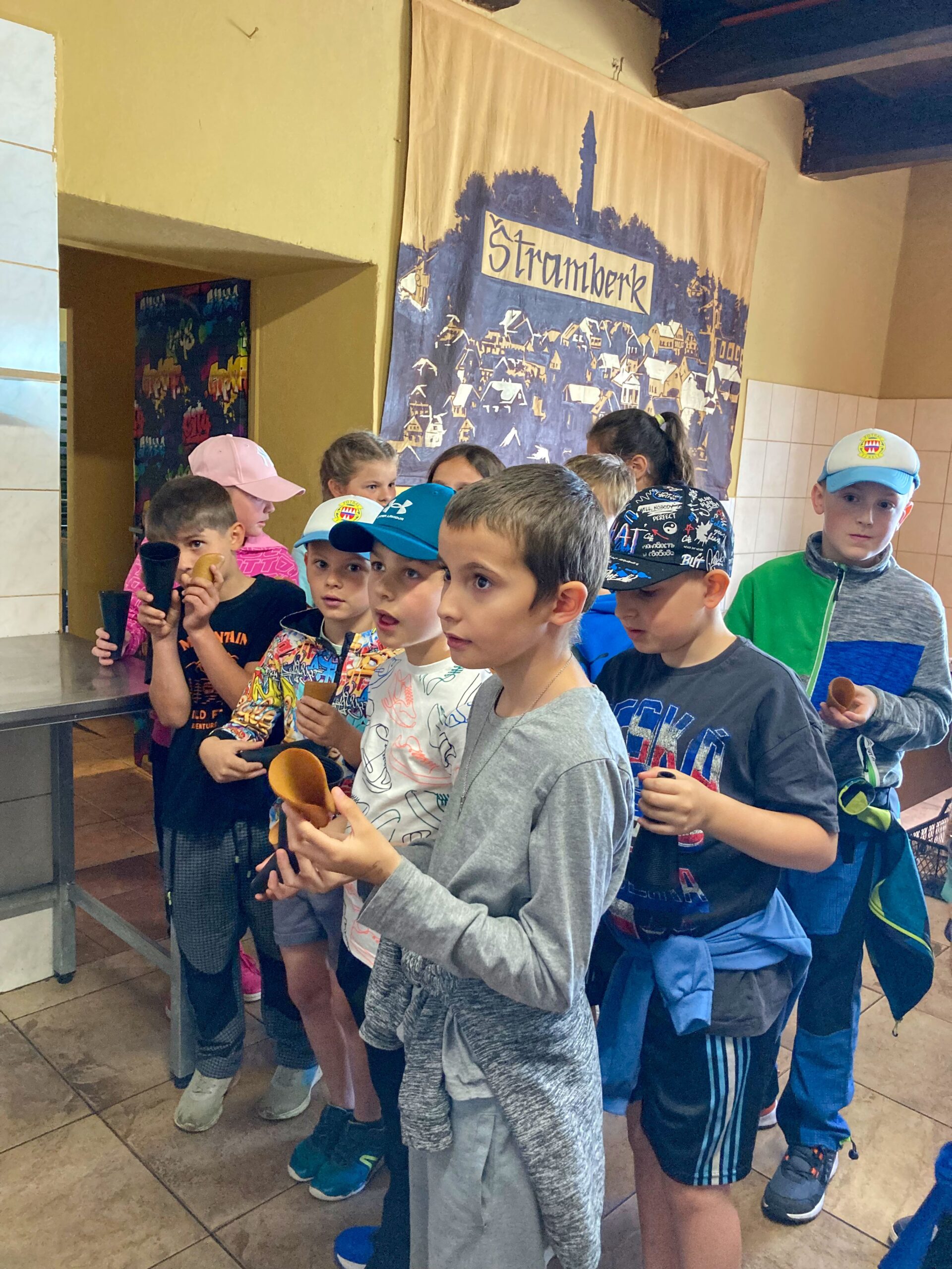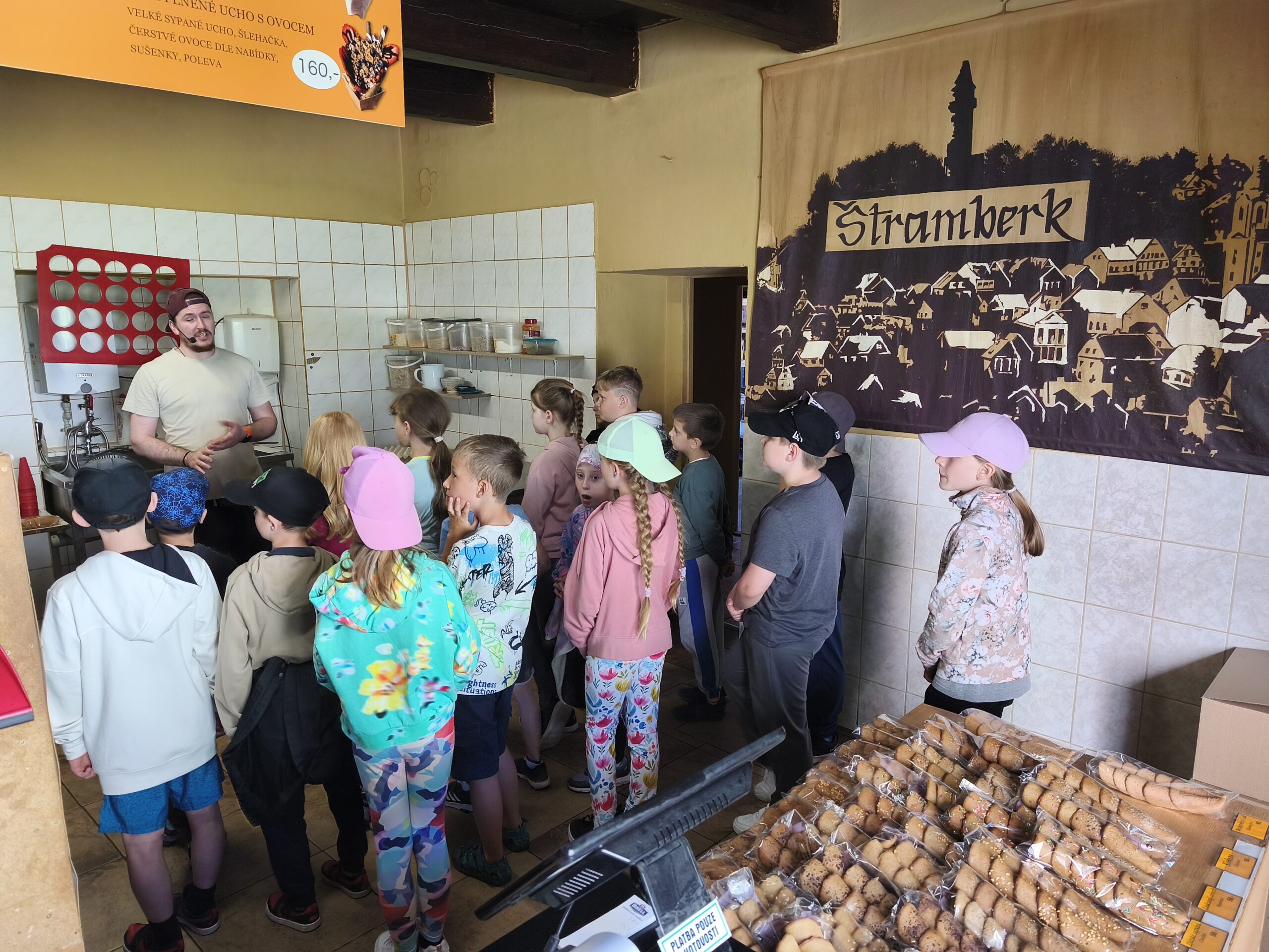 V úterý 27. 5. 2025 jsme se s třeťáky vydali na školní výlet do Štramberk. Byl to výlet plný zážitků! Nejprve jsme navštívili minizoo s plazy a obojživelníky, kde se děti dozvěděly spoustu zajímavostí o těchto fascinujících tvorech. Poté si v místní pekárně vlastnoručně upekly tradiční štramberské ucho a samozřejmě si na něm pochutnaly. Následovala návštěva Muzea Zdeňka Buriana, kde jsme obdivovali jeho nádherné ilustrace. Společně jsme vyšlapali na věž Štramberská Trúba s krásným výhledem na okolí a zavítali také do jeskyně Šipka, kde děti viděly doopravdického neandrtálského človíčka. Výlet jsme zakončili rozchodem na náměstí, kde si děti mohly nakoupit své vysněné suvenýry. Byl to den plný dobrodružství, radosti i nových poznatků!