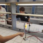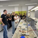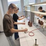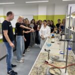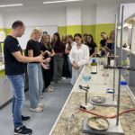 Dne 10.10.2025 se žáci 9. ročníku zapojili na SPŠ v Hranicích do projektového dne věnovaného chemii. Pracovali ve dvou skupinách a postupně navštívili a pracovali ve dvou laboratořích. V jedné laboratoři mohli shlédnout spoustu efektních pokusů, které jim předvedli studenti SPŠ oboru Aplikovaná chemie. Mezi tyto pokusy patřily např. Peklo ve zkumavce, čpavkový vodotrysk, zlatý déšť, sloní zubní pasta a další. Ve druhé laboratoři si mohli naši žáci sami vyzkoušet ohýbání skleněných tyčinek, barvení plamene kationty alkalických kovů a kovů alkalických zemin a psaní tajným inkoustem.