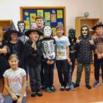 V posledních říjnových hodinách angličtiny jsme si užili halloweenskou atmosféru – přišli jsme v kostýmech, hráli spoustu her a soutěží, tančili na strašidelné písničky, pojídali různé halloweenské dobroty a plnili úkoly v angličtině. Povídali jsme si o tom, kde Halloween vznikl a jak se slaví v anglicky mluvících zemích. Seznámili jsme se se základní slovní zásobou spojenou s touto tématikou. Porovnali jsme ho s našimi svátky v ČR – Slavností Všech svatých a Dušičkami.
