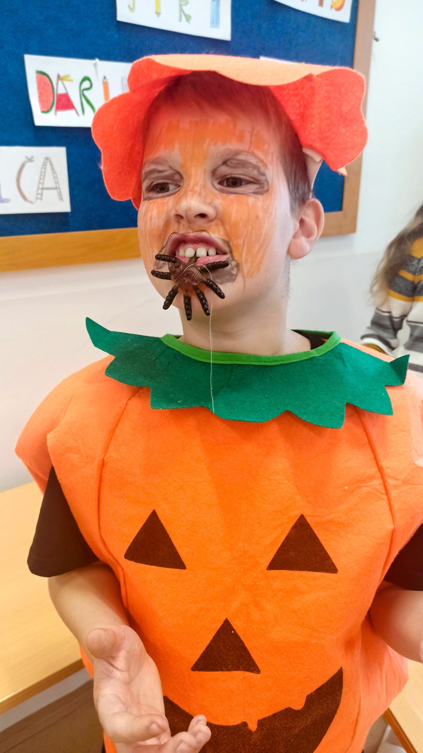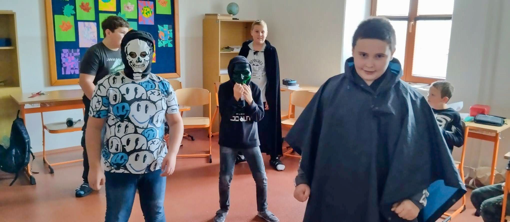 V posledních říjnových hodinách angličtiny jsme si užili halloweenskou atmosféru – přišli jsme v kostýmech, hráli spoustu her a soutěží, tančili na strašidelné písničky, pojídali různé halloweenské dobroty a plnili úkoly v angličtině. Povídali jsme si o tom, kde Halloween vznikl a jak se slaví v anglicky mluvících zemích. Seznámili jsme se se základní slovní zásobou spojenou s touto tématikou. Porovnali jsme ho s našimi svátky v ČR – Slavností Všech svatých a Dušičkami.