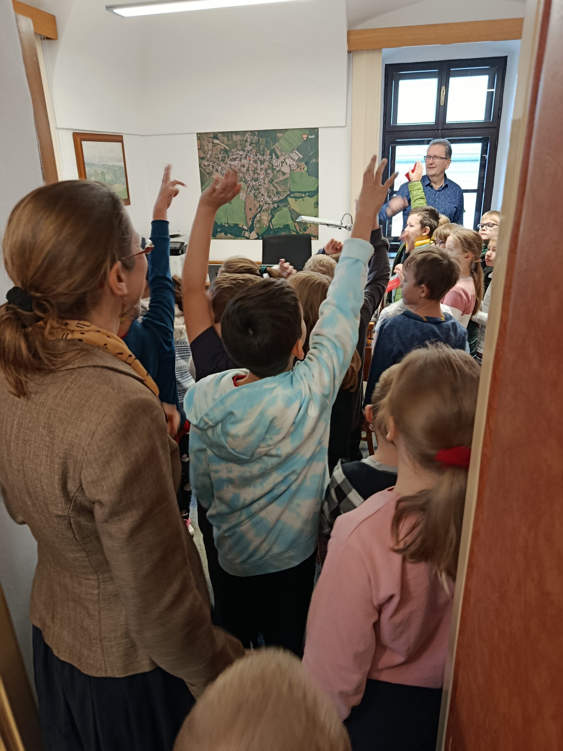 Projet byl zakončen návštěvou Obecního úřadu, kde žáky přivítal a osobně provedl pan starosta Ing. Karel David. Děti si prohlédly kanceláře úřadu, poznaly jeho fungování a měly možnost klást vlastní otázky. Na závěr obdržely každý malý dárek.