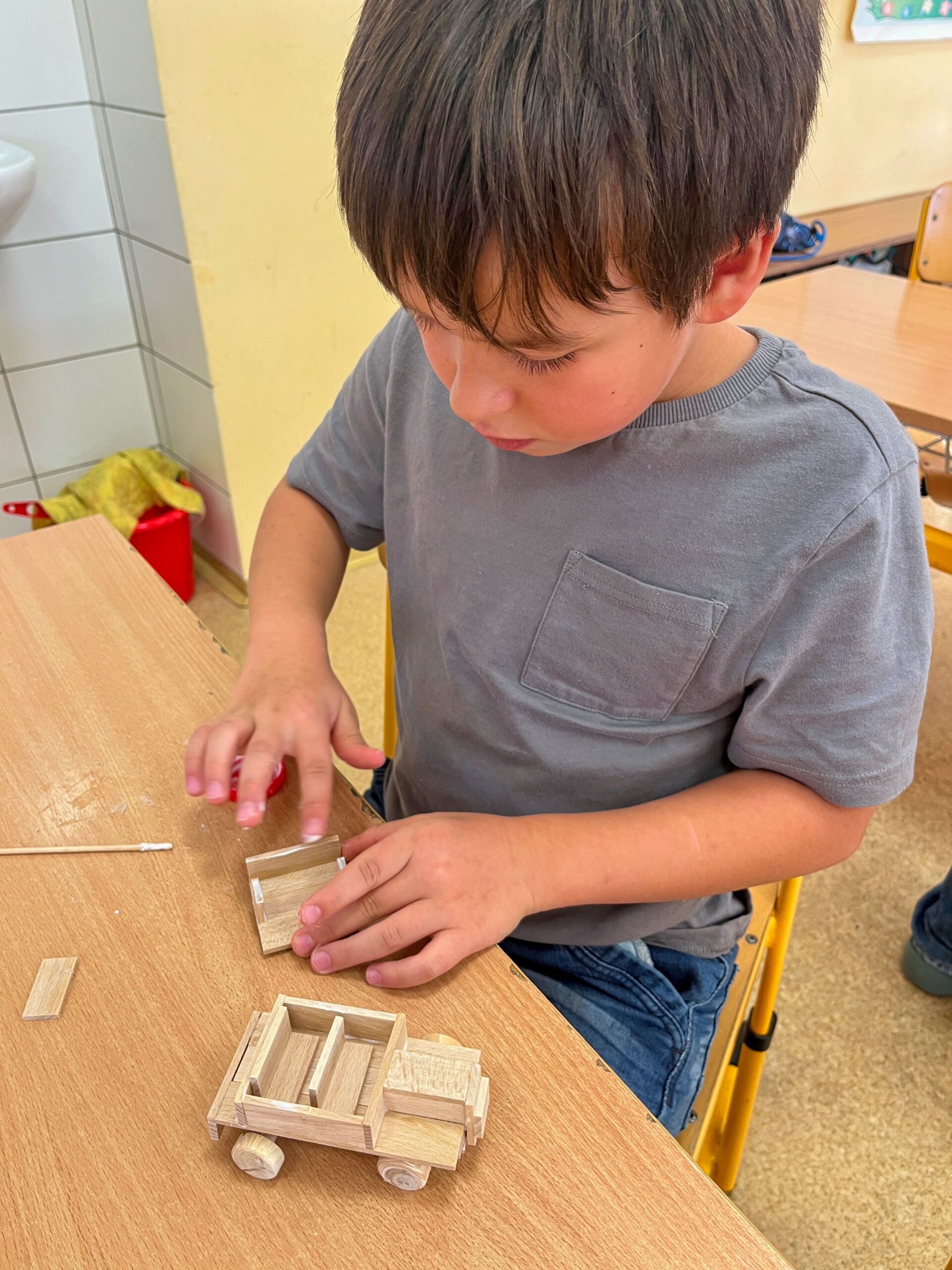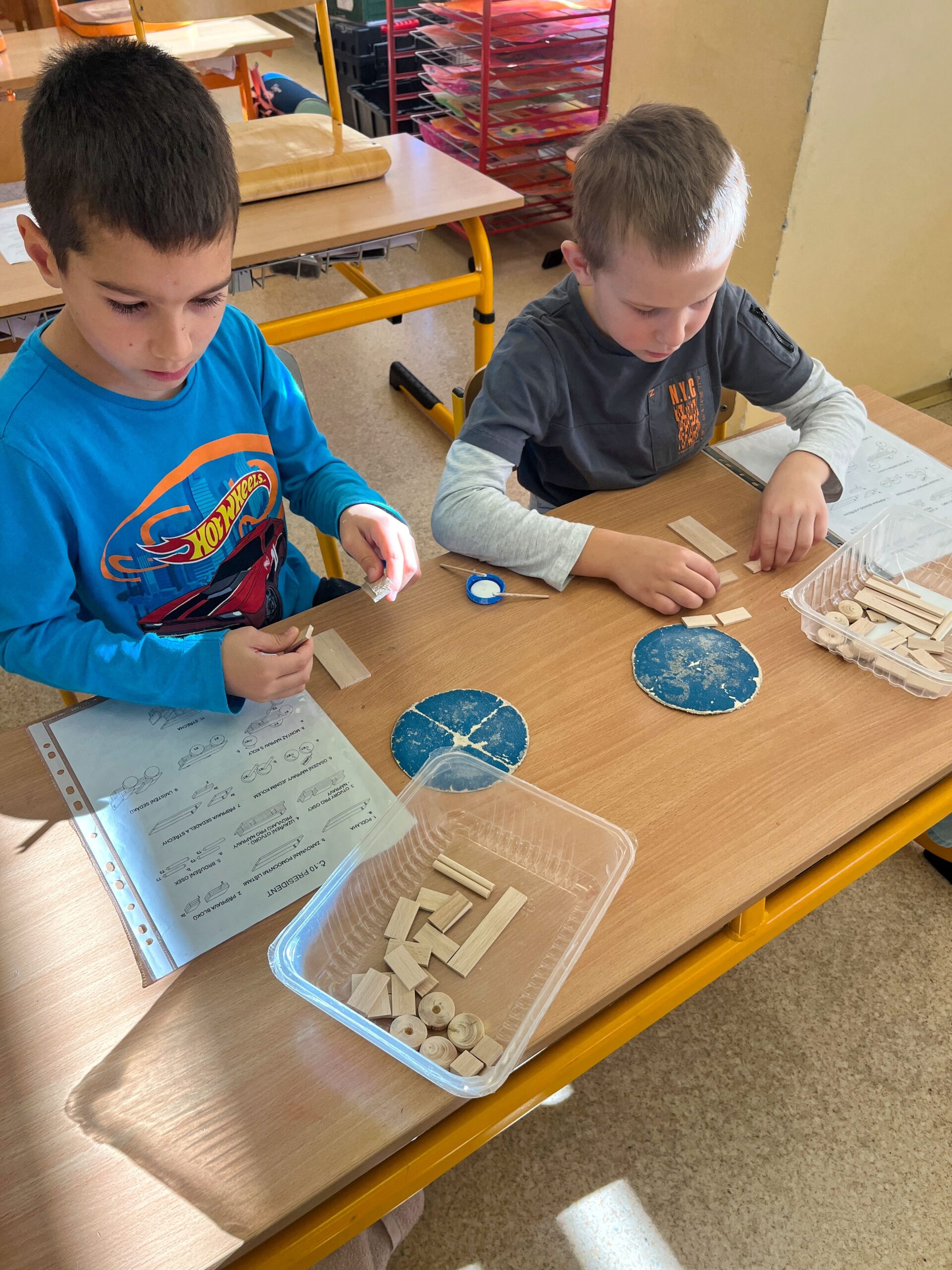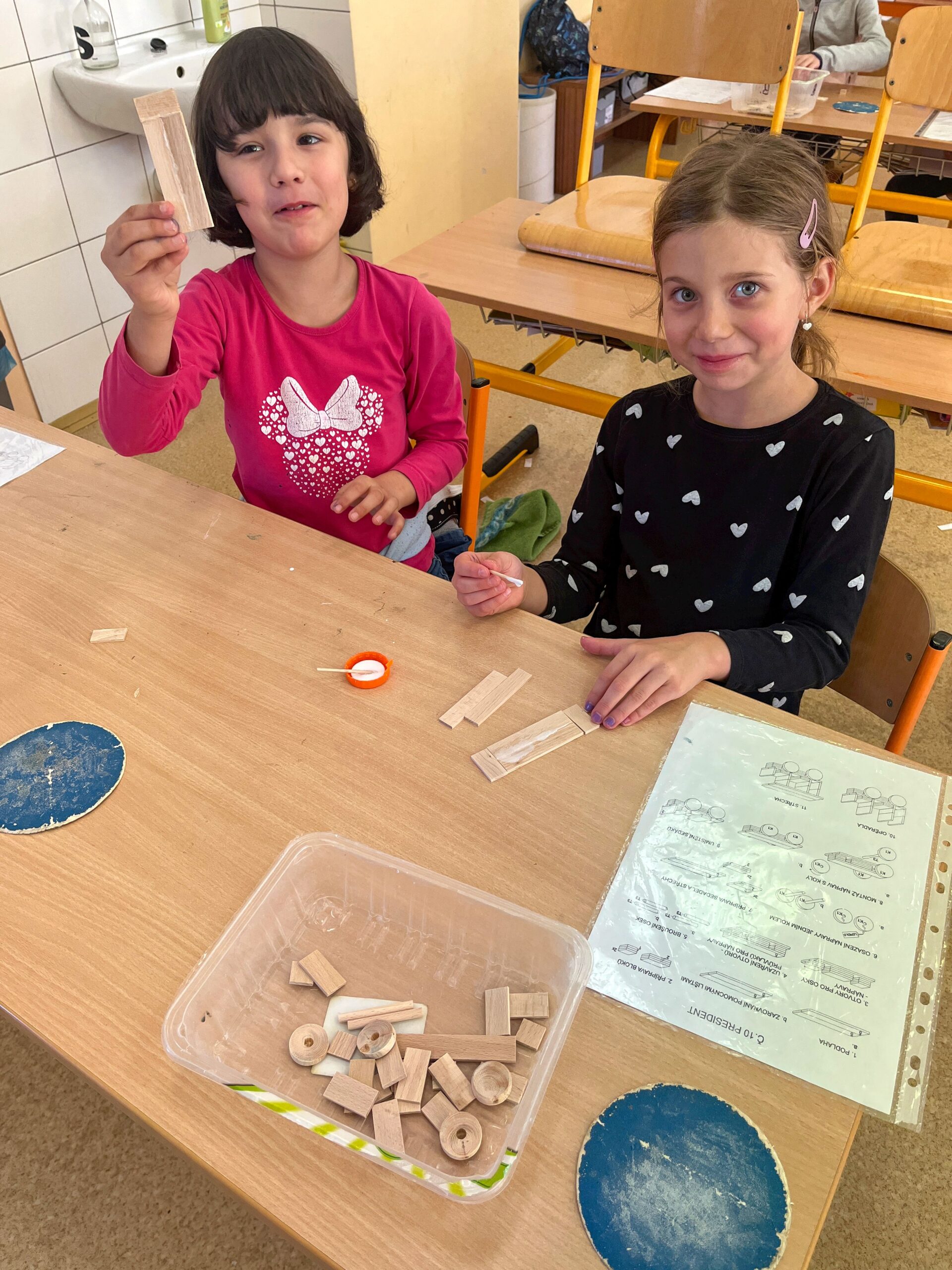 Prostřednictvím práce s plánkem a dřevem žáci procvičují prostorovou orientaci, učí se číst v návodu, dodržovat přesný postup, být trpěliví, pečliví, trénují také jemnou motoriku. Každý nakonec nelehký úkol zvládl a svůj slepený model auta President nebo Bugatka si hrdě odnesl domů.