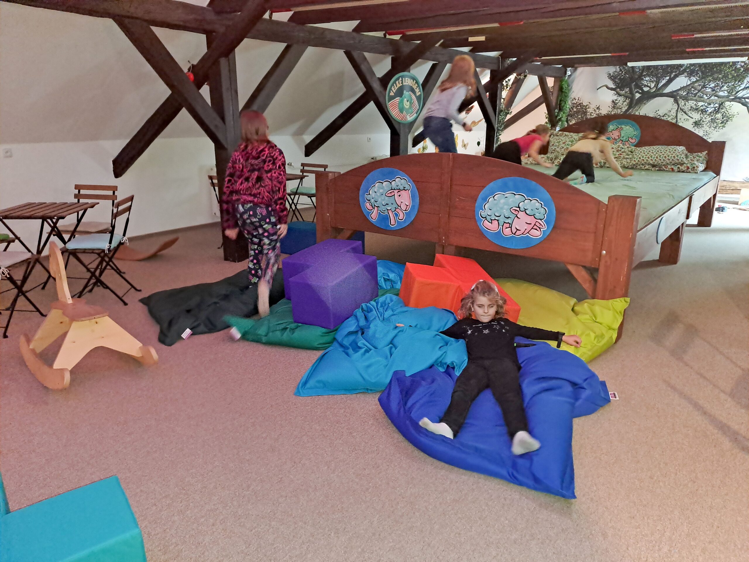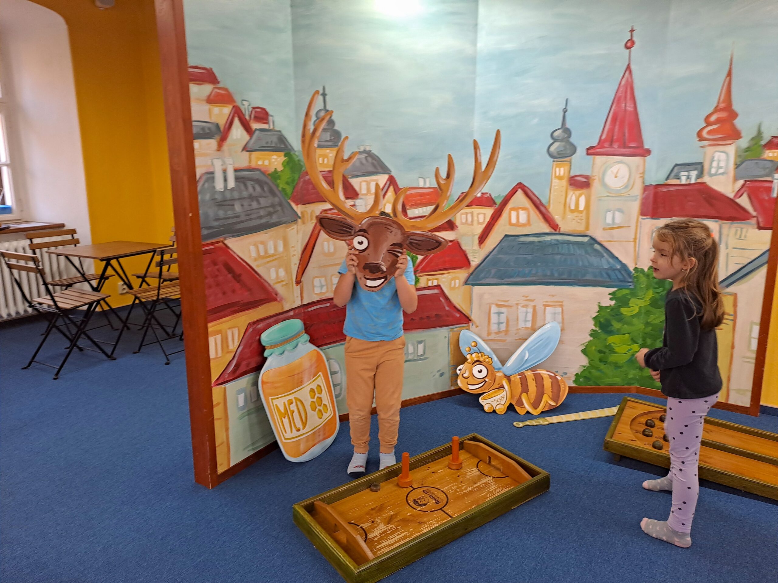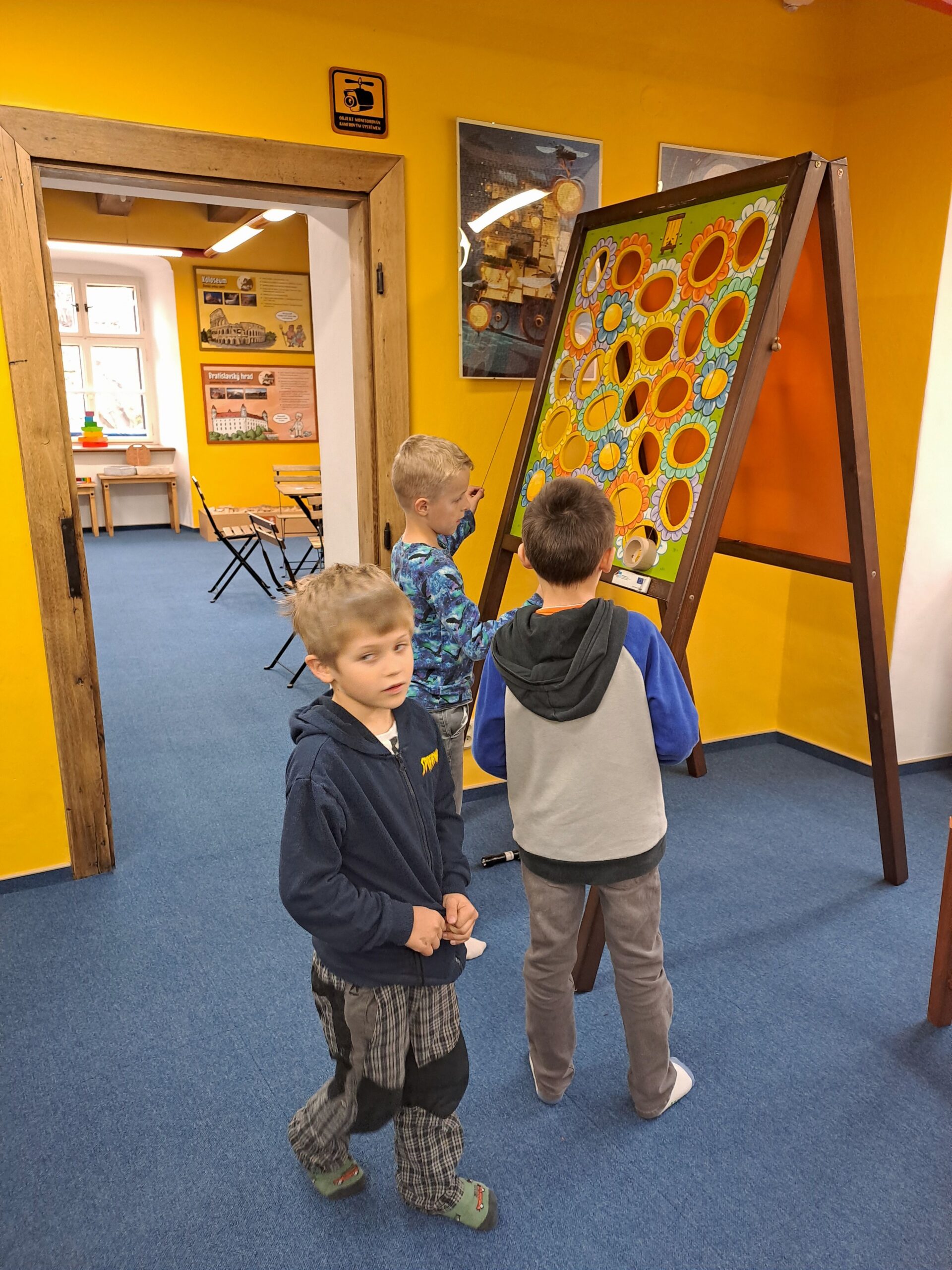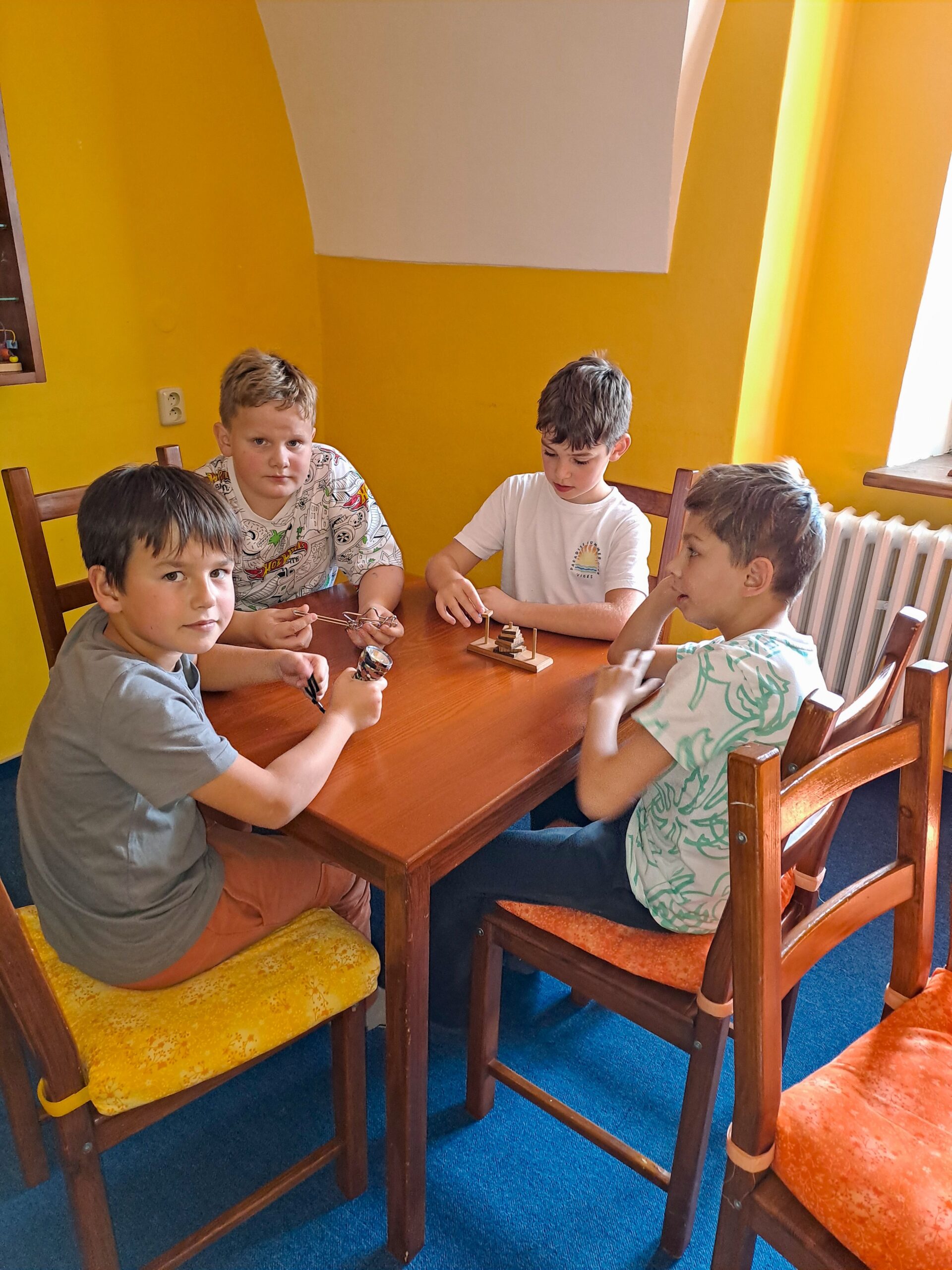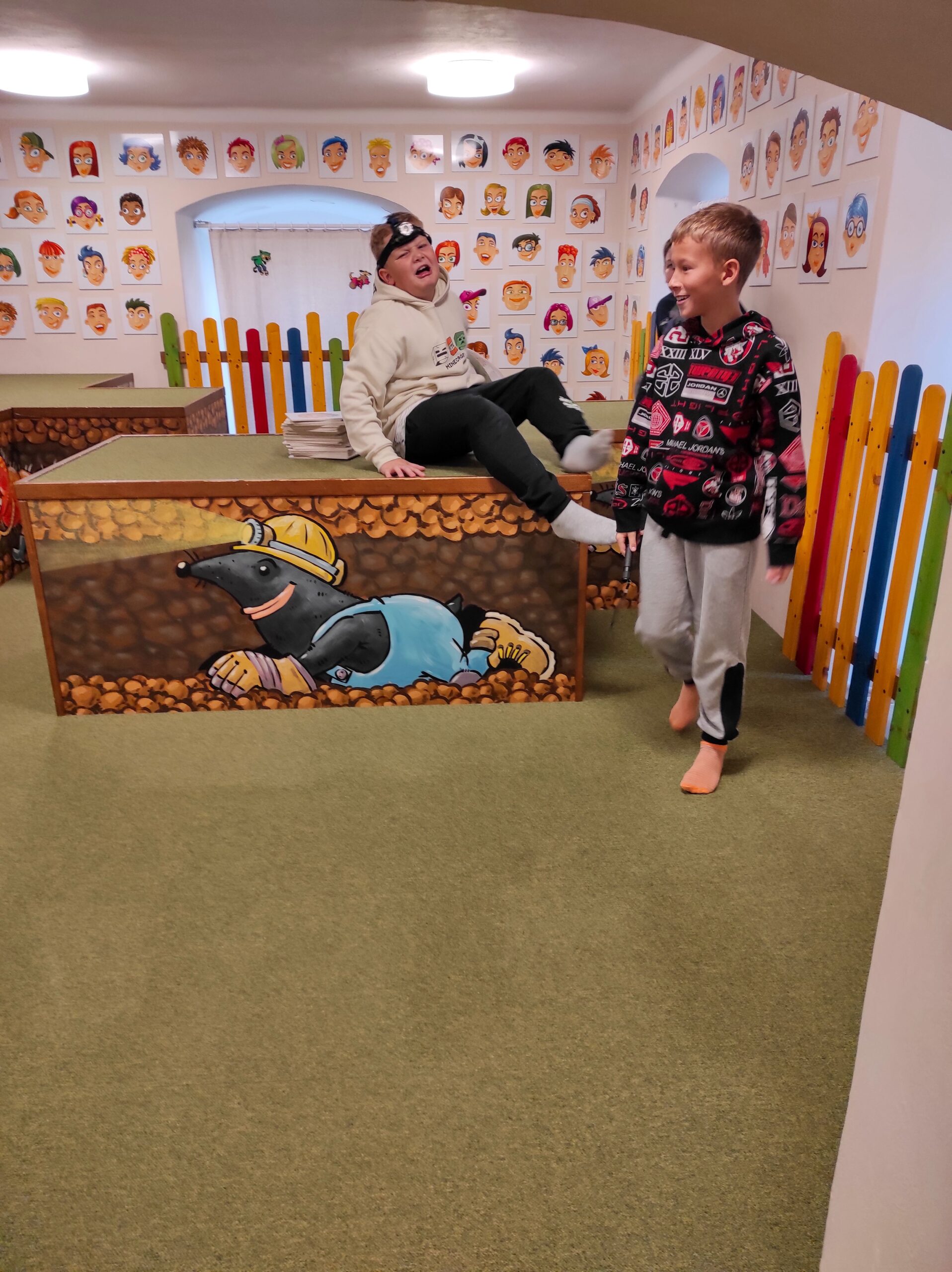 Po příjezdu do Vrtule se děti rozběhly po dvoupatrové budově, kde v každém patře měly k dispozici spoustu různých schovávaček, logických a zábavných her a také za pomoci baterky mohly prolézt tmavým komínem a krtkovým bludištěm. Možností bylo spoustu a proto nevěděly, co vyzkoušet jako první. Přebíhaly z jednoho patra do druhého a nechtěly žádnou hru vynechat. Všechno je zajímalo a vše si chtěly vyzkoušet. Zábavné odpoledne jsme zakončili společnou fotkou, drobným dárečkem a sladkostí. Děti si odpoledne ve Světě her a poznání moc užily.