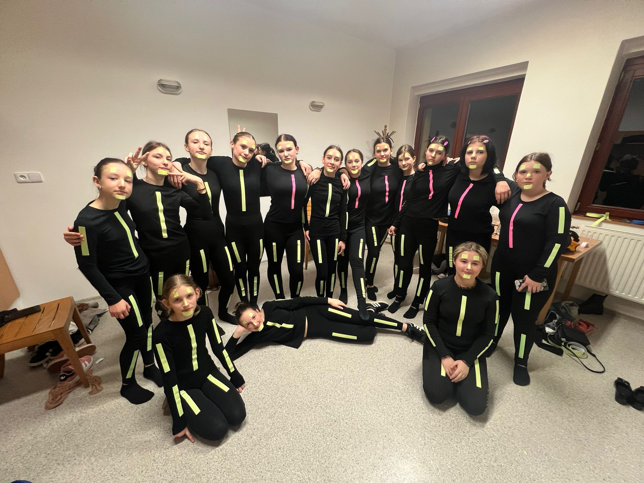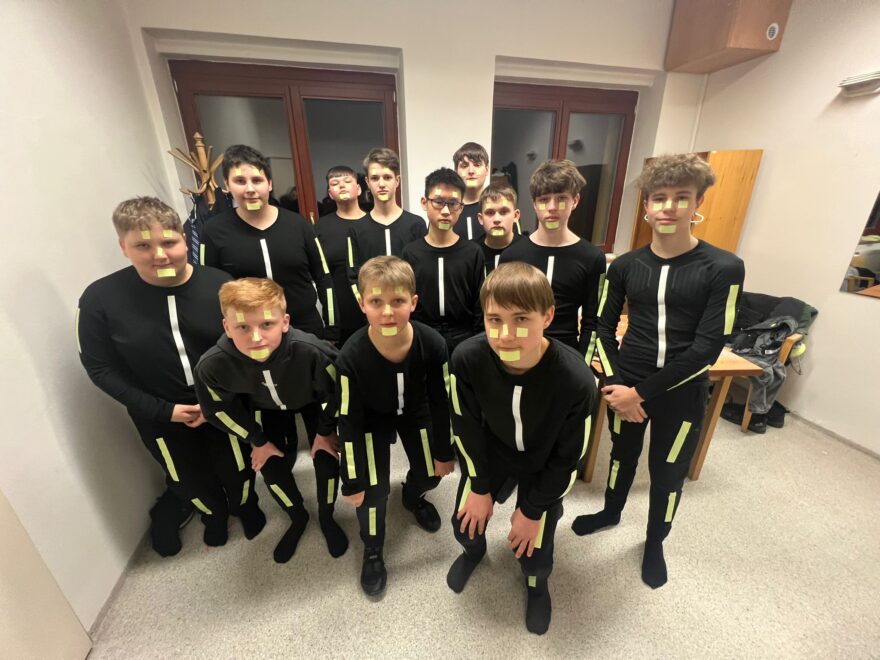 Již tradičně obohatili program plesu Sdružení rodičů žáci sedmého ročníku, kteří jako odměnu dostali příspěvek na lyžařský kurz v hodnotě 1 500 Kč. Letos byla na sále během tanečních vystoupení čtyř skupinek úplná tma. Zářilo jen oblečení vystupujících polepené speciální svítící páskou. Choreografii si skupinky vytvořily samy, nebo vzniklo jako společné dílo žáků a paní učitelek Kateřiny Machačové a Michaely Davidové. Byť byli všichni zúčastnění hodně nervózní, zda se vystoupení povedou, všechno dobře dopadlo a tímto předáváme pomyslné žezlo dál letošním šesťákům.