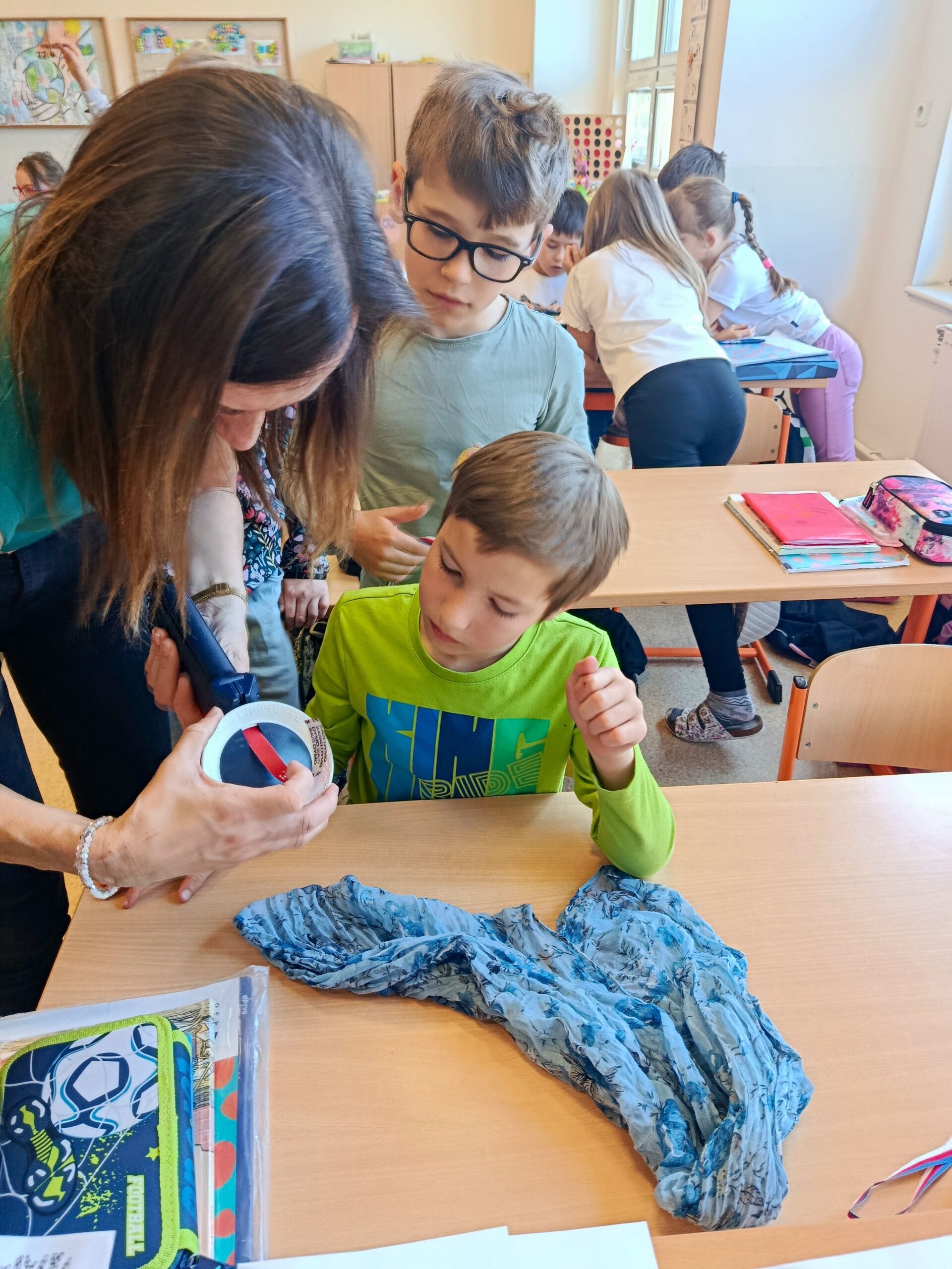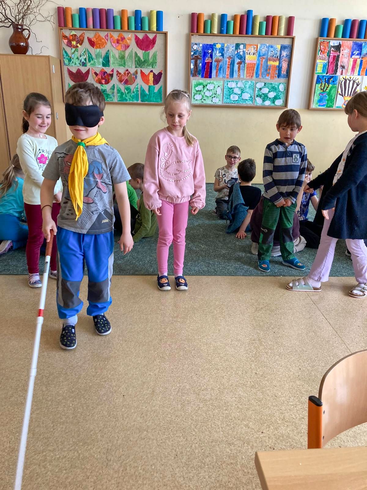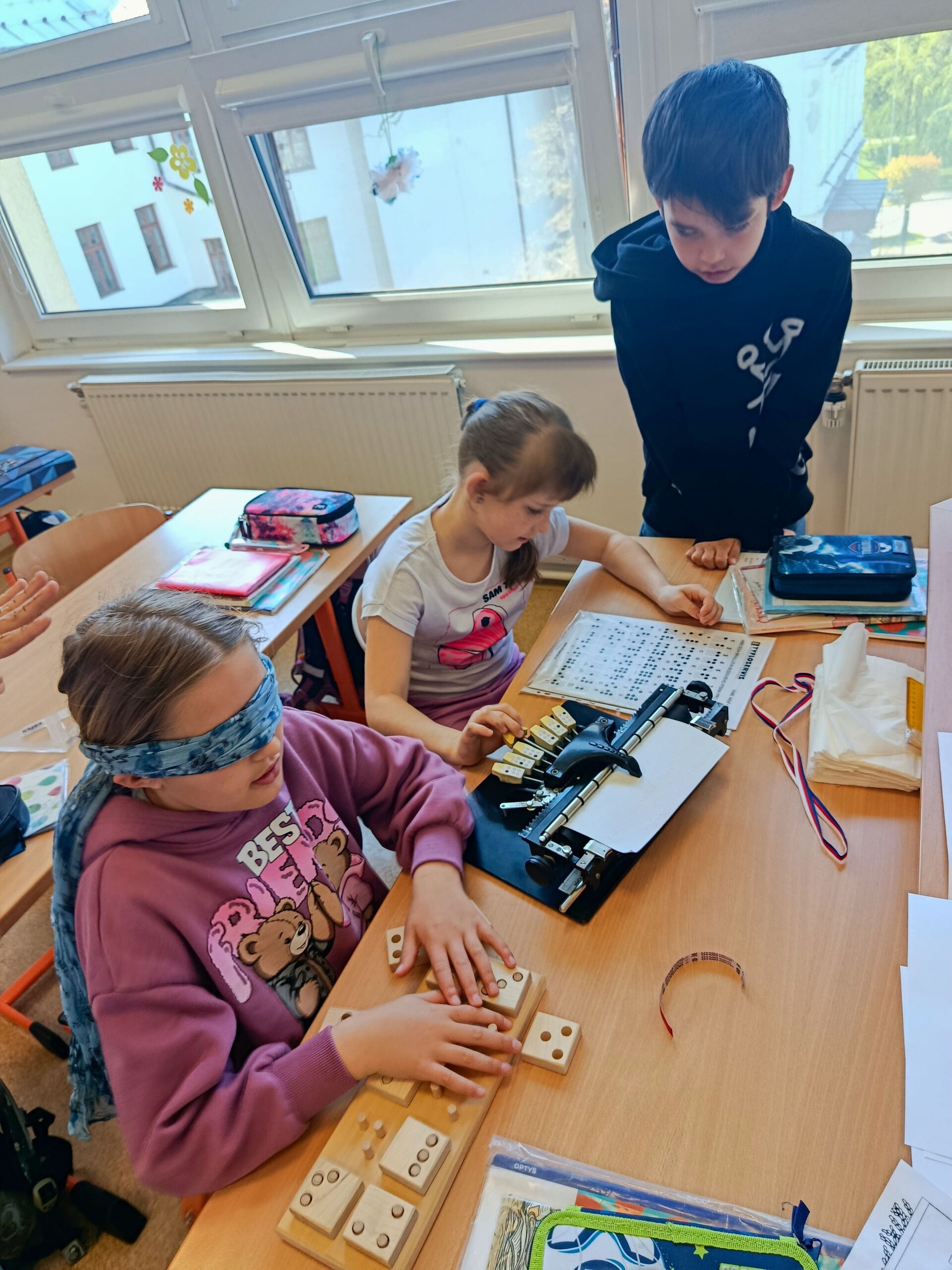 V pátek 24. 4. 2026 proběhla v 1., 2. a 3. třídě zážitková výuka zaměřená na život lidí se zrakovým postižením. Program vedla Mgr. Zdeňka Chvatíková, která dětem přiblížila svět nevidomých pomocí autentických pomůcek a praktických aktivit.