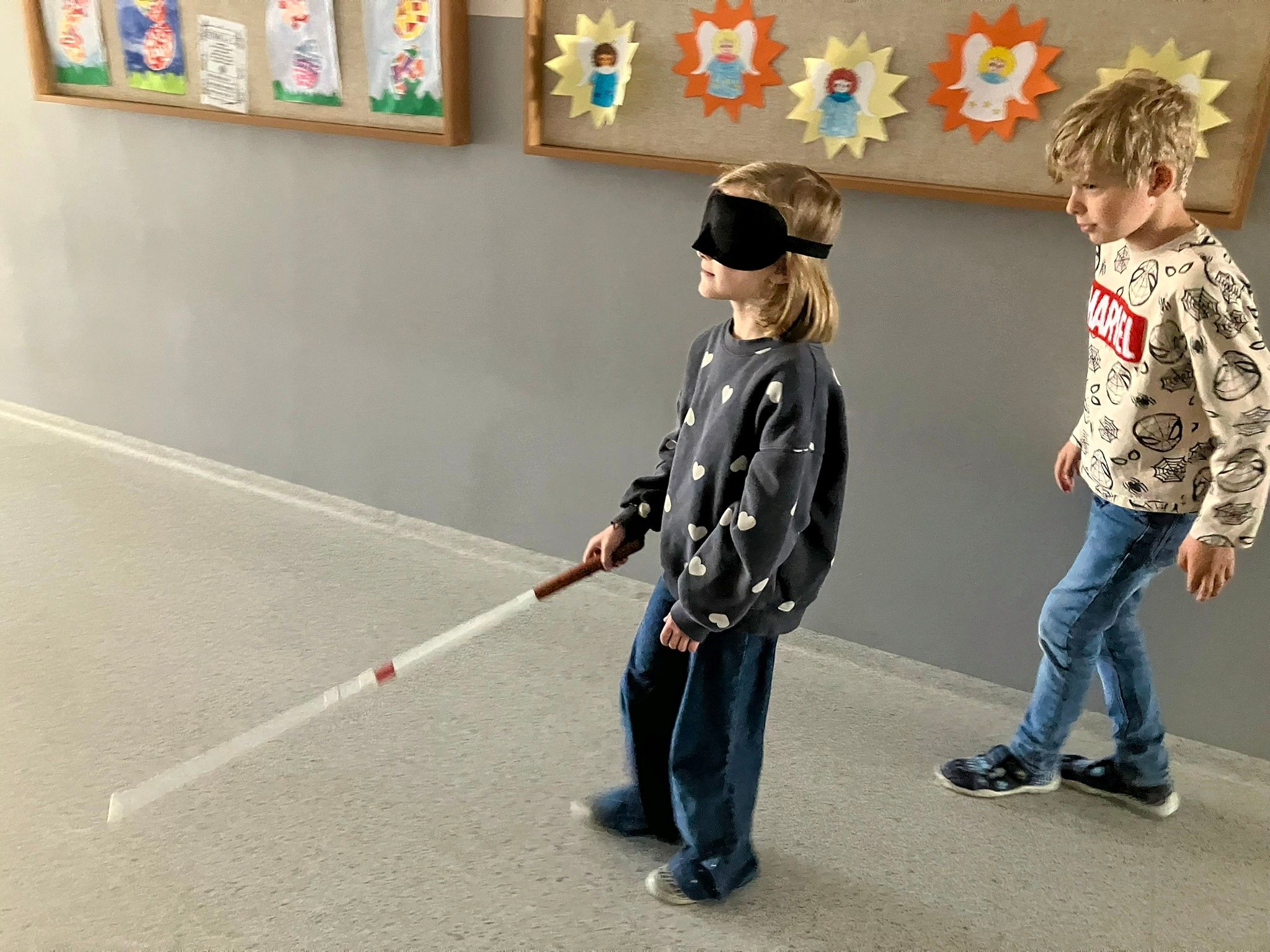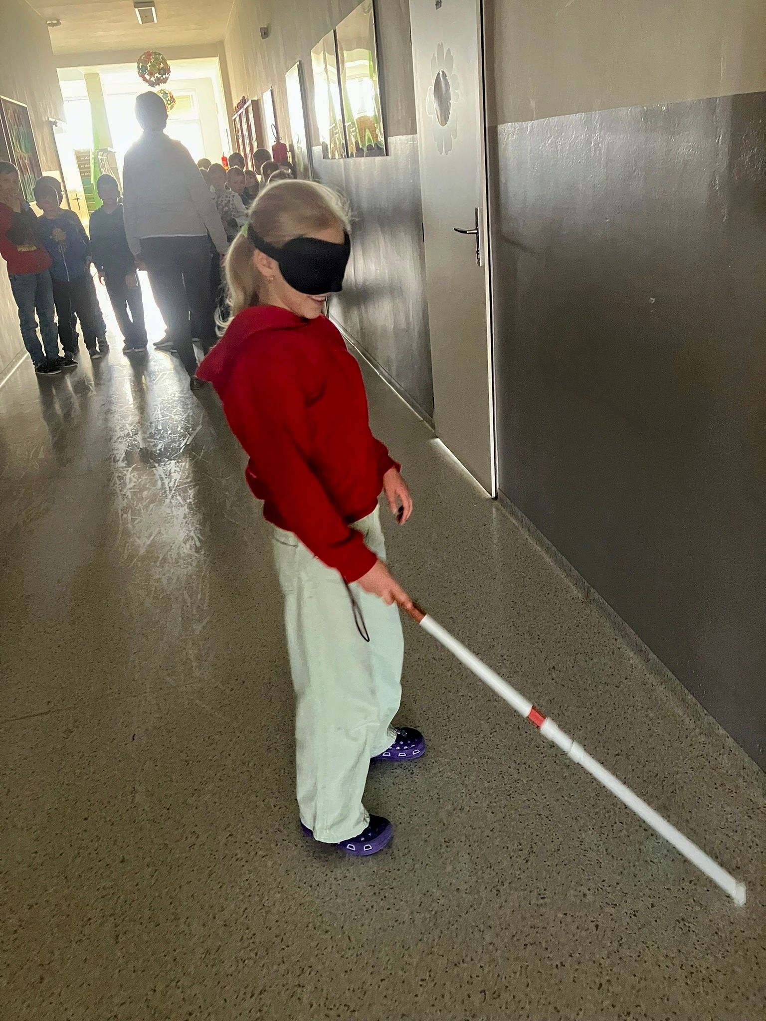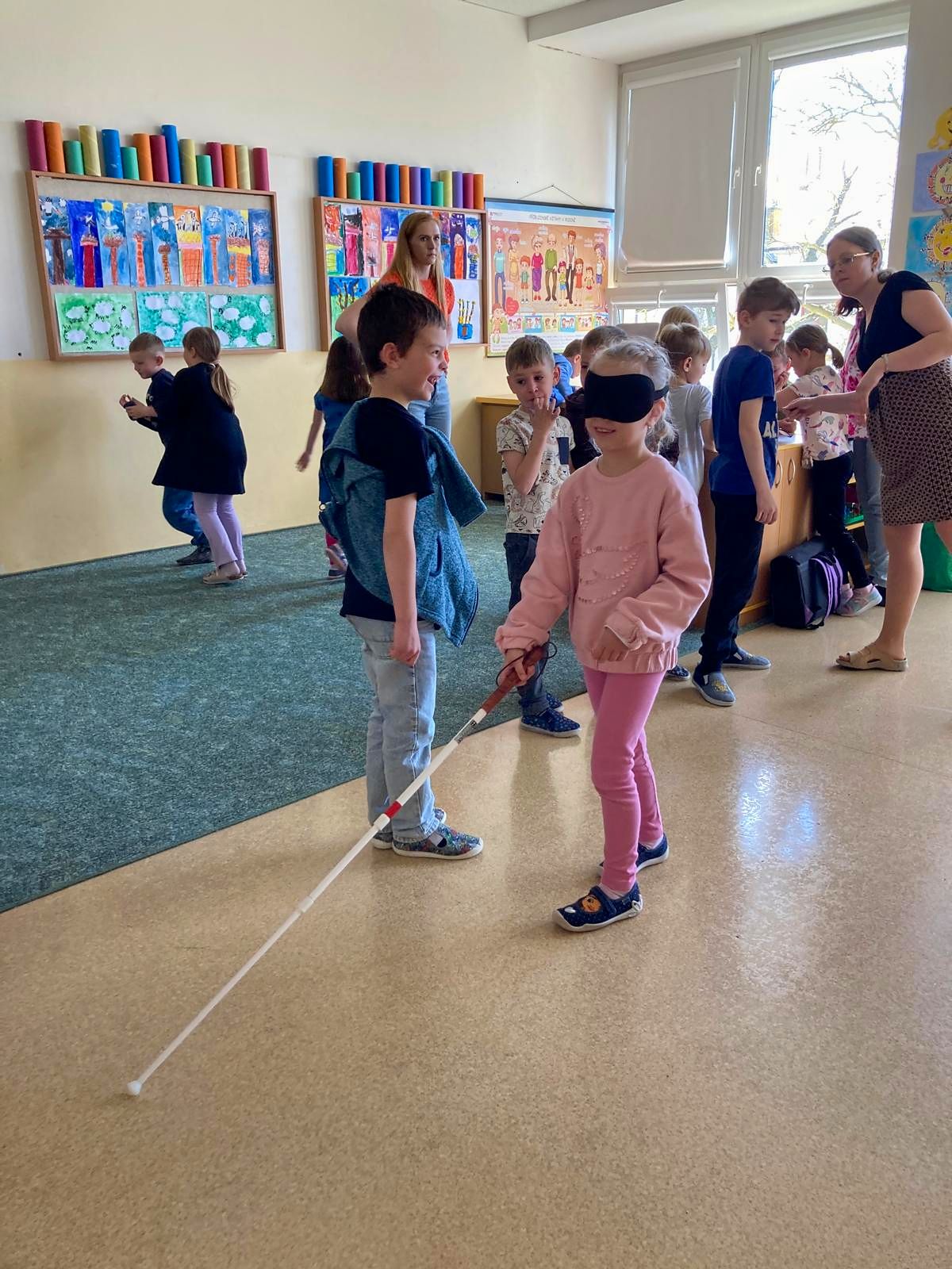 Žáci si vyzkoušeli chůzi s bílou holí, učili se, jak správně nabídnout pomoc nevidomému člověku, a zažili i svačinu v naprosté tmě. Seznámili se s Braillovým písmem, prohlédli si učebnice pro nevidomé, vyzkoušeli si speciální lupy i hry pro nevidomé a pomocí pomůcek i počítače si zkusili napsat své jméno.