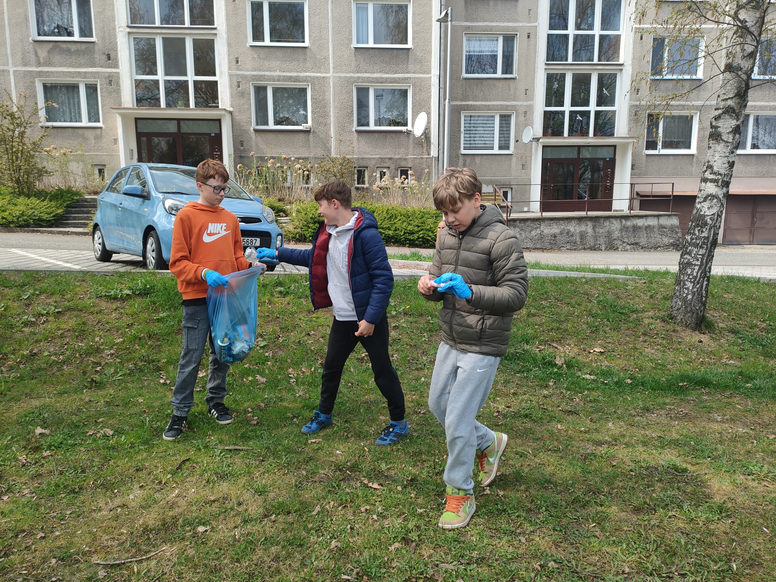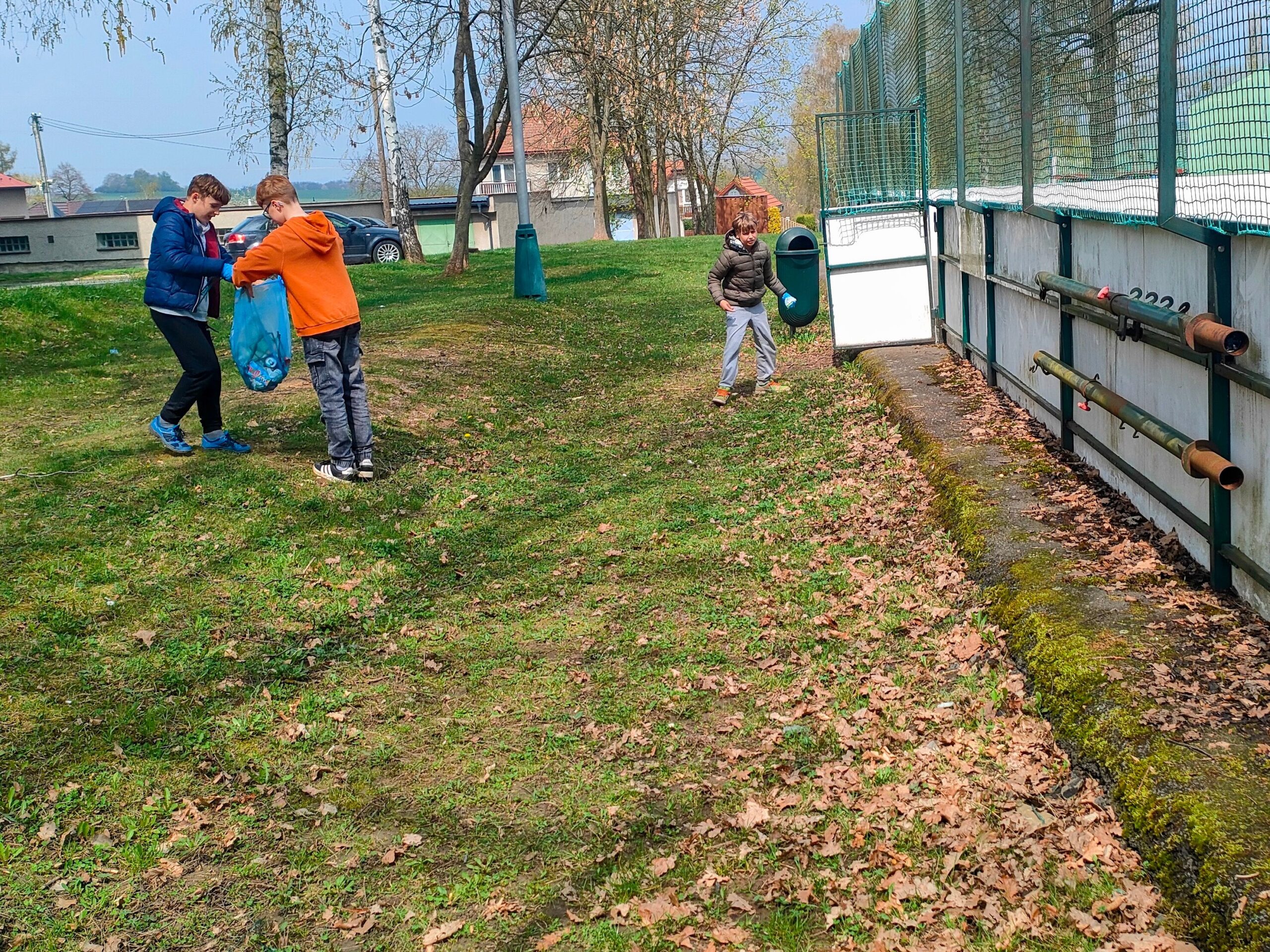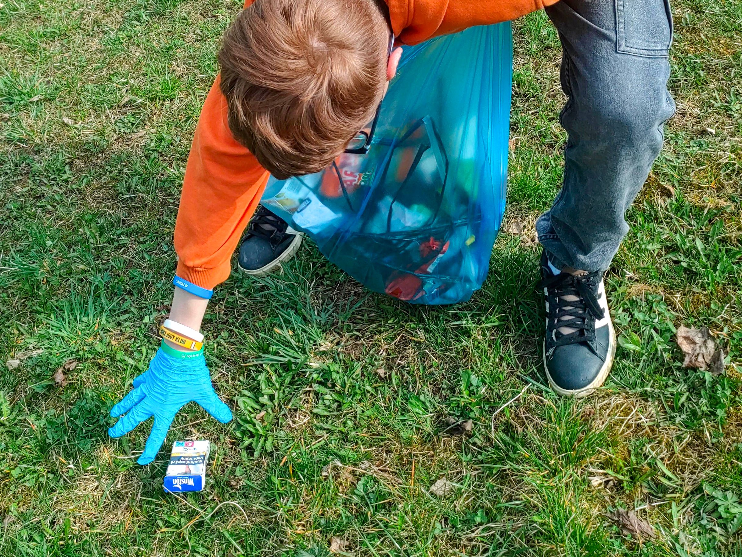 Každý dostal gumové rukavice a skupinky pytel do odpadkových košů. Když byly pytle plné, sesypávali jsme odpadky do 1 velkého černého odpadkového pytle. Myslíme, že se akce vydařila.
