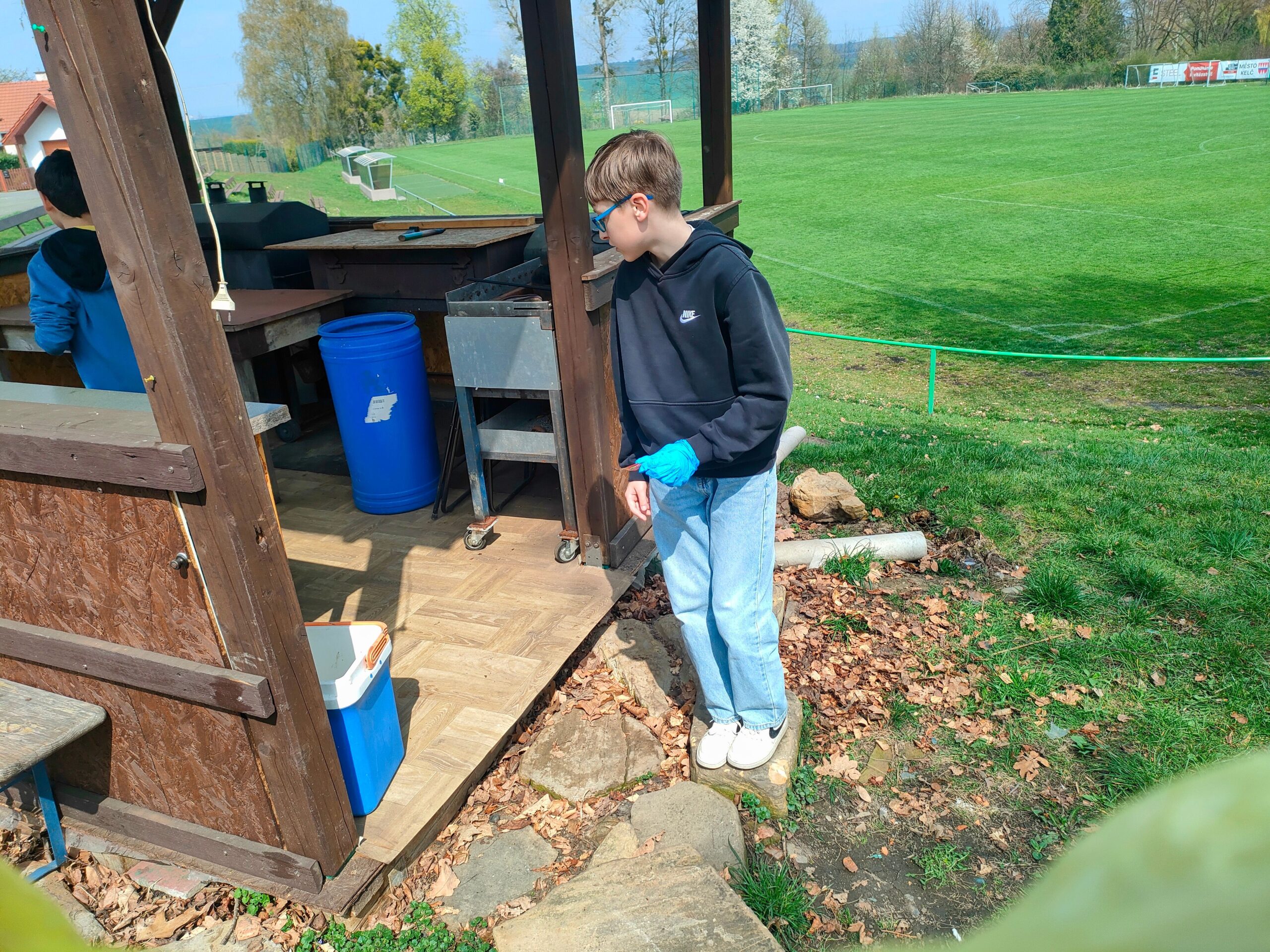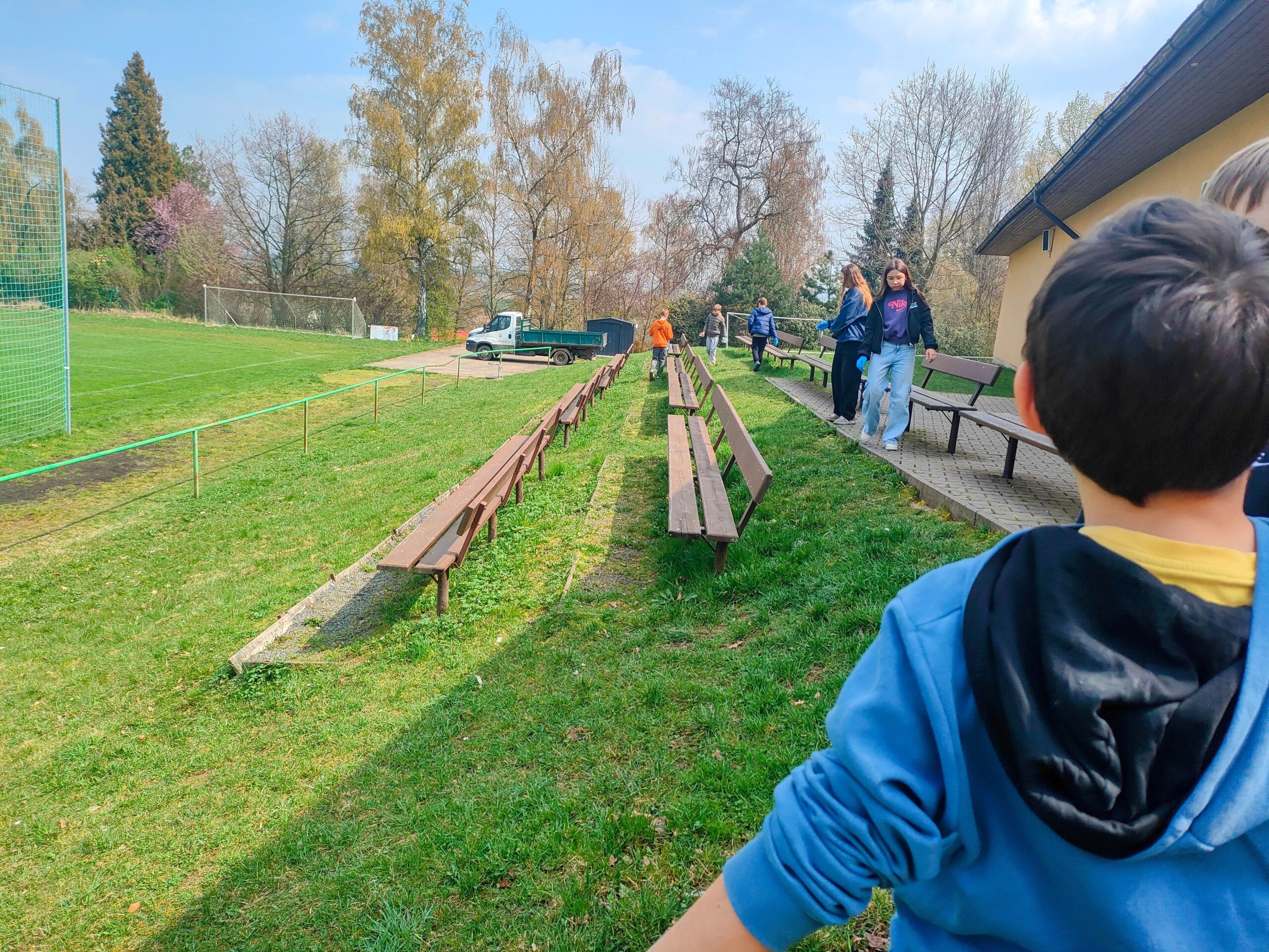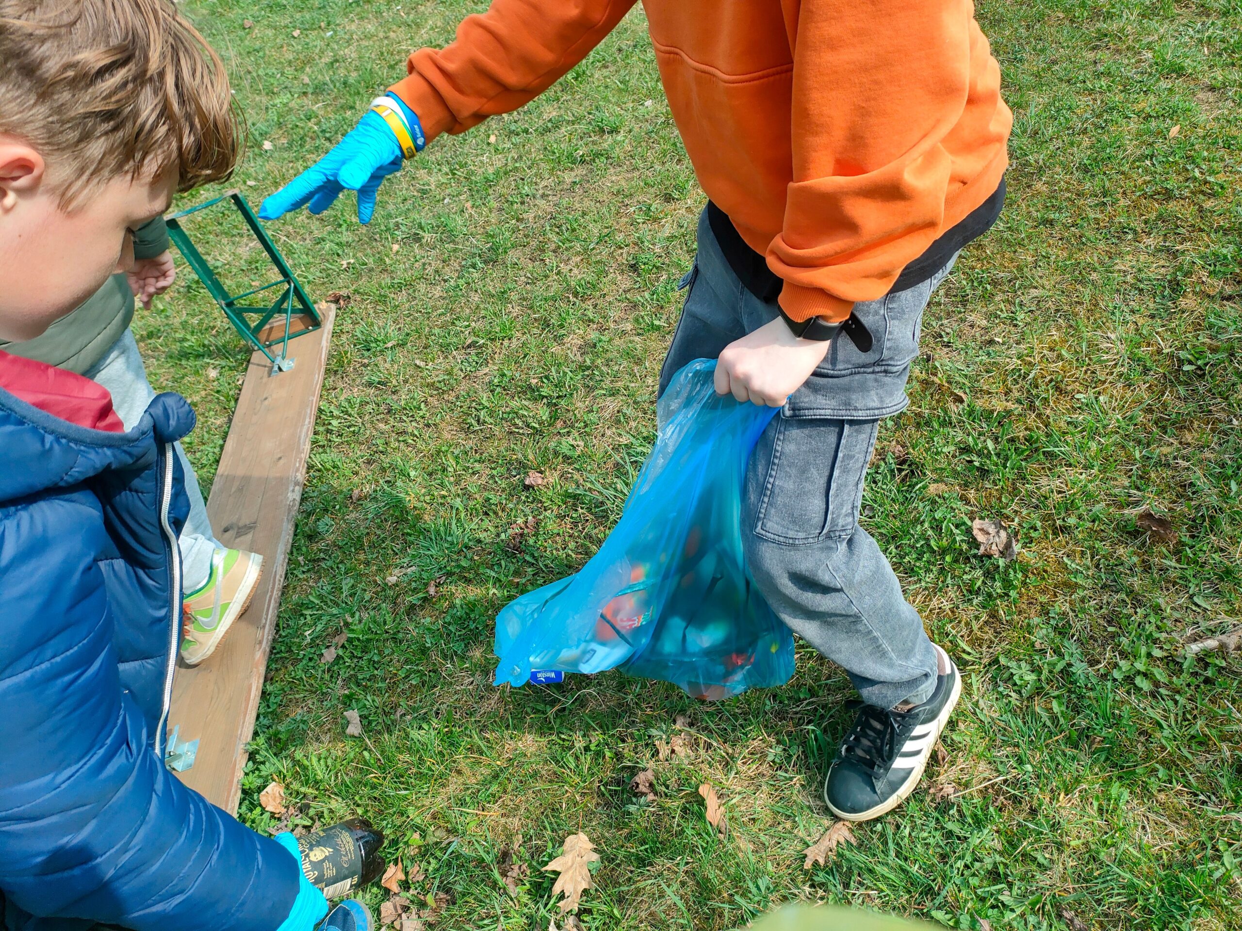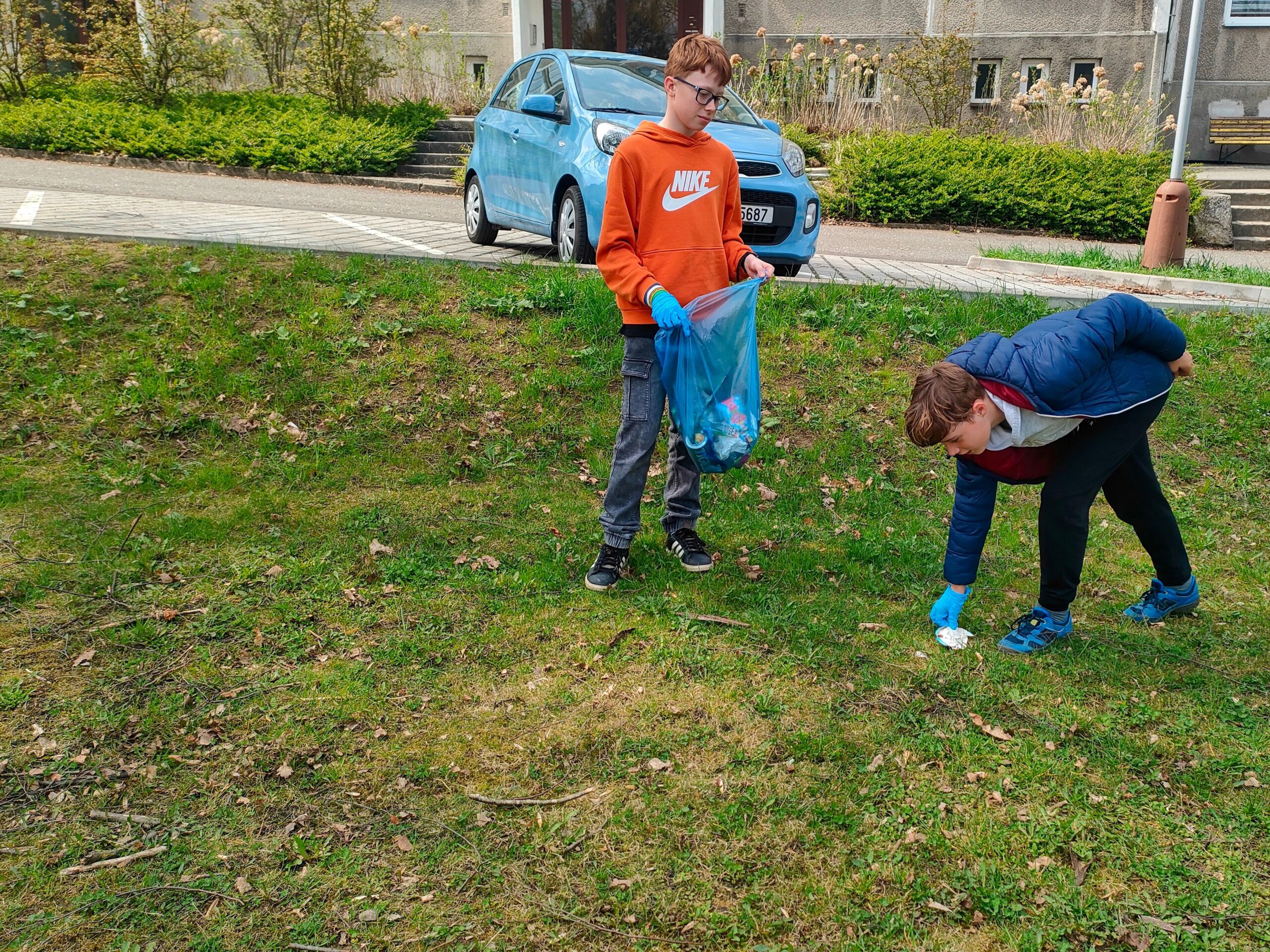 Každý dostal gumové rukavice a skupinky pytel do odpadkových košů. Když byly pytle plné, sesypávali jsme odpadky do 1 velkého černého odpadkového pytle. Myslíme, že se akce vydařila.