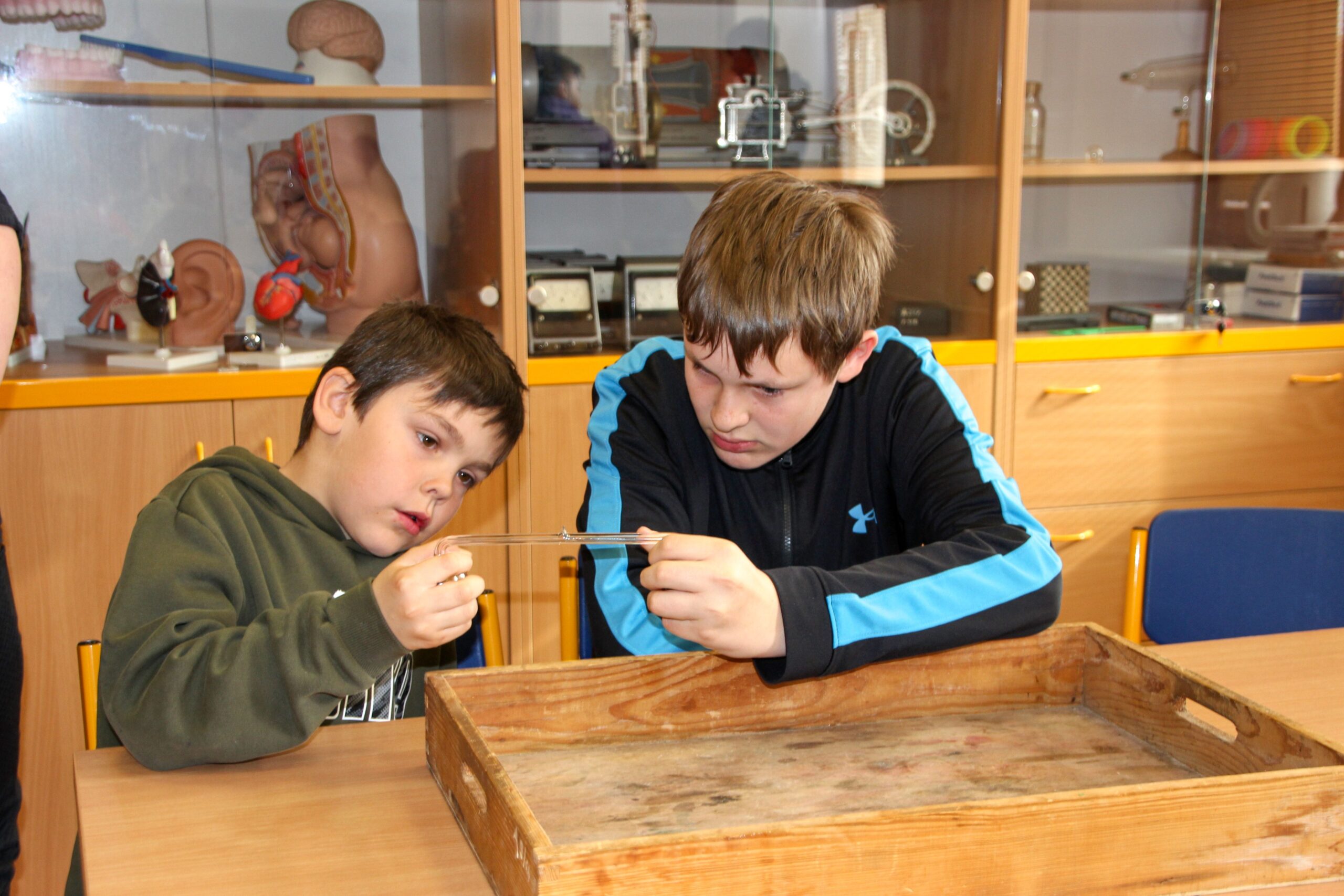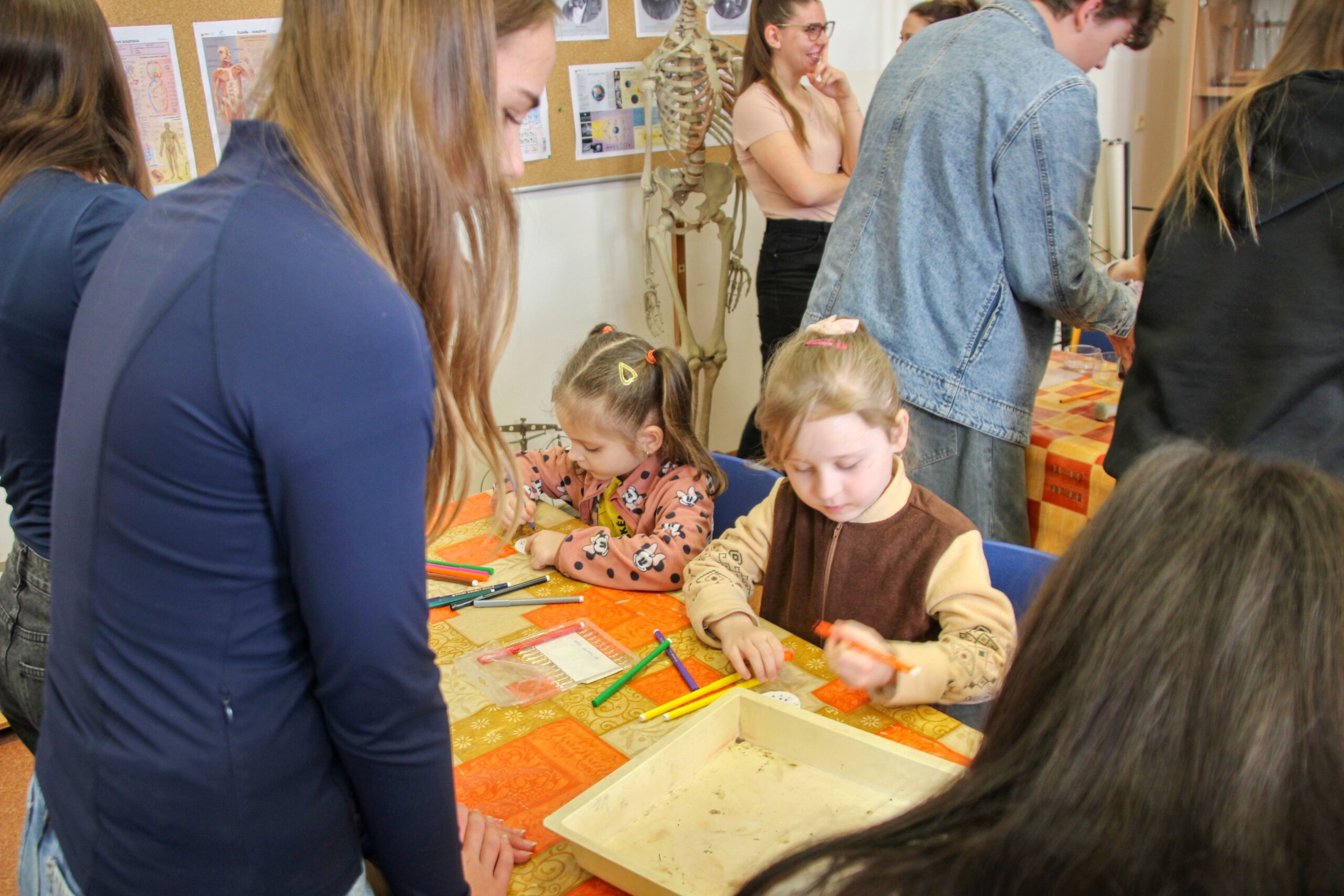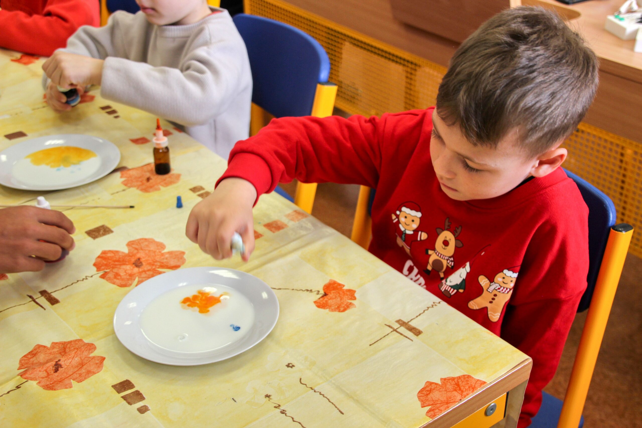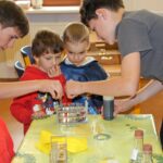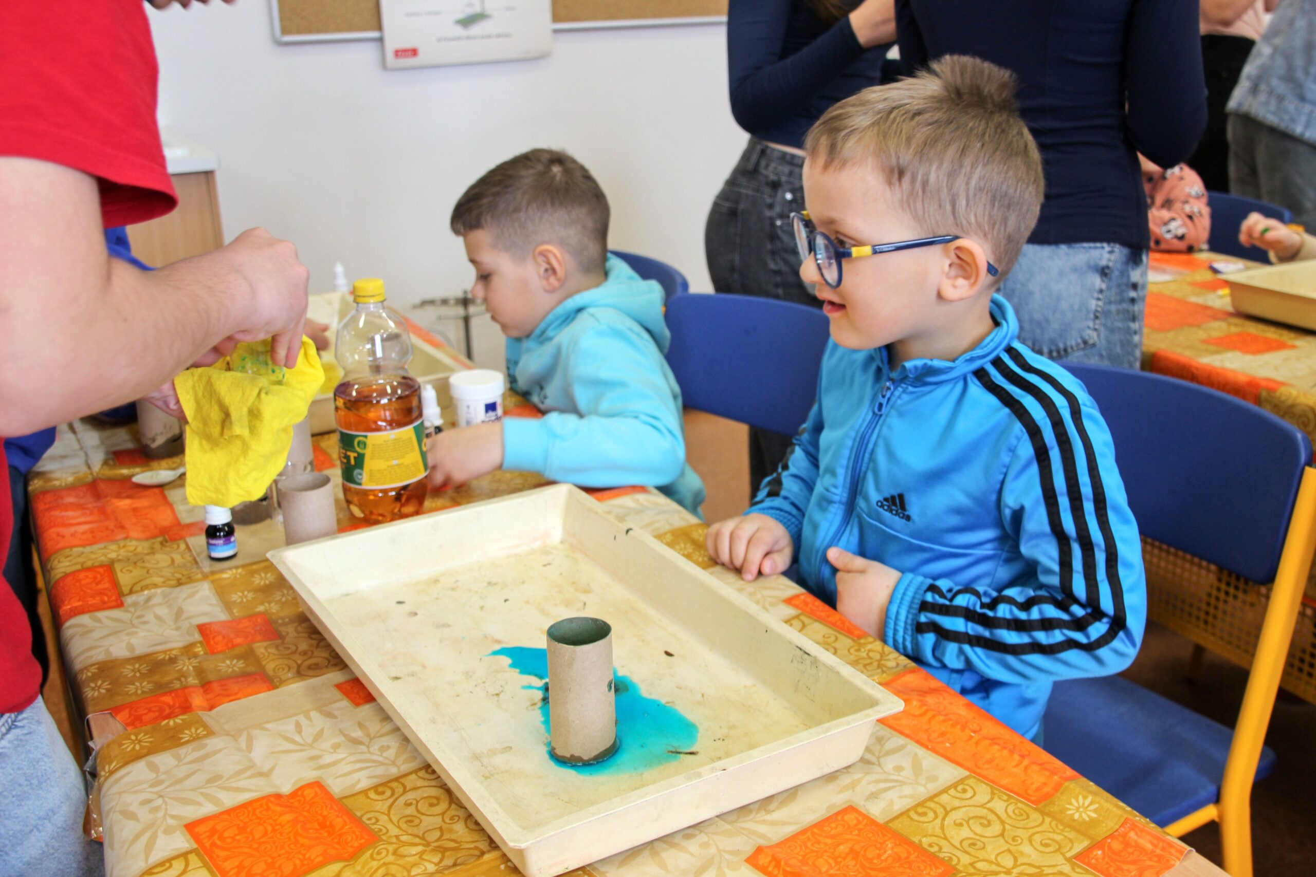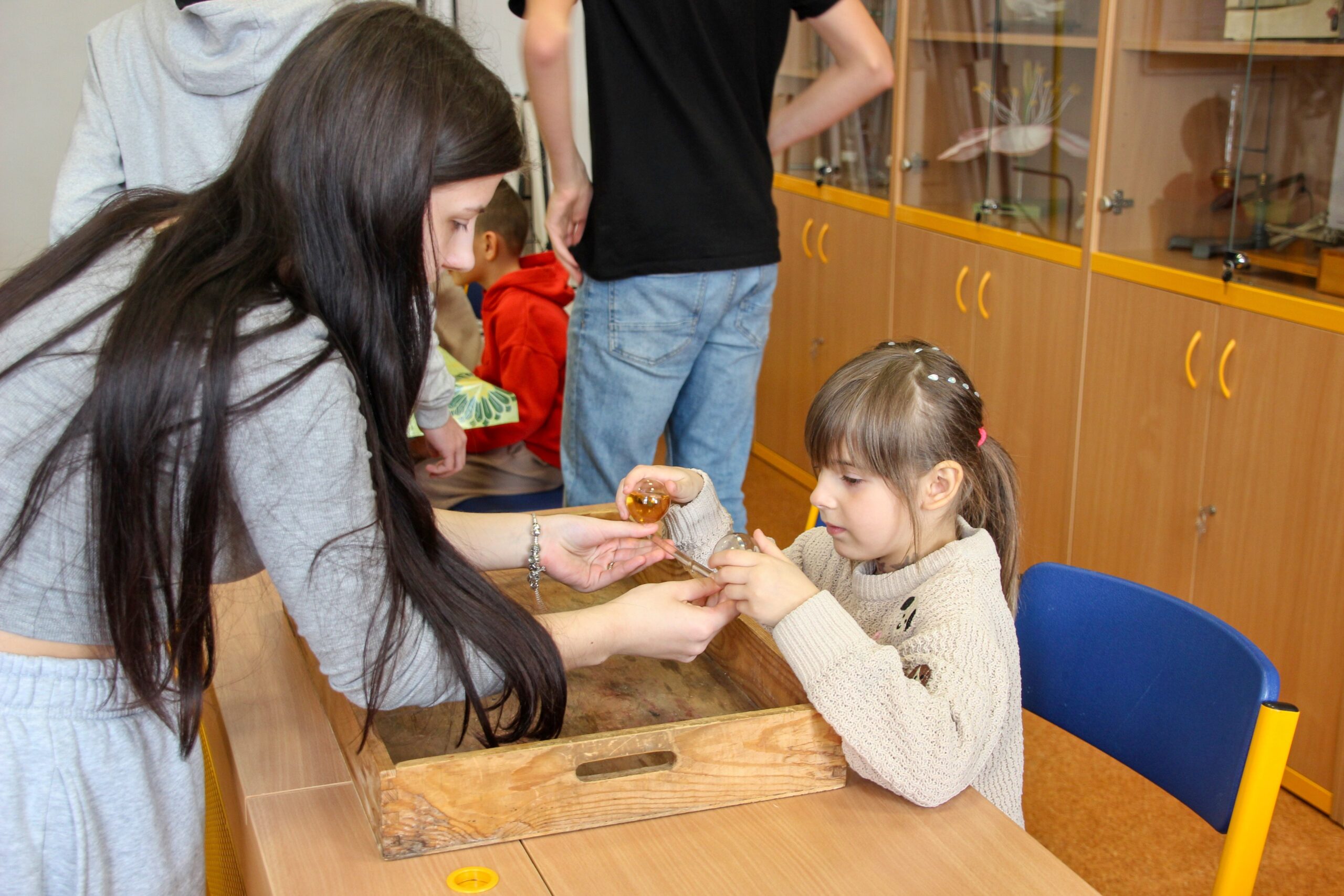 V úterý 14.4. 2026 jsme s žáky 8. třídy přivítali děti z oddělení Berušek Kelečské MŠ. Připravili jsme si pro ně mnoho pokusů, které mohly děti samy provádět. Letos si poprvé každý žáček školky vybral svého velkého kamaráda a ten ho provedl všemi pokusy. Asi to byla dobrá volba, protože každý věděl, jak a co dělat. Pokusy, které si mohli naši malí kamarádi vyzkoušet, musely být voleny tak, aby byly zcela bezpečné, takže jsme pracovali pouze s materiály, které lze najít v kuchyni (soda, ocet, kyselina citronová, mýdlo, červené zelí…). Děti nafukovaly balónky pomocí octu a sody, barvily roztok červeného zelí pomocí mýdla, octu nebo sody, sestavovaly elektrický obvod s žárovkou a zvonkem, měnily barvu kytiček sodou a kyselinou citronovou, pomocí železných pilin zobrazovali indukční čáry magnetu, kreslily barvami v mléce a podobně. Myslím si, že se u nás dětem líbilo, a rádi budeme v této spolupráci s MŠ pokračovat.
