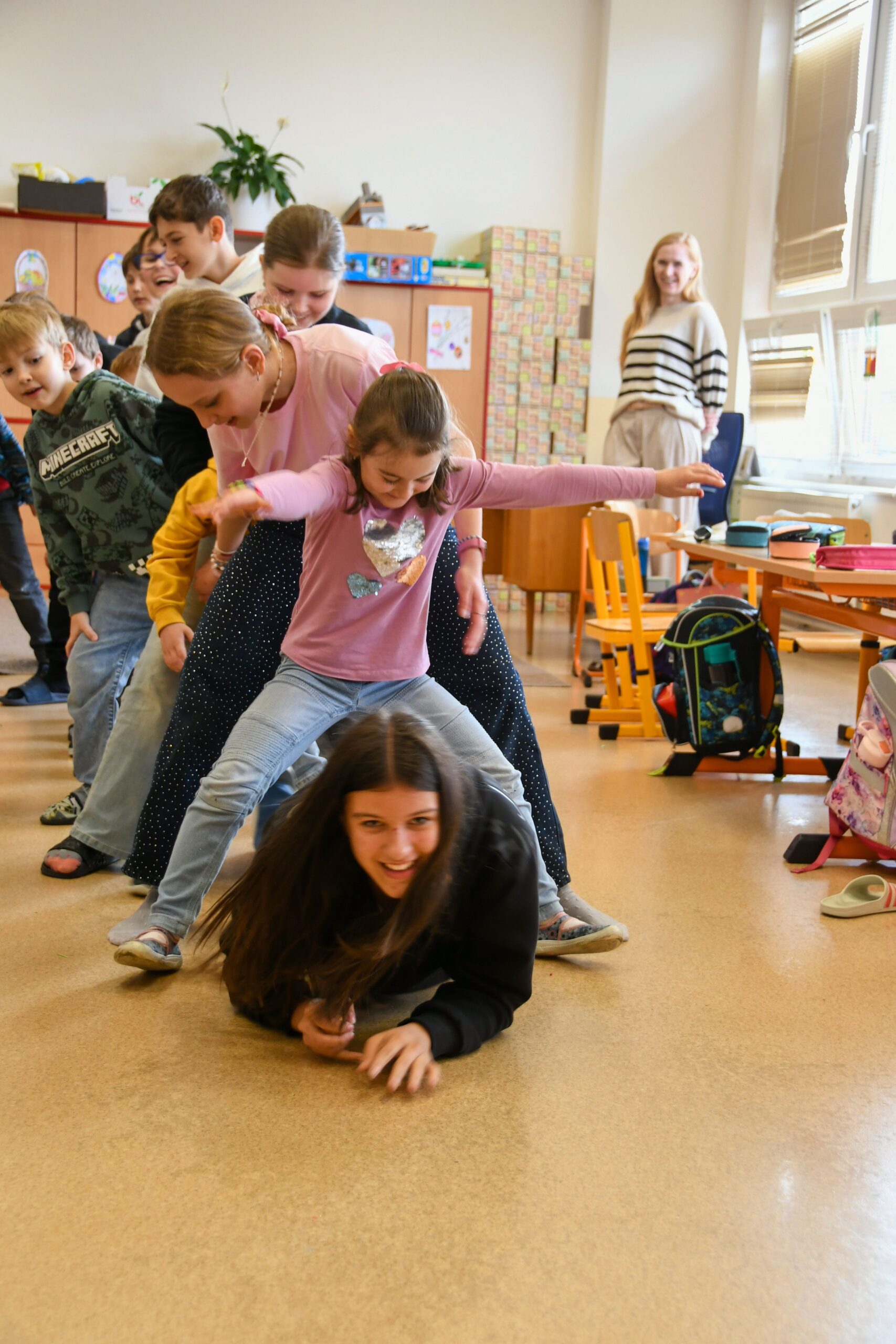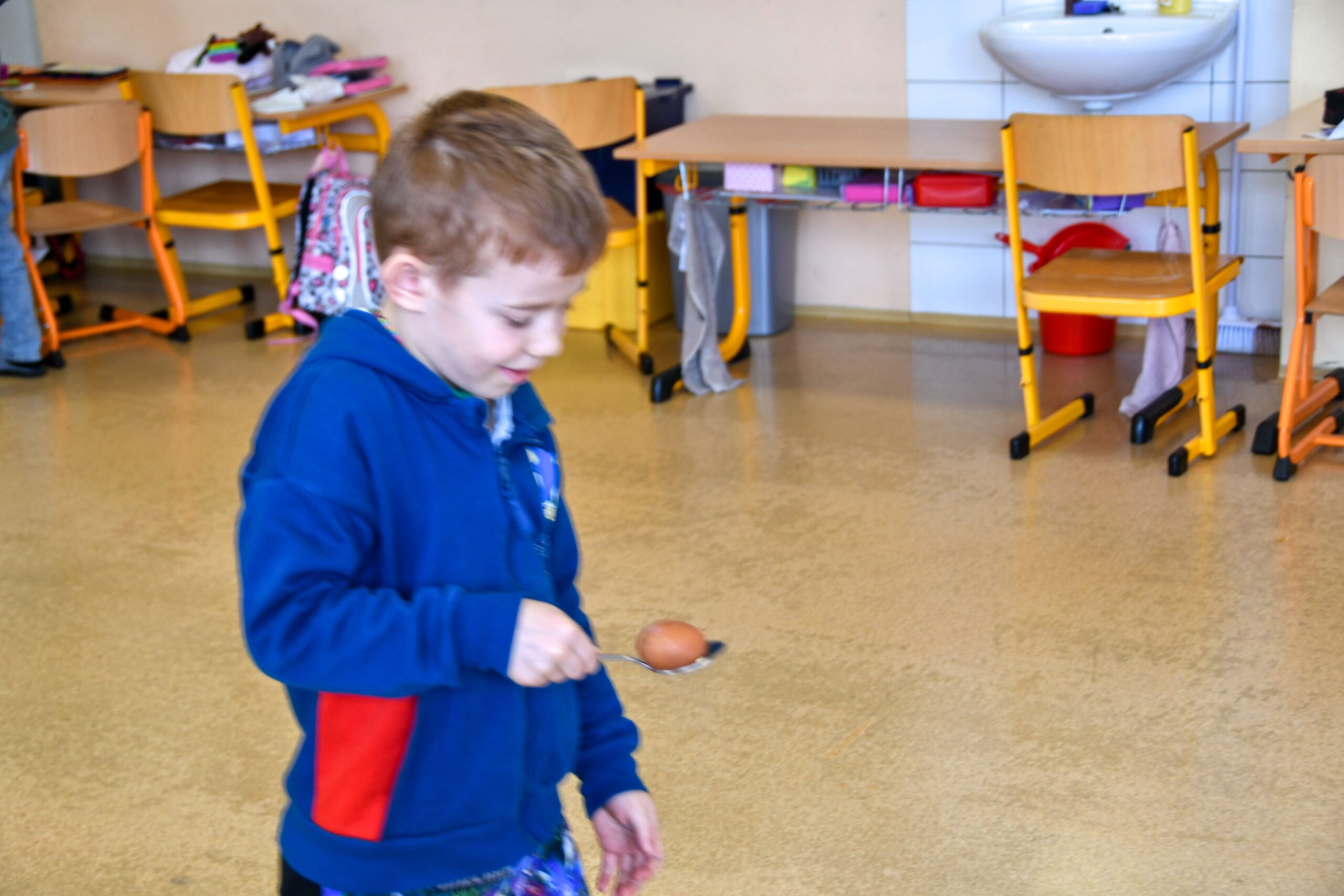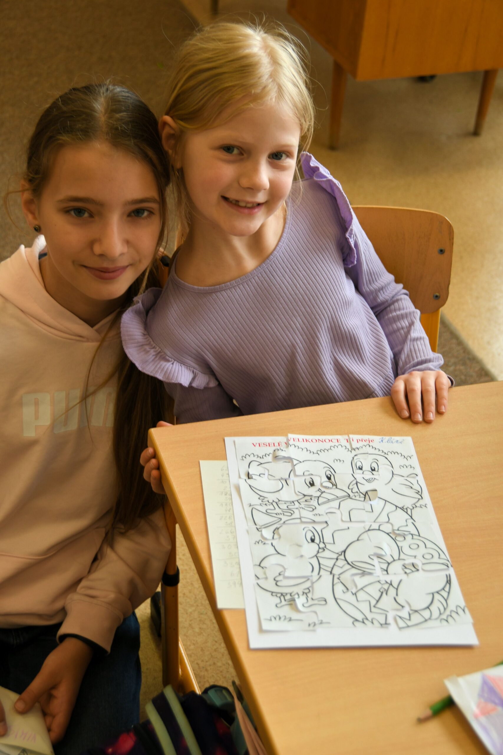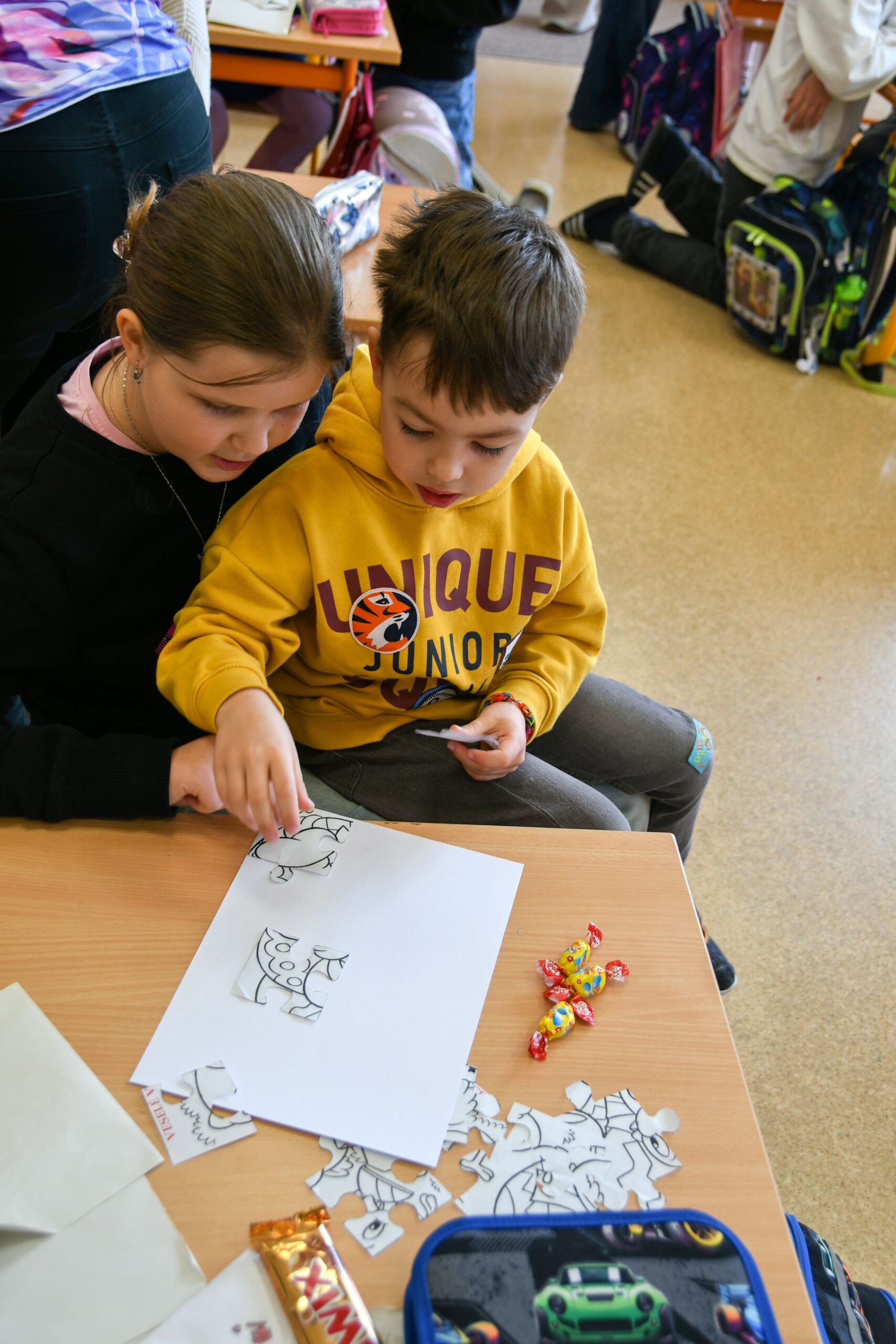 Velkým zážitkem bylo hledání velikonočních vajíček, do kterého se všichni s nadšením zapojili. Prvňáčci hledali a šesťáci počítali získané body. Nechyběly ani zábavné aktivity jako přenášení vajíček na lžičce, posílání vajíčka tunelem nebo skládání puzzlí, které šesťáci sami pro své mladší kamarády připravili.