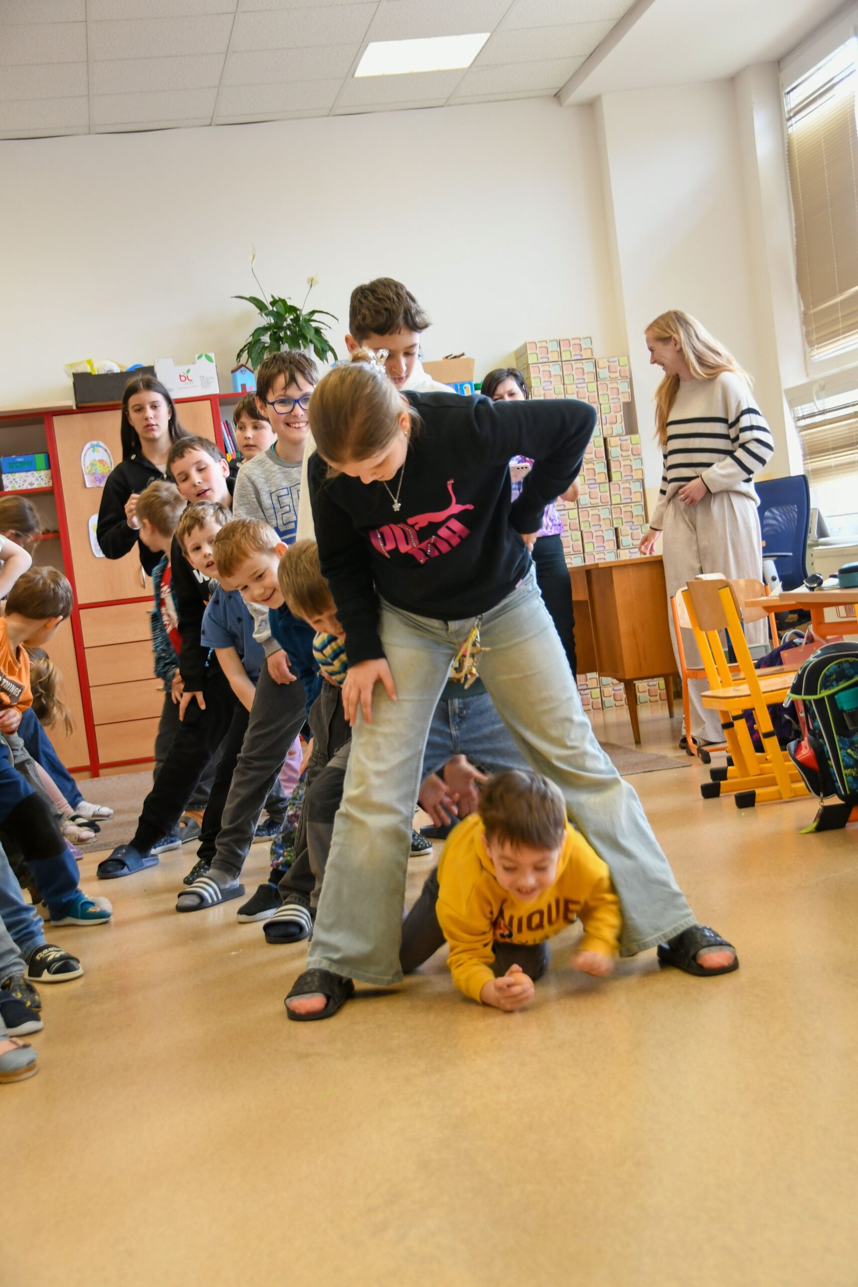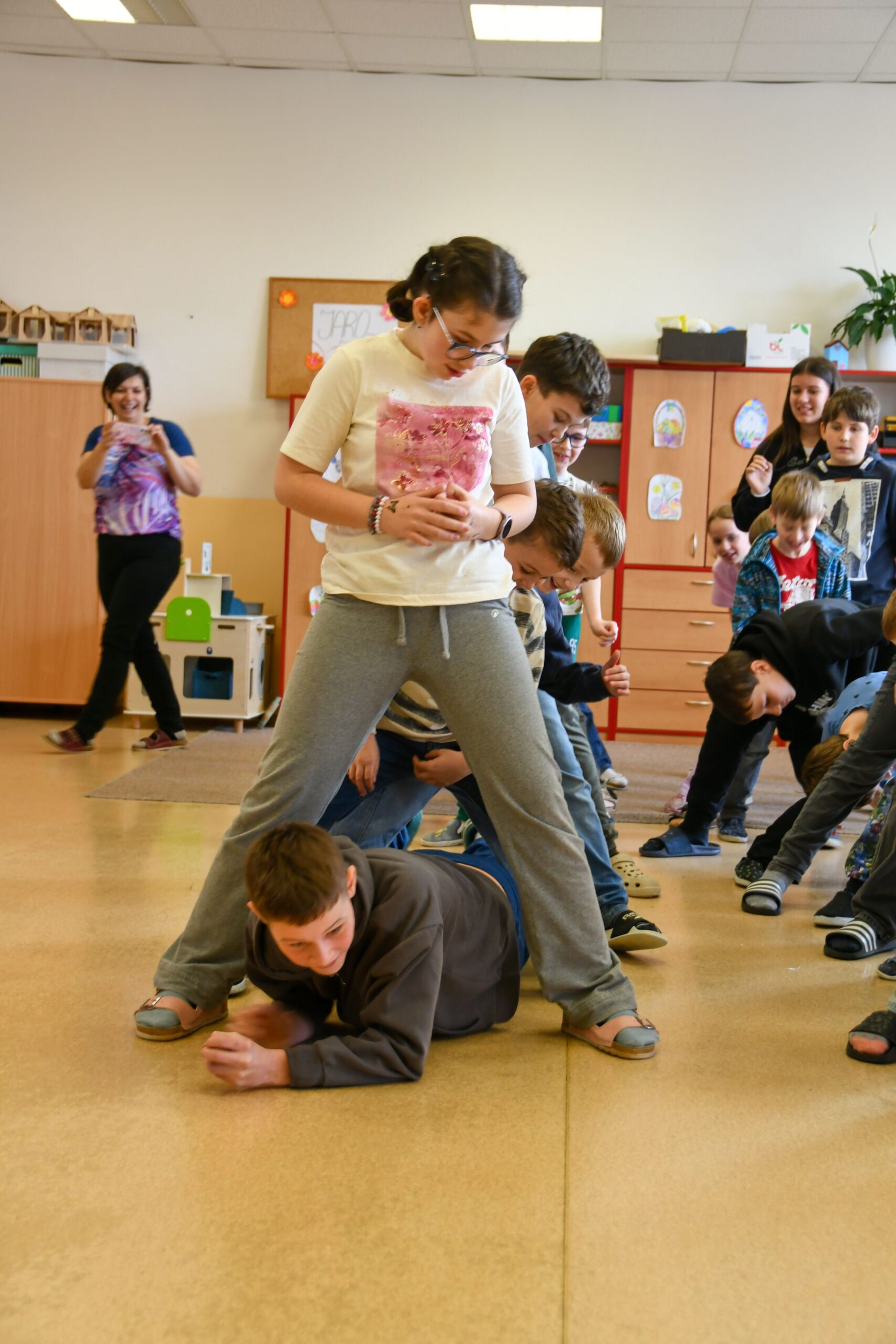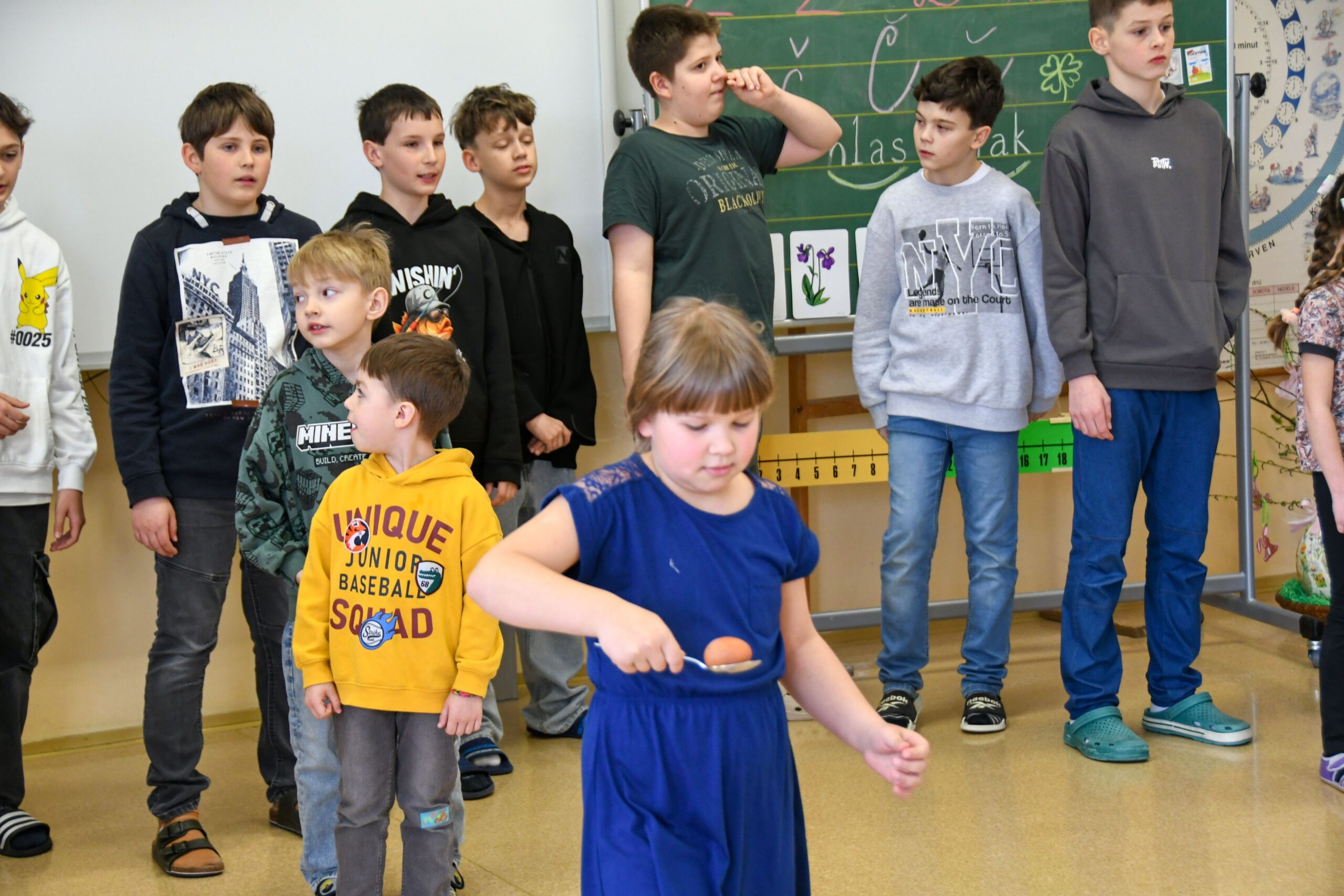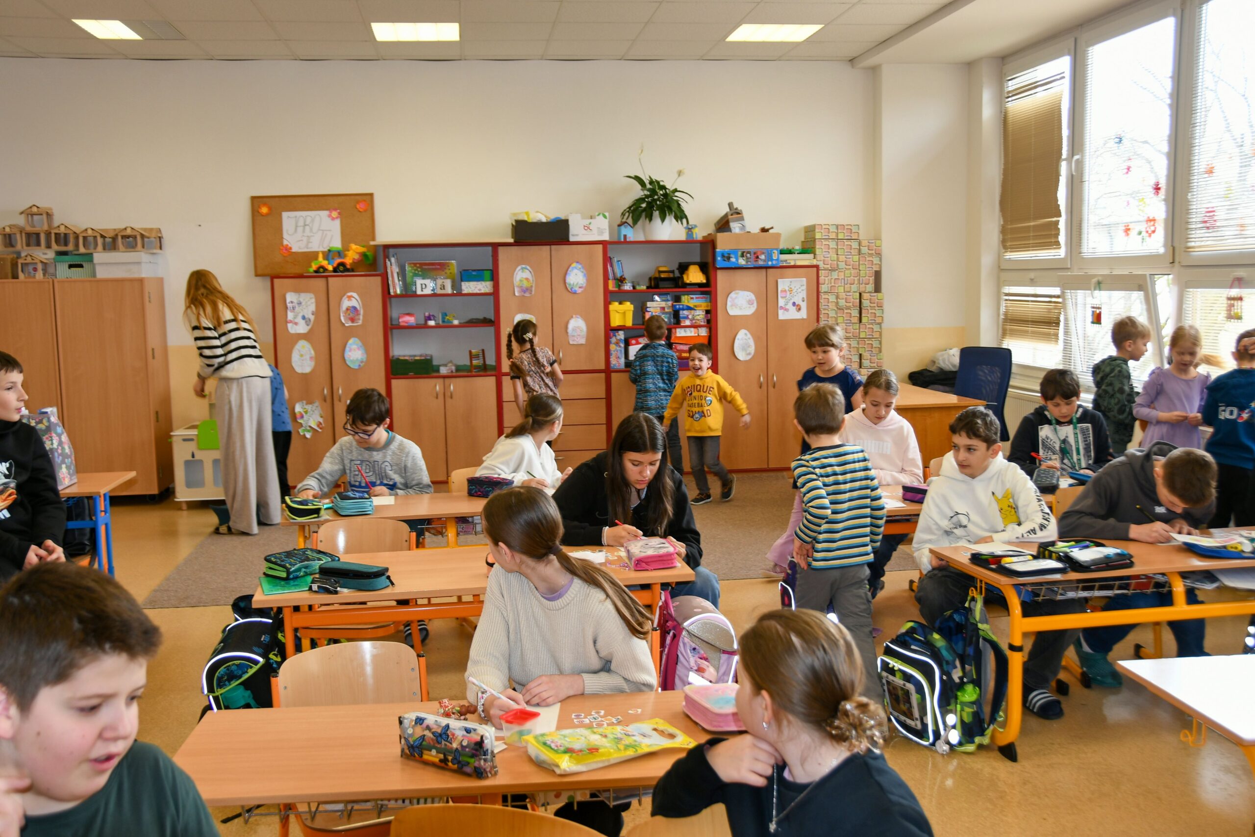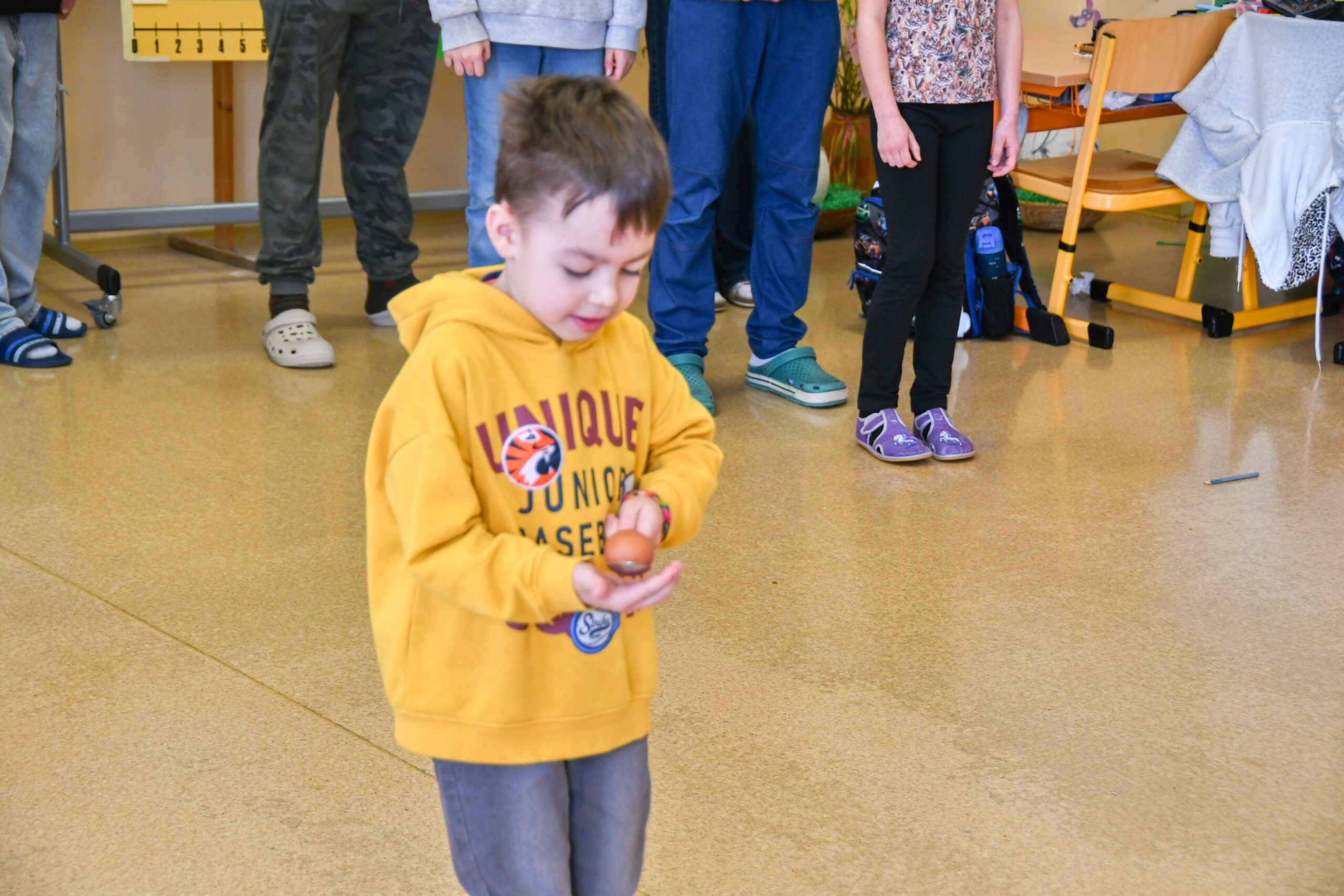 Velkým zážitkem bylo hledání velikonočních vajíček, do kterého se všichni s nadšením zapojili. Prvňáčci hledali a šesťáci počítali získané body. Nechyběly ani zábavné aktivity jako přenášení vajíček na lžičce, posílání vajíčka tunelem nebo skládání puzzlí, které šesťáci sami pro své mladší kamarády připravili.